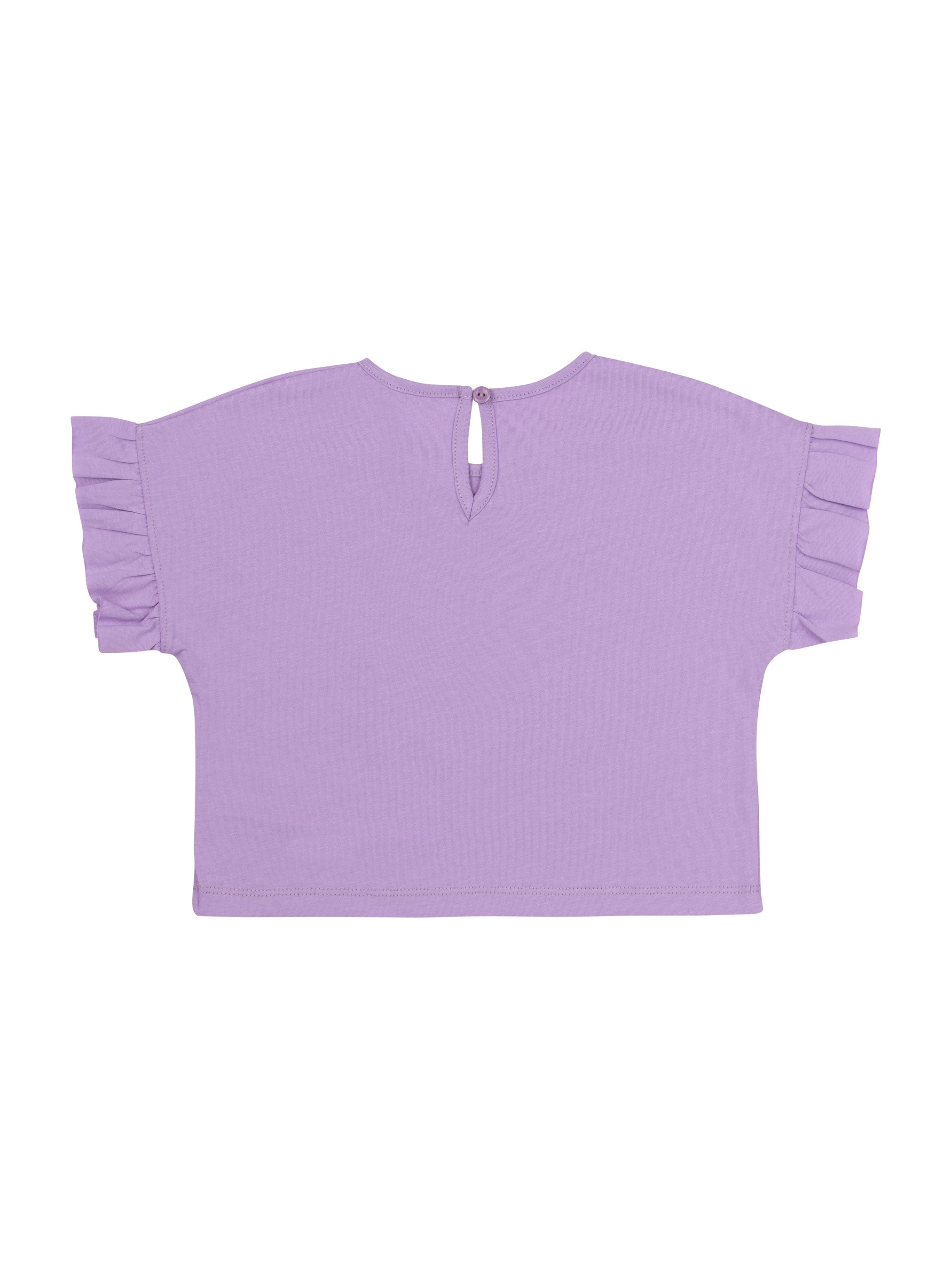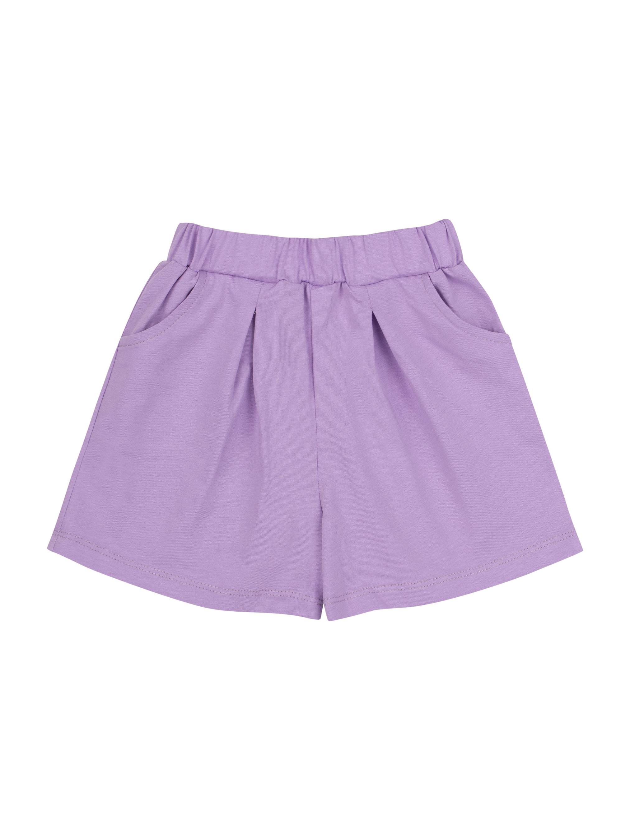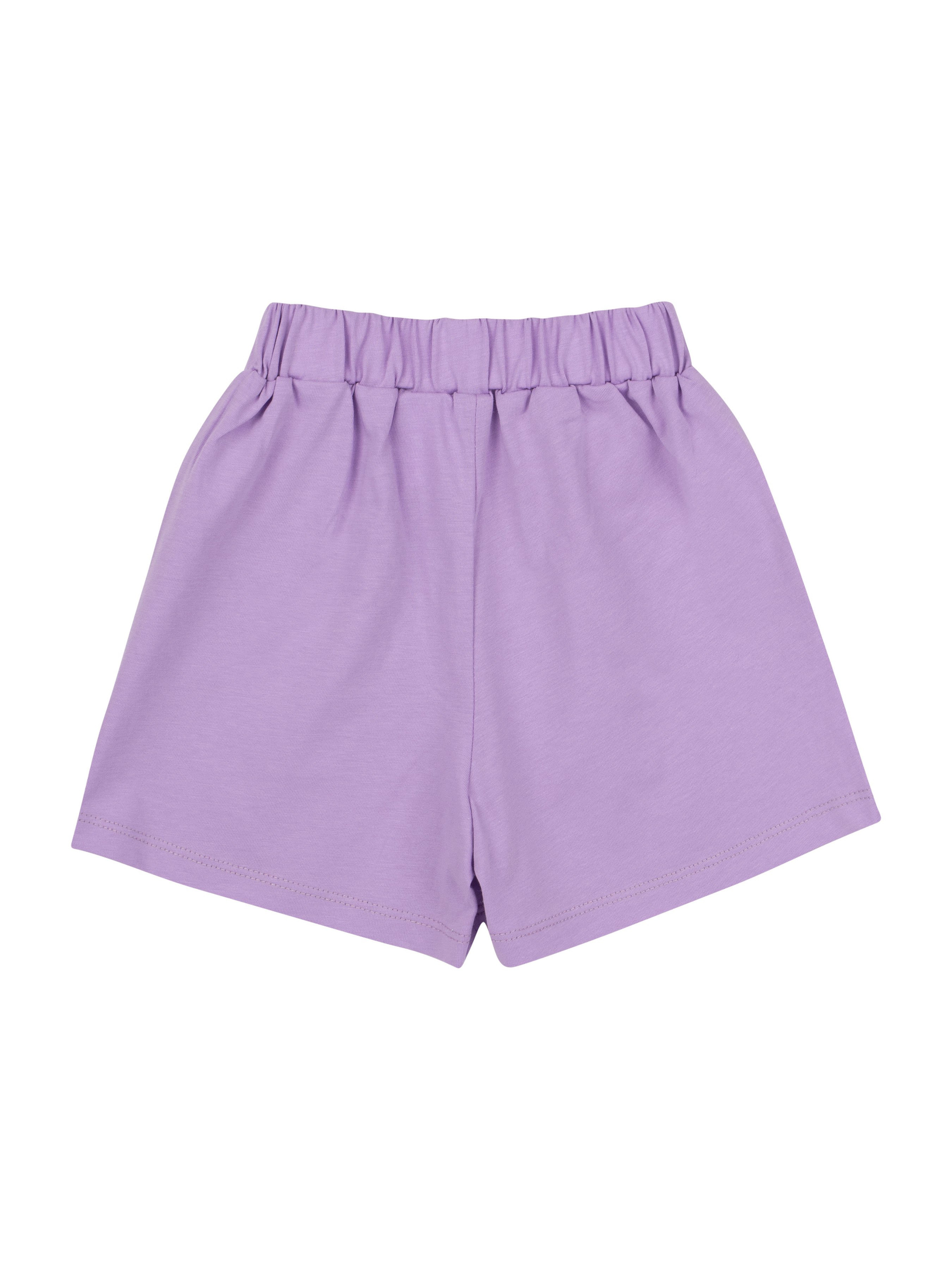 Костюм складається з джемпера та шортів.Джемпер прямого силуету. Перед оздоблений друком. По спинці застібка “крапелька”. Рукава — суцільнокроєні, короткі, по низу з пришивною рюшею. Горловина оброблена обкантовкою. Шорти короткі. На передніх половинках бічні кишені та складки. Пояс пришивний з резинкою.