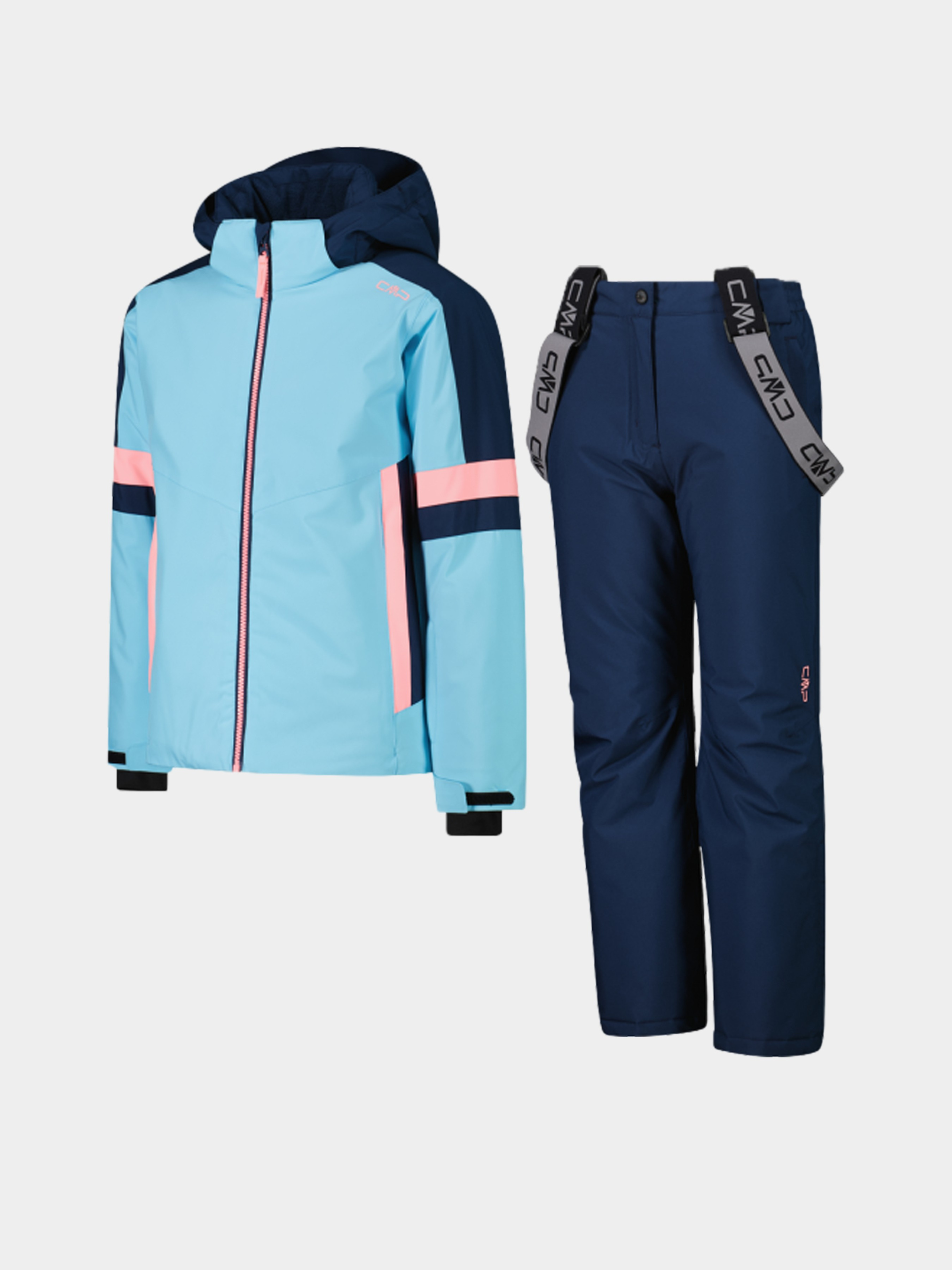 Лижний комплект, що складається з куртки зі знімним капюшоном і штанів із підтяжками. Утеплювач Feel Warm Flat забезпечує тепло навіть у холодних і вологих умовах, а мембрана Clima Protect, водовідштовхувальне зовнішнє покриття та частково проклеєні шви гарантують надійний захист від вітру й вологи, зберігаючи чудову повітропроникність. Це поєднання технологій створене для того, щоб маленьким лижникам було сухо й комфортно протягом усього дня на снігу. Куртка: знімний капюшон, регульовані манжети на липучках, внутрішні еластичні манжети з отворами для великого пальця, фронтальна блискавка з вітрозахисною планкою, регульований низ на шнурку, дві бічні кишені на блискавці та кишеня для скіпасу на рукаві. Штани: регульовані підтяжки, снігові гетри внизу штанин і дві кишені на блискавці.