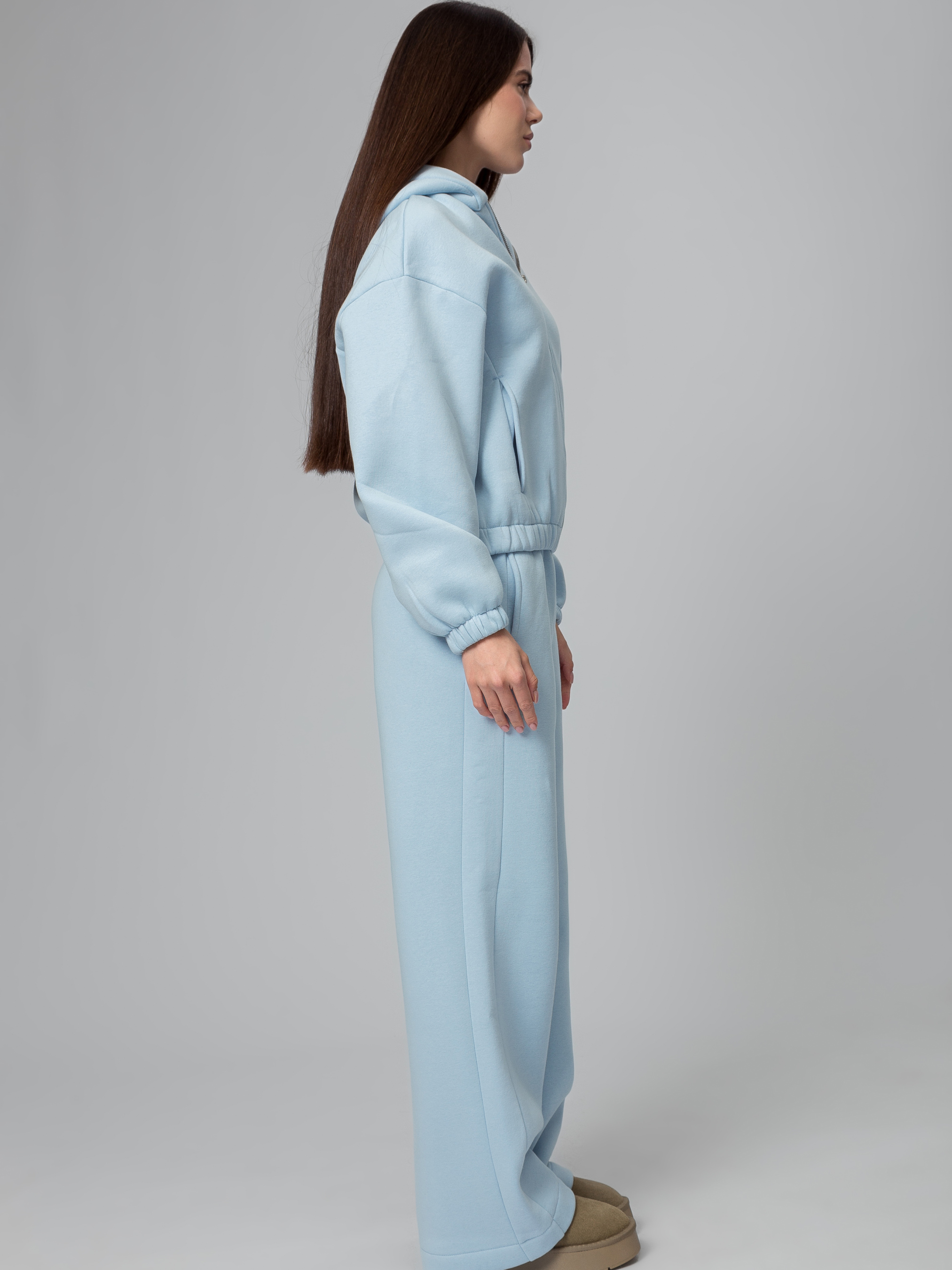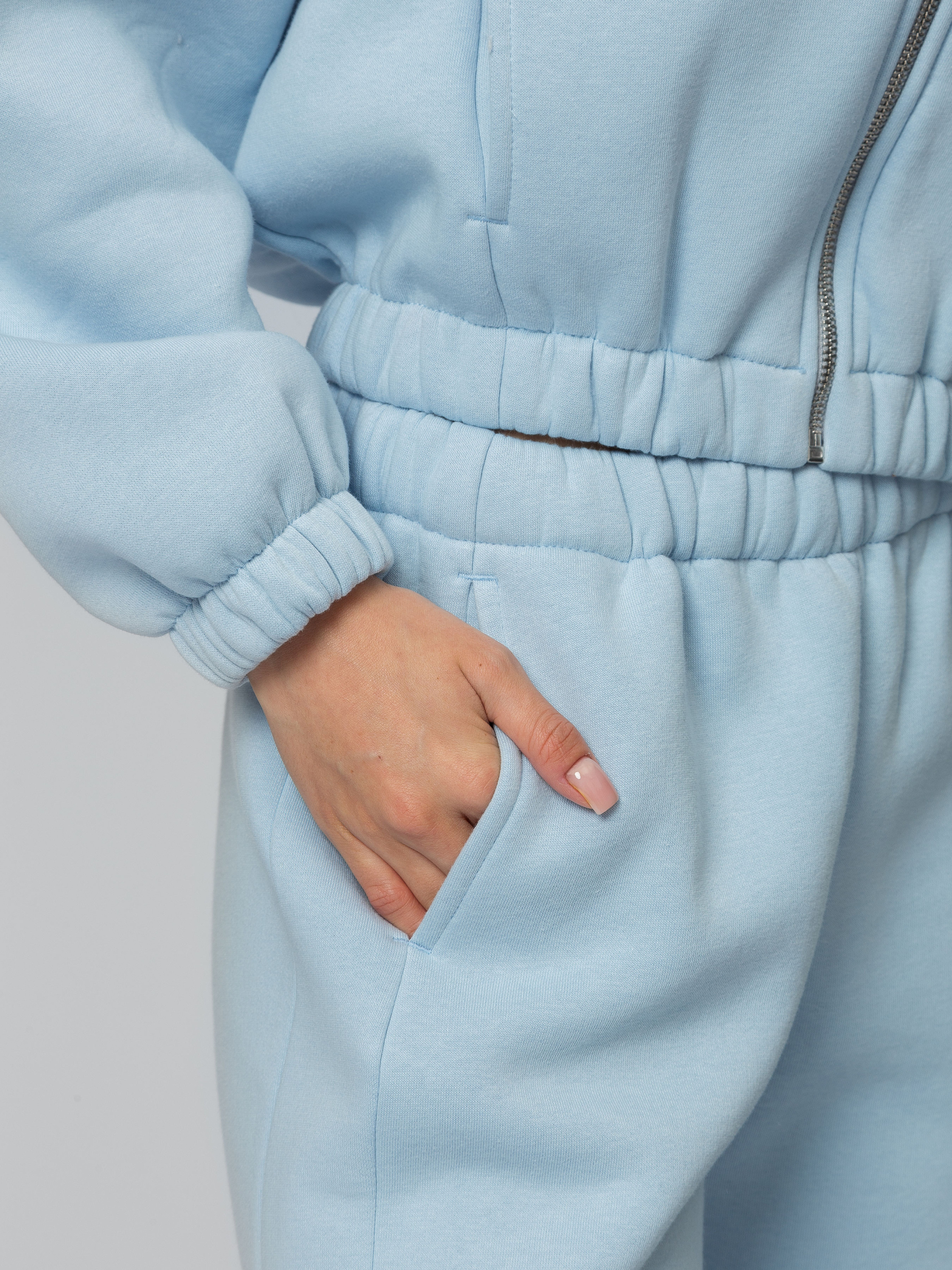 Цей трикотажний костюм на флісі KT-F-202 у блакитному кольорі - це ідеальний вибір для комфортного відпочинку та повсякденного носіння в прохолодну погоду. Виконаний з м'якої трикотажної тканини з флісовою підкладкою, він забезпечує тепло і затишок, не обмежуючи рухів. Вільний крій підкреслює природні форми тіла, створюючи розслаблений і стильний образ. Костюм складається з худі та штанів, які можна комбінувати з іншими речами для створення різноманітних аутфітів.Верхня частина худі має зручний круглий виріз і довгі рукава, які захищають від холоду. Штани оснащені еластичним поясом з гумкою та шнурком для регулювання посадки, що гарантує надійну фіксацію і максимальний комфорт протягом дня. Флісова підкладка всередині робить костюм легким, але теплим, ідеальним для дому чи прогулянок.Переваги даного костюма:- Флісова підкладка забезпечує відмінну теплоізоляцію, зберігаючи тіло в теплі без зайвої ваги.- Універсальний блакитний колір пасує до різних типів зовнішності та легко комбінується з аксесуарами.- Розмір M/L підходить для фігур середнього об'єму, забезпечуючи вільну посадку без зайвого облягання.- Матеріал дихаючий, що запобігає перегріву і накопиченню вологи.Поради по догляду:- Прання в машинці рекомендується на делікатному режимі при температурі до 30°C, використовуючи програми для синтетичних або флісових тканин.- Вибирайте м'які миючі засоби без відбілювачів, щоб зберегти колір і текстуру флісу.- Не використовуйте сушарку, оскільки висока температура може зваляти фліс і деформувати виріб. Дайте костюму висохнути природним чином на горизонтальній поверхні або в розправленому стані.- Прасування не рекомендується; якщо потрібно, використовуйте низьку температуру через тканину або відпарювач для видалення заломів.- Зберігайте в прохолодному, сухому місці подалі від прямих сонячних променів, щоб уникнути вицвітання блакитного кольору.