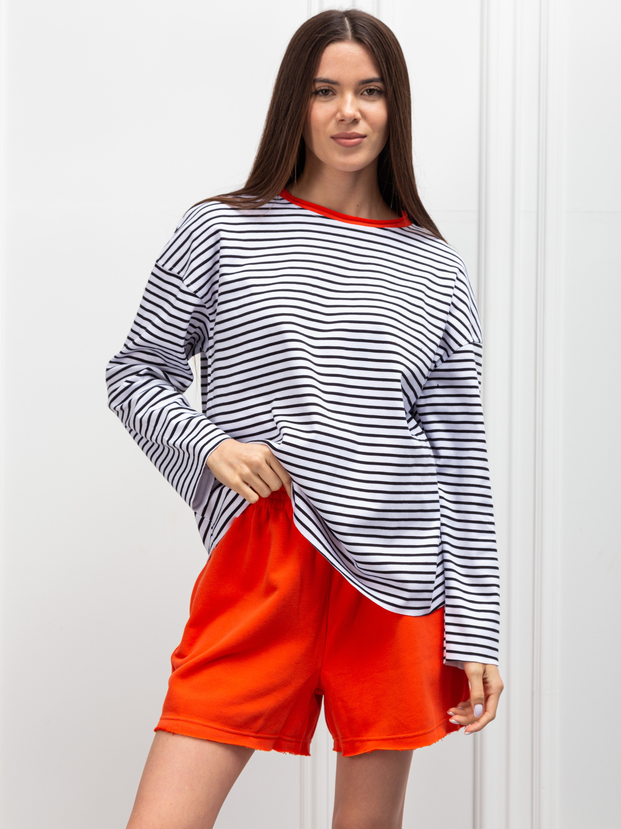 Стильний трикотажний костюм, який ідеально підійде для теплої весни та осені. Ця модель представлена у двох варіантах дизайну: більш стриманий варіант у класичних кольорах та з яскравим акцентом. Костюм виготовлений на власному виробництві Famo з найякісніших матеріалів.Склад трикотажної тканини - 95% бавовна та 5% поліестер. Популярність такої тканини з кожним роком зростає завдяки її властивостям: вона легка, приємна на дотик, не викликає алергії та добре пропускає повітря. Трикотаж зносостійкий та досить простий у догляді, не деформується та довгий час не змінюється після прання. Розміри та особливості моделіКостюм доступний у розмірах XS/S та M/L. Усі параметри розмірів можна переглянути у характеристиці товару. Костюм складається з лонгсліву та шортів. Лонгслів у смужку має стандартний круглий виріз одного кольору з шортами. Зручні однотонні шорти мають дві бокові кишені. Як доглядати• Прати при температурі не більше 40°C• Обирати пральний засіб відповідно до кольору тканини• Не відбілювати• Сушити у розправленому вигляді, уникаючи прямого впливу сонячного проміння та обігрівачів• Якщо з’явилася потреба у прасуванні, то краще попередньо трохи зволожити тканину Замовляйте цей оригінальний трикотажний костюм на нашому сайті зі швидкою доставкою. Також ви можете завітати на шопінг до магазинів Famo.