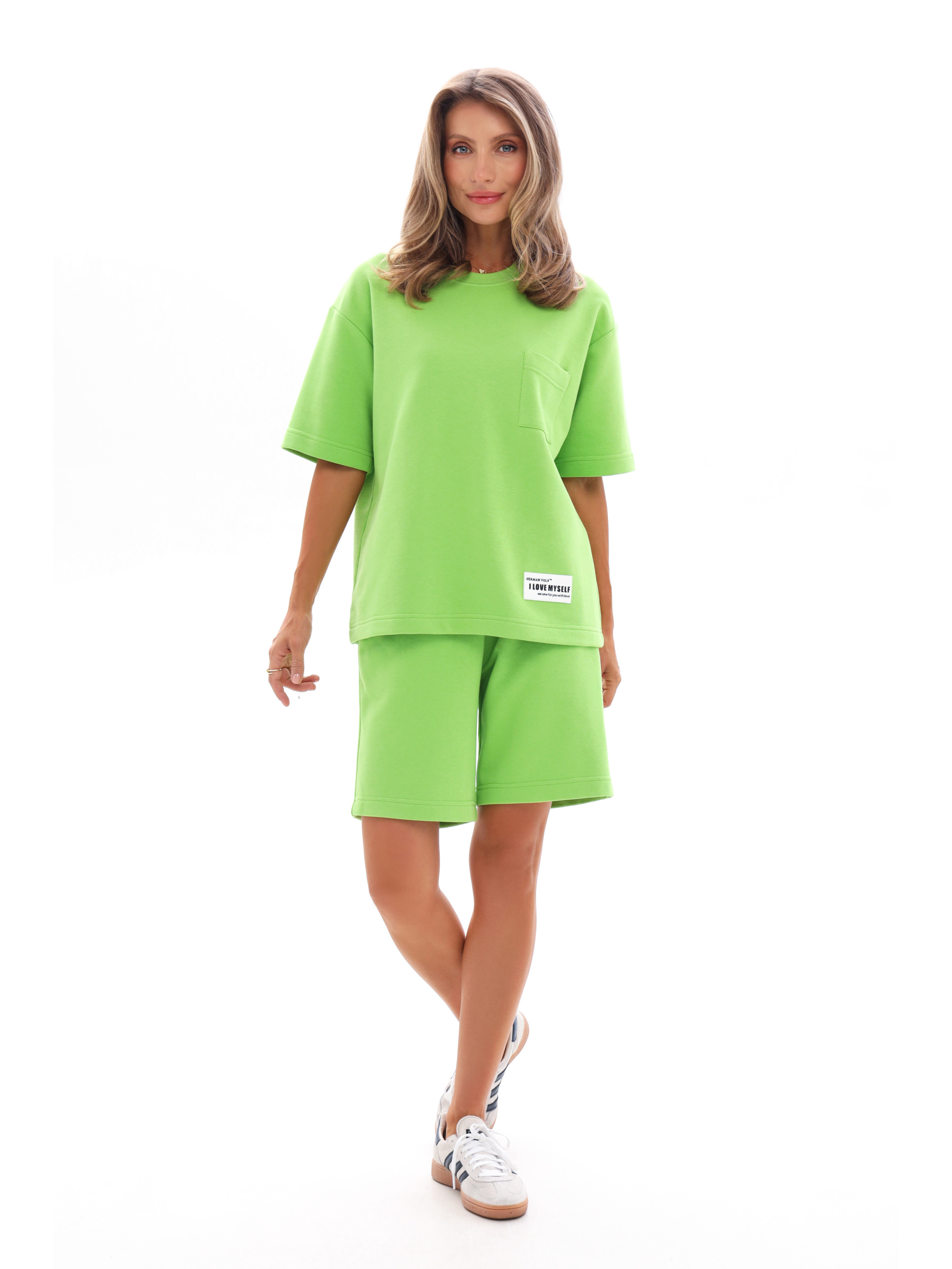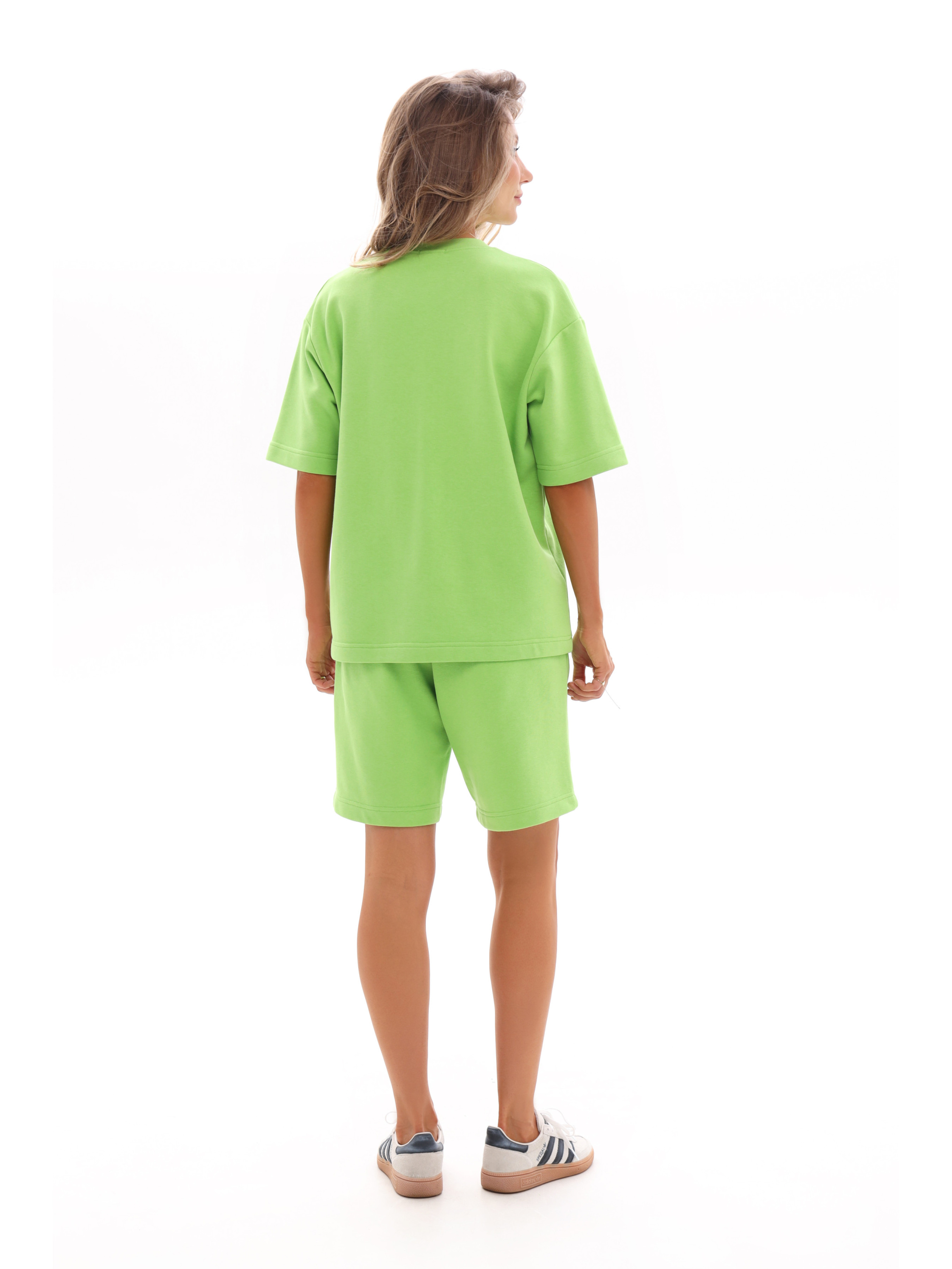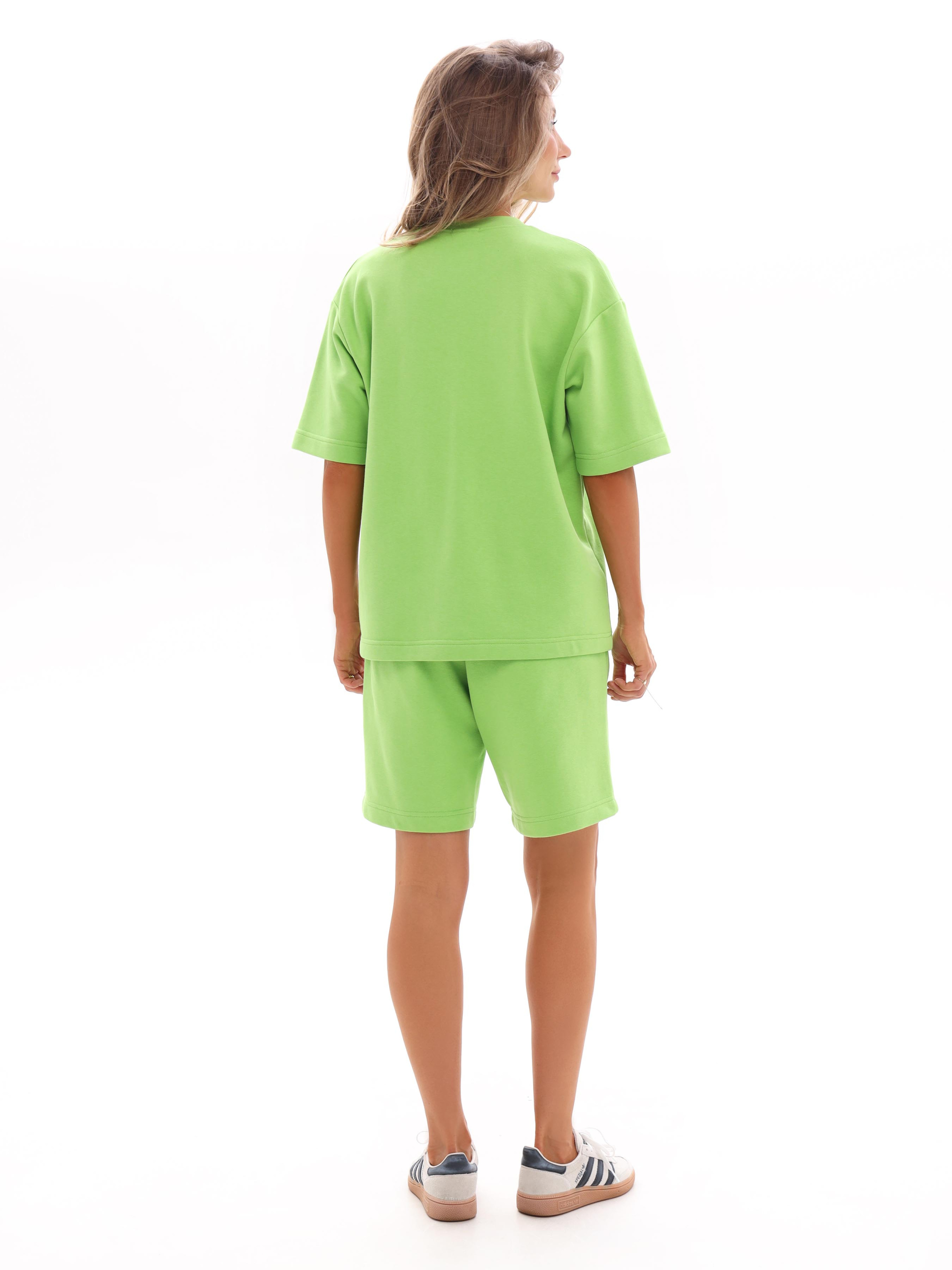 Костюм жіночий, що складається з футболки та шортів вільного крою, створений для максимального комфорту й стилю у повсякденному житті. Модель виконана з м’якої, приємної до тіла тринитки, яка добре тримає форму та дозволяє шкірі дихати. Футболка з комфортною посадкою не обмежує рухів і гармонійно виглядає на будь-якому типі фігури. Шорти доповнені зручними боковими кишенями, що додають практичності та підкреслюють розслаблений стиль. Завдяки сучасному крою та якісному матеріалу, костюм стане універсальним вибором для літніх прогулянок, відпочинку або активного дозвілля