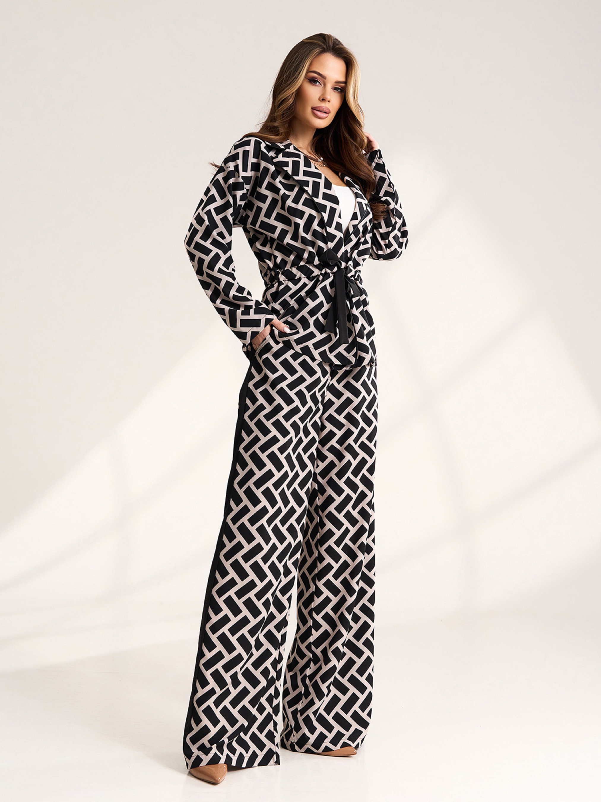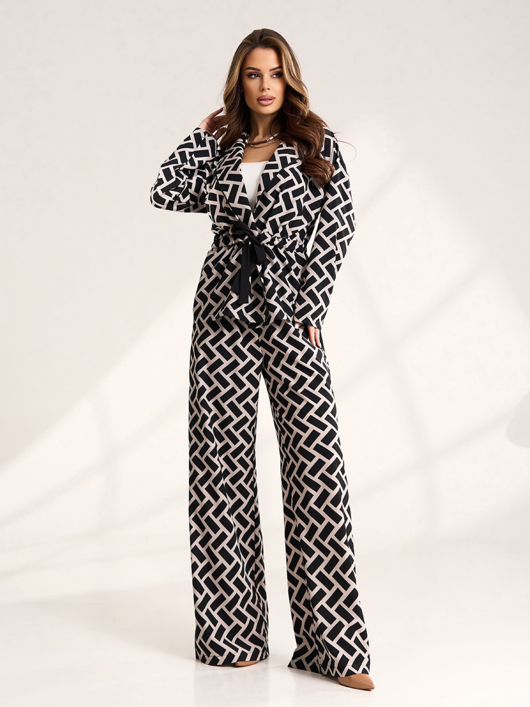 Повсякденний костюм ISSA Plus модель 15570_черный_бежевый
