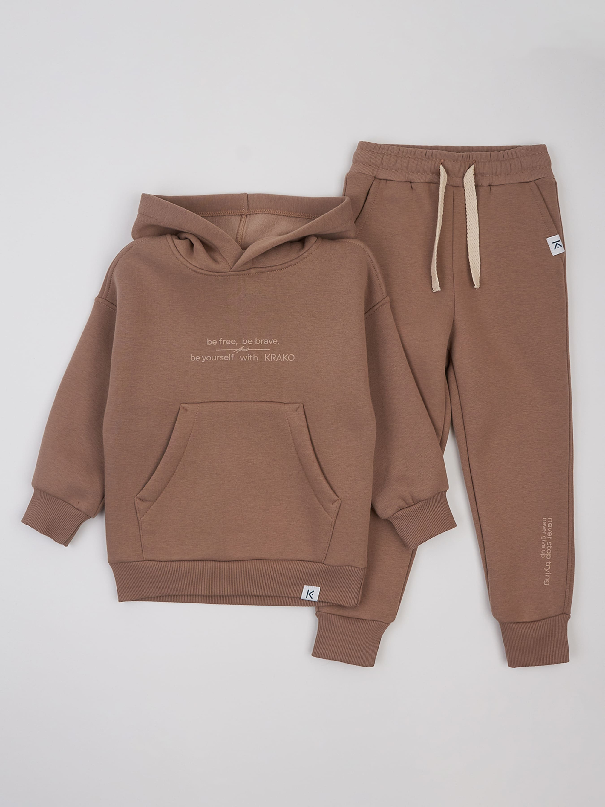 Стильний утеплений дитячий костюм бежевого кольору – ідеальний вибір для прохолодної погоди. Він не тільки забезпечує тепло та комфорт, але й має сучасний дизайн, що робить його улюбленим варіантом для малюків та їхніх батьків. Костюм складається з кофти-худі з капюшоном і кишенею, а також штанів з кишенями, що додає практичності та зручності в повсякденному використанні. Особливості кофти-худі: Капюшон: Забезпечує додатковий захист від вітру та холоду, створюючи комфорт навіть у прохолодні дні. Велика передня кишеня: Ідеальна для зберігання маленьких речей або просто для зігрівання ручок. Зручний крій: Худі не сковує рухів, тому дитина почувається вільно під час активних ігор. Особливості штанів: Кишені: Штани обладнані зручними кишенями для дрібниць або просто для комфорту. Еластичний пояс: Забезпечує надійну фіксацію і комфорт під час носіння, легко адаптується до фігури дитини. Утеплена тканина: Штани добре зберігають тепло, забезпечуючи комфорт під час прогулянок на свіжому повітрі. Переваги костюму: Тепло і комфорт: Завдяки утепленій тканині костюм ідеально підходить для осінньо-зимового сезону, утримуючи тепло і не обмежуючи рухів. Стильний дизайн: Нейтральний бежевий колір легко поєднується з іншими елементами гардеробу, створюючи модний і охайний вигляд. Практичність: Кишені на кофті та штанах роблять костюм функціональним для щоденного використання. Обирайте стильний утеплений дитячий костюм для вашого малюка, щоб він завжди відчував тепло, комфорт та виглядав модно навіть у холодну погоду!
