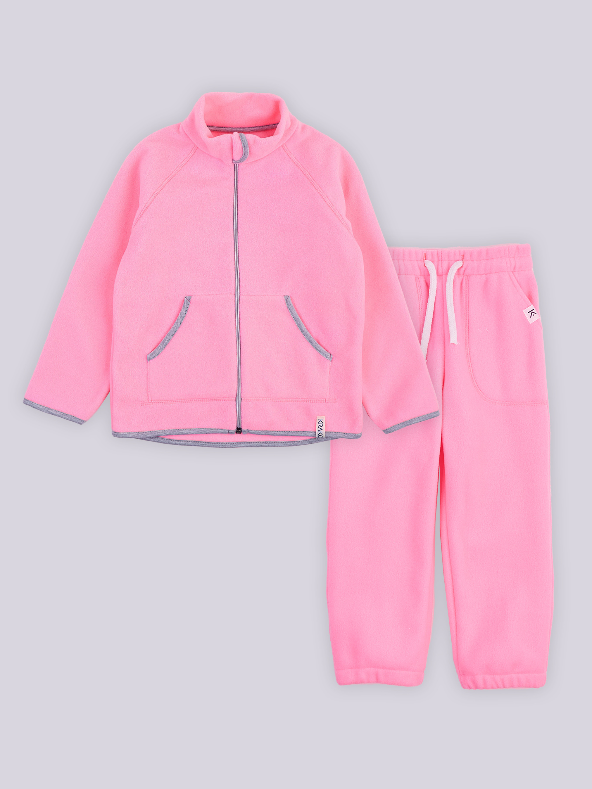Рожеві флісові костюми KRAKO для дівчаток – це не просто одяг, а ідеальне поєднання яскравого стилю, тепла та зручності для холодної пори року. Виготовлені з високоякісного, щільного флісу, вони гарантують вашій дитині захист від холоду та максимальний комфорт протягом усього дня. Додаткова інформація про костюм: - М'який та приємний на дотик фліс – забезпечує максимальний комфорт для чутливої шкіри вашої дитини. - Зручна застібка на блискавці – дозволяє швидко і легко знімати та одягати кофту, що особливо корисно в щоденному використанні. - Високий комір – захищає від холодного вітру та допомагає зберігати тепло. - Функціональні кишені – зручні для зберігання дрібниць або для зігрівання рук під час прогулянок. - Регулюючий шнурок на поясі штанів – дозволяє легко підлаштувати посадку, забезпечуючи комфорт та зручність під час активного руху. Яскравий рожевий флісовий костюм KRAKO – це чудовий вибір як для повсякденного носіння, так і для активного відпочинку. Він ідеально підходить для садочка чи школи, прогулянок на свіжому повітрі або захопливих ігор. Стиль, комфорт та якість для вашої дитини – з флісовими костюмами KRAKO! Вид тканини: фліс; Склад: 100% поліестер; Набір із двох виробів: кофта та штани; Колір основної тканини: рожевий.