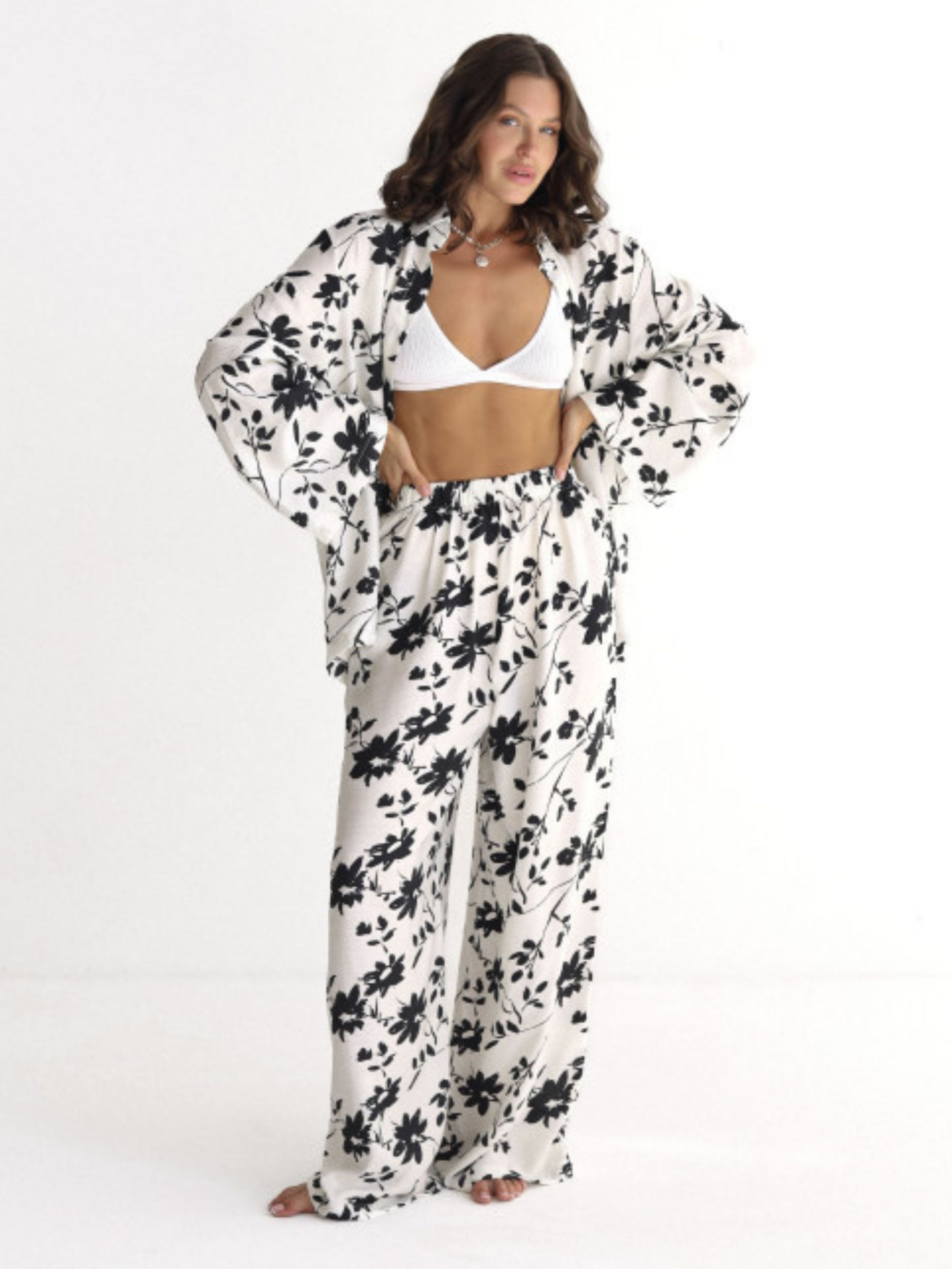 Цей костюм – для твоїх легких, розслаблених днів, коли хочеться м'якості, простору та відчуття "я в гармонії". Boho Bloom – двійка з сорочки oversize та штанів вільного крою з еластичним поясом. Тканина - жатий льон, той самий, що гарно тримає форму, але зовсім не потребує праски (так, ти правильно прочитала). Флористичний принт додає настрій «ніби я в Провансі», а крій – абсолютну свободу руху. Візьми з собою на подорож, на уїк-енд, або просто носи вдома з кайфом.