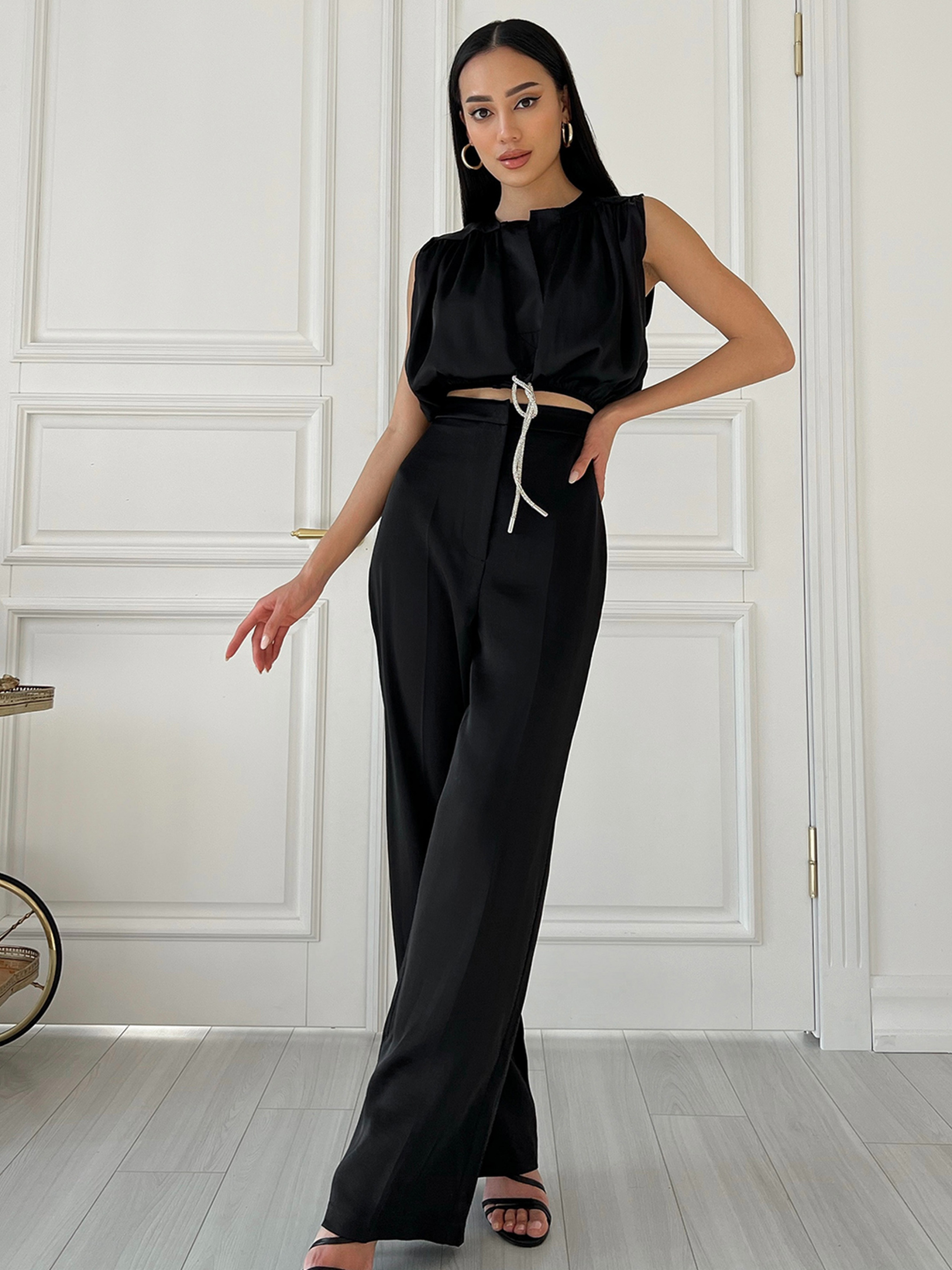 Наш костюм з шовку у чорному кольорі поєднує класичний дизайн з сучасними деталями.Він виглядає елегантно та стильно, підходить як для офісу, так і для особливих подій. Склад: Котон 100%