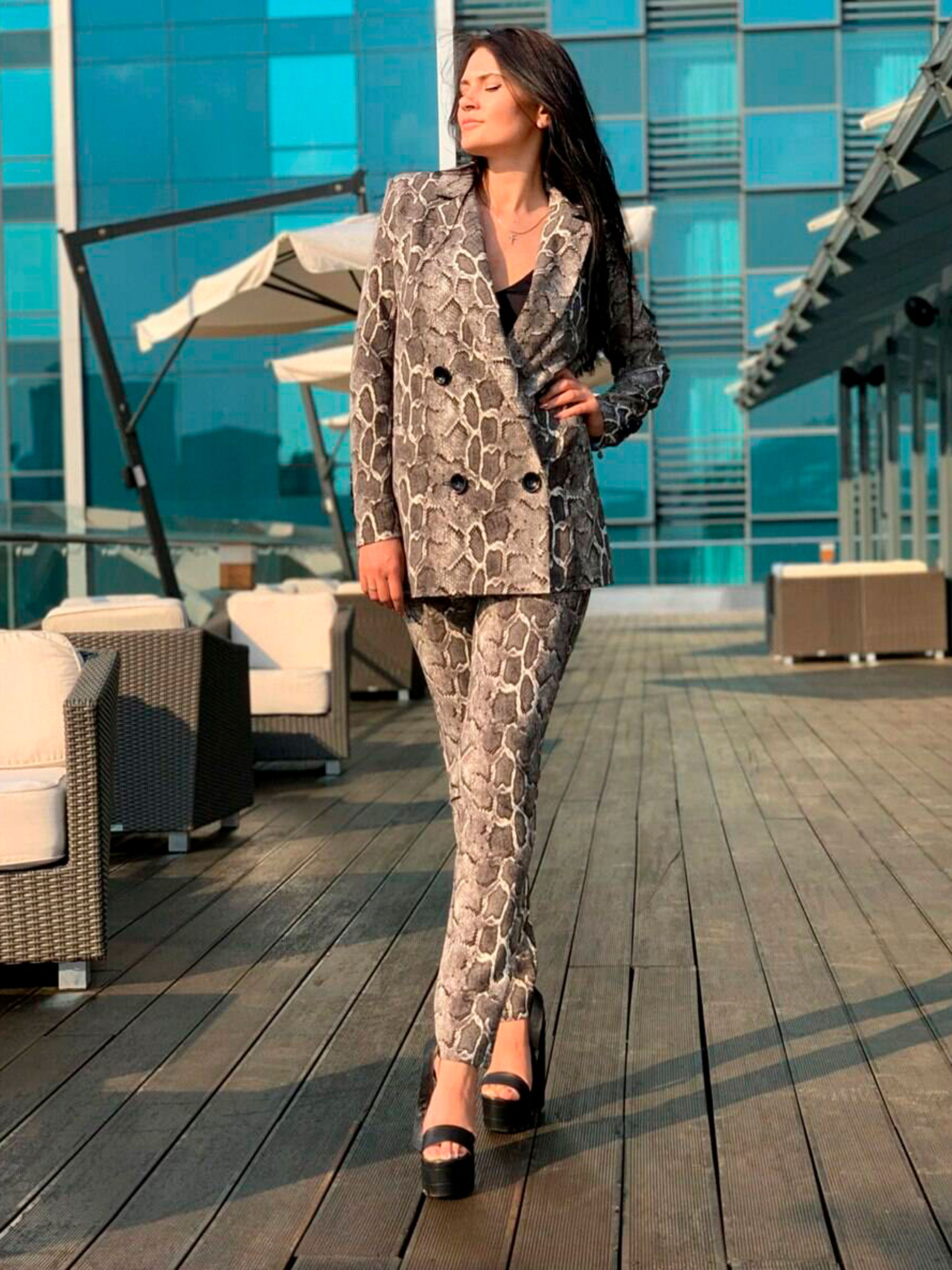 Характеристики: Тип: костюм-двійка (піджак + брюки) Силует: прямий Довжина штанів: 7/8 Тип штанів: «банани» Наявність кишень: так Застібка: гудзики на піджаку Розмір: S (42–44), M (44–46) — повномірні Кольори: беж, білий, лаванда, лайм, рептилія беж, рептилія сірий, сірий, фуксія, хакі Догляд: машинне прання при температурі до 30 °C у режимі “делікатне” прасування при середній температурі (до 150 °C) не відбілювати не віджимати на високих обертах сушити в розправленому вигляді Опис: Жіночий класичний костюм Gold — універсальне рішення для сучасної жінки. Стильна двійка ідеально поєднує елегантність і комфорт, дозволяючи створювати як ділові, так і повсякденні образи. Штани довжини 7/8 мають вільний крій типу «банани» та зручні кишені, що забезпечують свободу рухів і практичність. Піджак прямого силуету з лаконічними лацканами і гудзиками виглядає бездоганно як у класичному ансамблі з каблуками, так і в поєднанні зі спортивним взуттям. Модель представлена у трендовій палітрі кольорів — від стриманого бежевого до яскравої фуксії. Це дозволяє легко підібрати варіант під власний настрій і стиль.