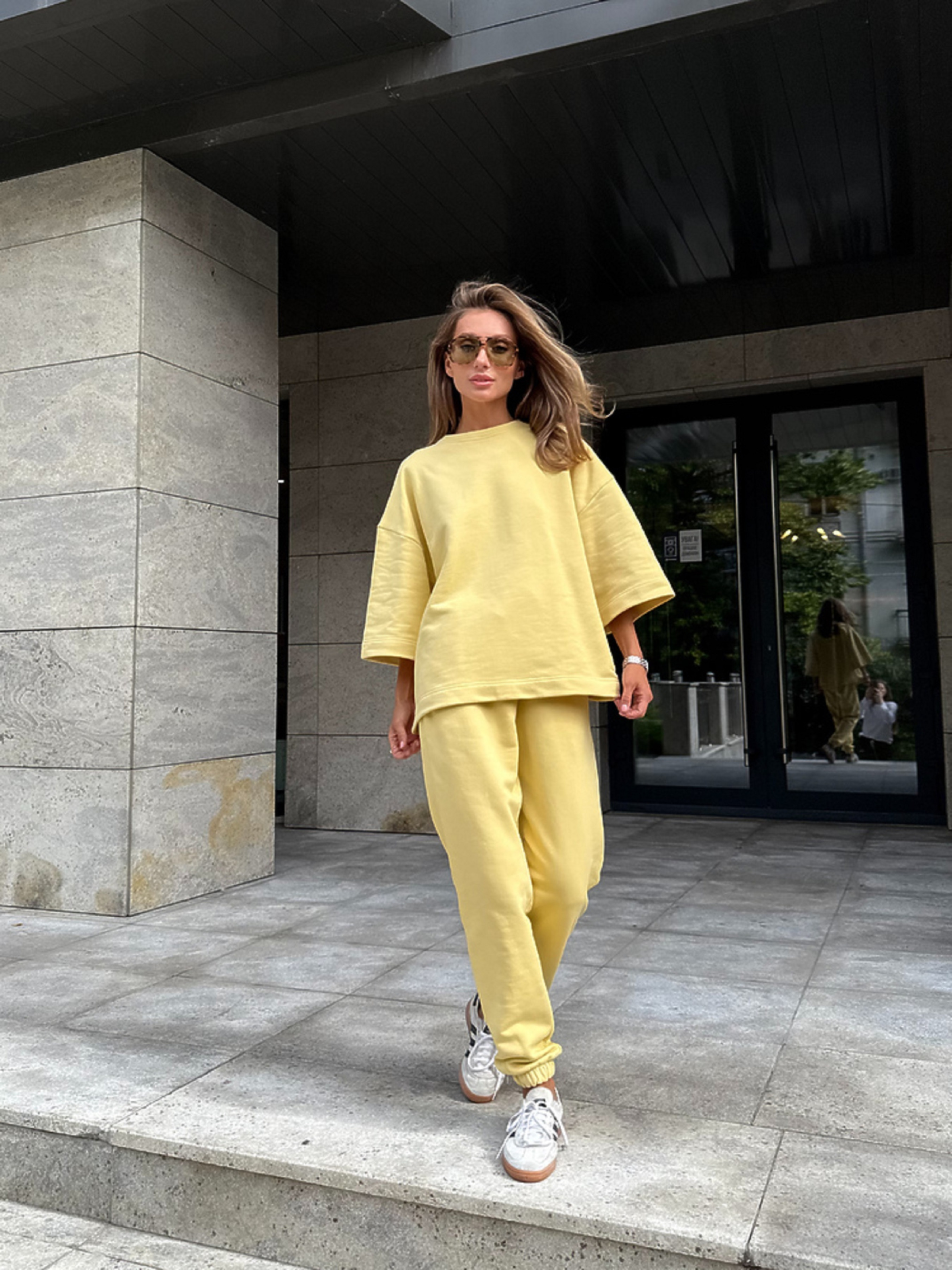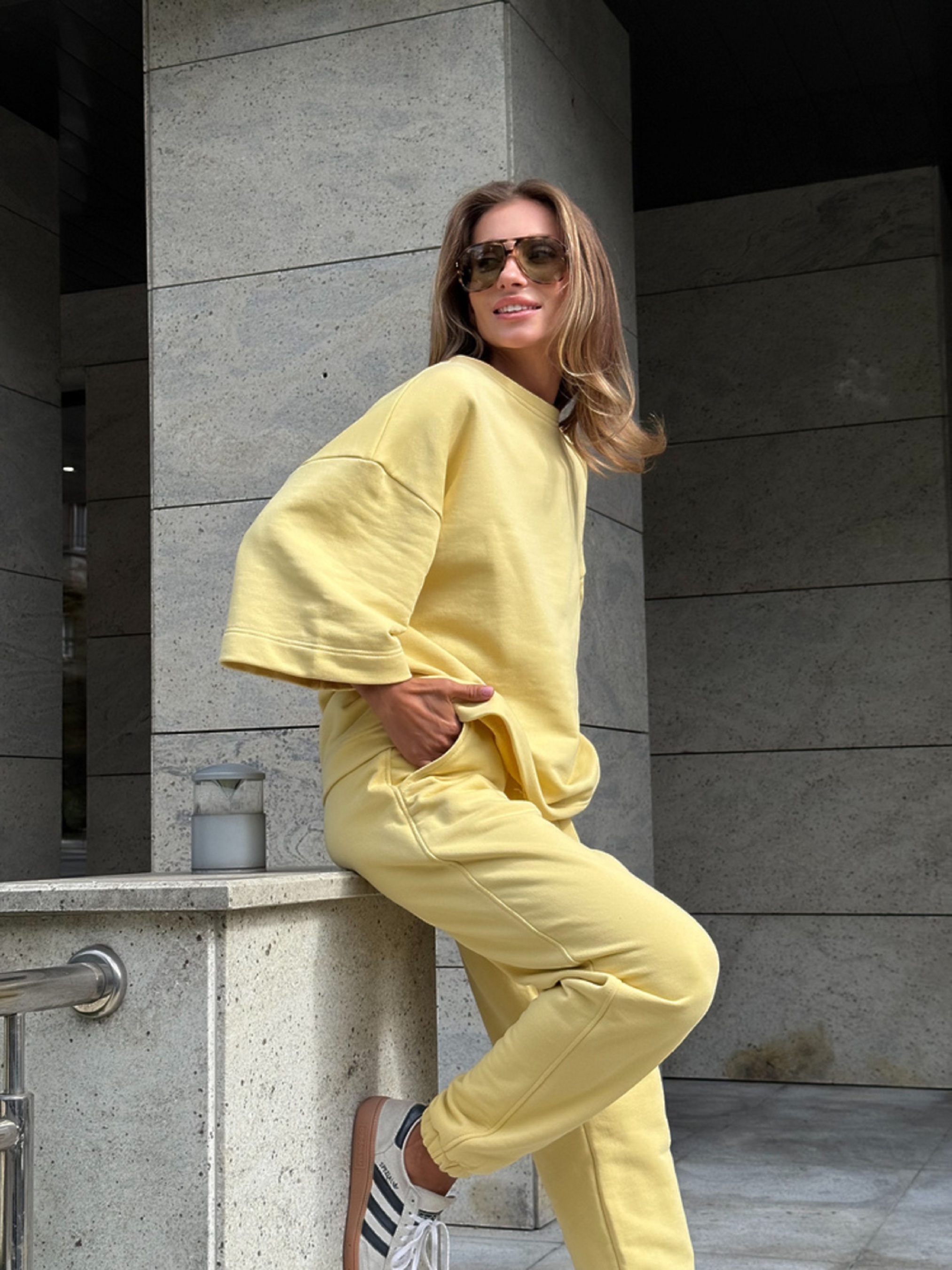 Характеристики: Тип виробу: костюм (кофта + штани) Сезон: осінь / зима /холодна весна Розмір: S–L (універсальний) Тканина: трьохнитка Кольори: молочний, чорний, меланж, масло, бургунді, коричневий, таш, шоколад Догляд: машинне або ручне прання при температурі до 30 °C прасування при середній температурі (до 150 °C) не відбілювати не використовувати хімчистку сушити в розкладеному вигляді, уникати прямого сонячного проміння Опис: Стильний і комфортний жіночий костюм JOKER створений для повсякденного носіння, прогулянок або домашнього відпочинку. Завдяки м’якому та теплому трикотажу костюм чудово зберігає тепло, забезпечуючи комфорт навіть у прохолодну погоду. Кофта має вільний силует із м’якими манжетами по рукавах та низу. Кругла горловина не обмежує рухів і виглядає акуратно. Штани на еластичній резинці із зав’язками для регулювання об’єму талії — практичні, зручні та мають кишені з обох боків. Модель універсальна — її можна носити як комплект або поєднувати окремо з іншими речами гардеробу. Костюм виглядає стильно й водночас дарує повну свободу рухів.