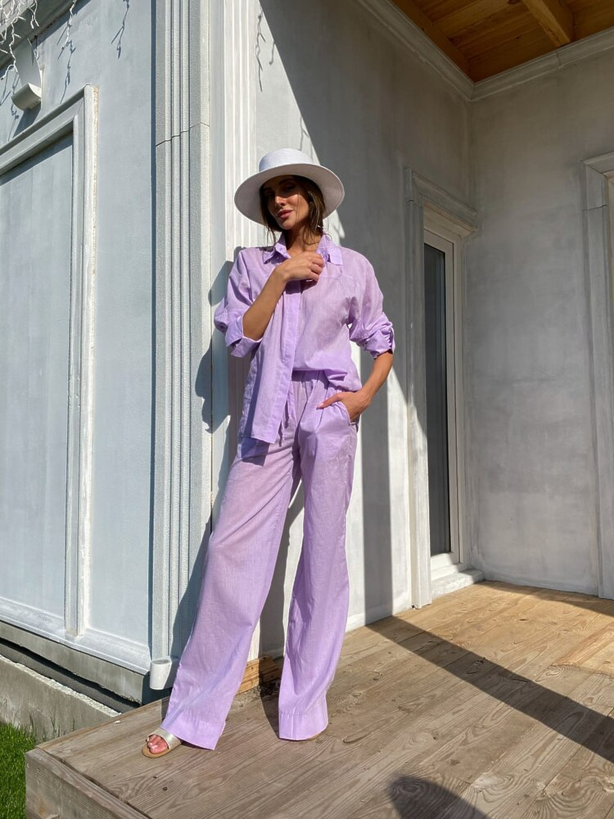 CRUISE — універсальний бавовняний літній костюм, у якому комфорт поєднується зі стильним мінімалізмом. Три елементи гардероба (сорочка, штани та шорти) дозволяють створити одразу кілька образів для спекотних літніх днів, від прогулянкового до більш стриманого міського стилю. Детальний опис Сорочка: легка, приємна до тіла, вільного силуету. Застібка на гудзиках, класичний комір. Штани: прямі, комфортні, з кишенями. Легко комбінуються з будь-яким взуттям та верхом. Шорти: базові, літні, зручно сидять та чудово доповнюють комплект. Тканина: натуральна 100% бавовна, що «дихає» та забезпечує комфорт у спеку. Характеристики Тип виробу: жіночий літній костюм-трійка Склад тканини: 100% бавовна Елементи комплекту: сорочка + штани + шорти Штани: з кишенями Розмір: універсальний 42–46 Кольори: блакитний, бузок Сезон: літо Стиль: повсякденний, міський, релакс, casual Догляд Прати при температурі до 30°C Не використовувати відбілювач Прасувати бавовну при середній температурі Сушити на відкритому повітрі