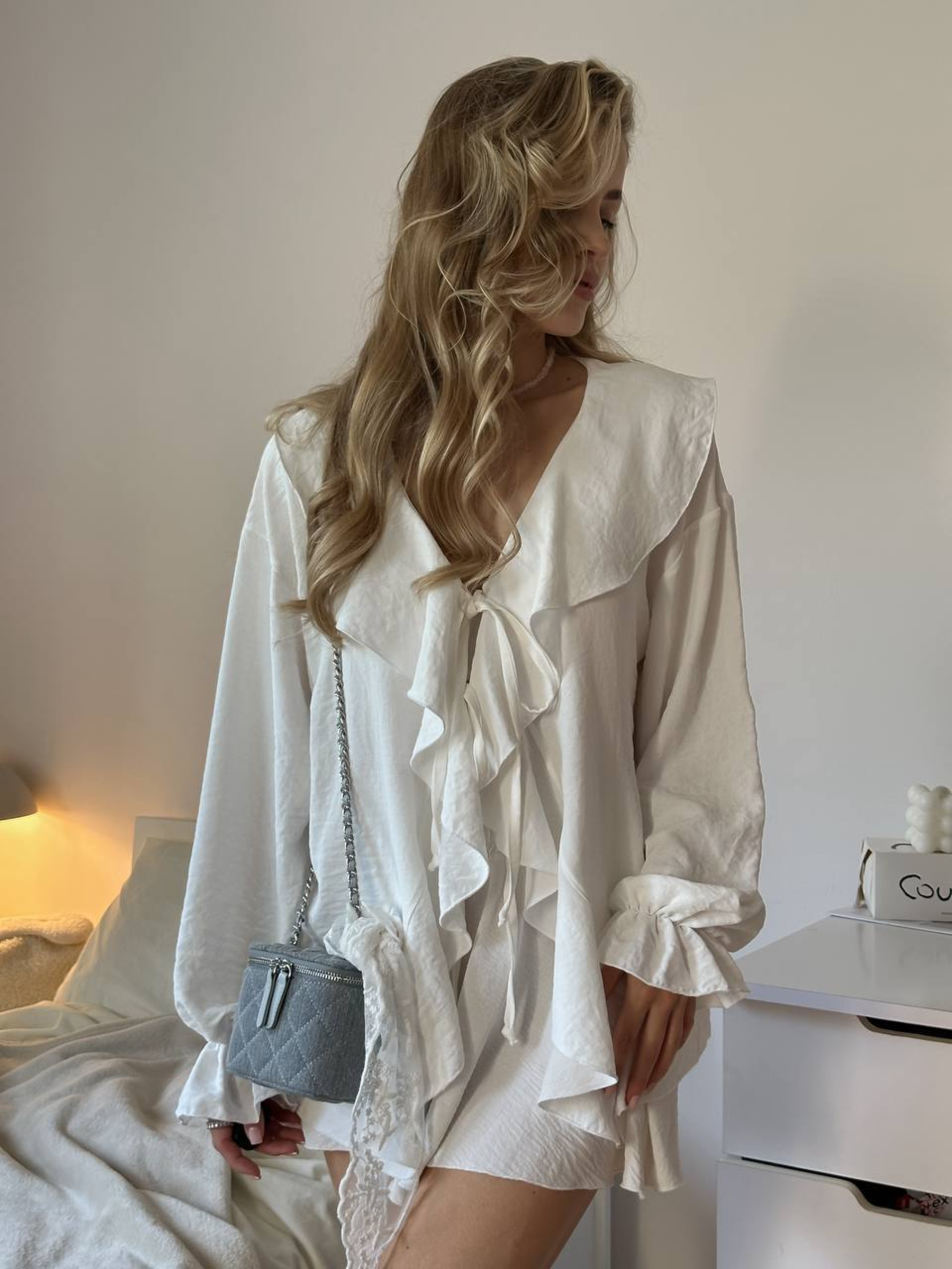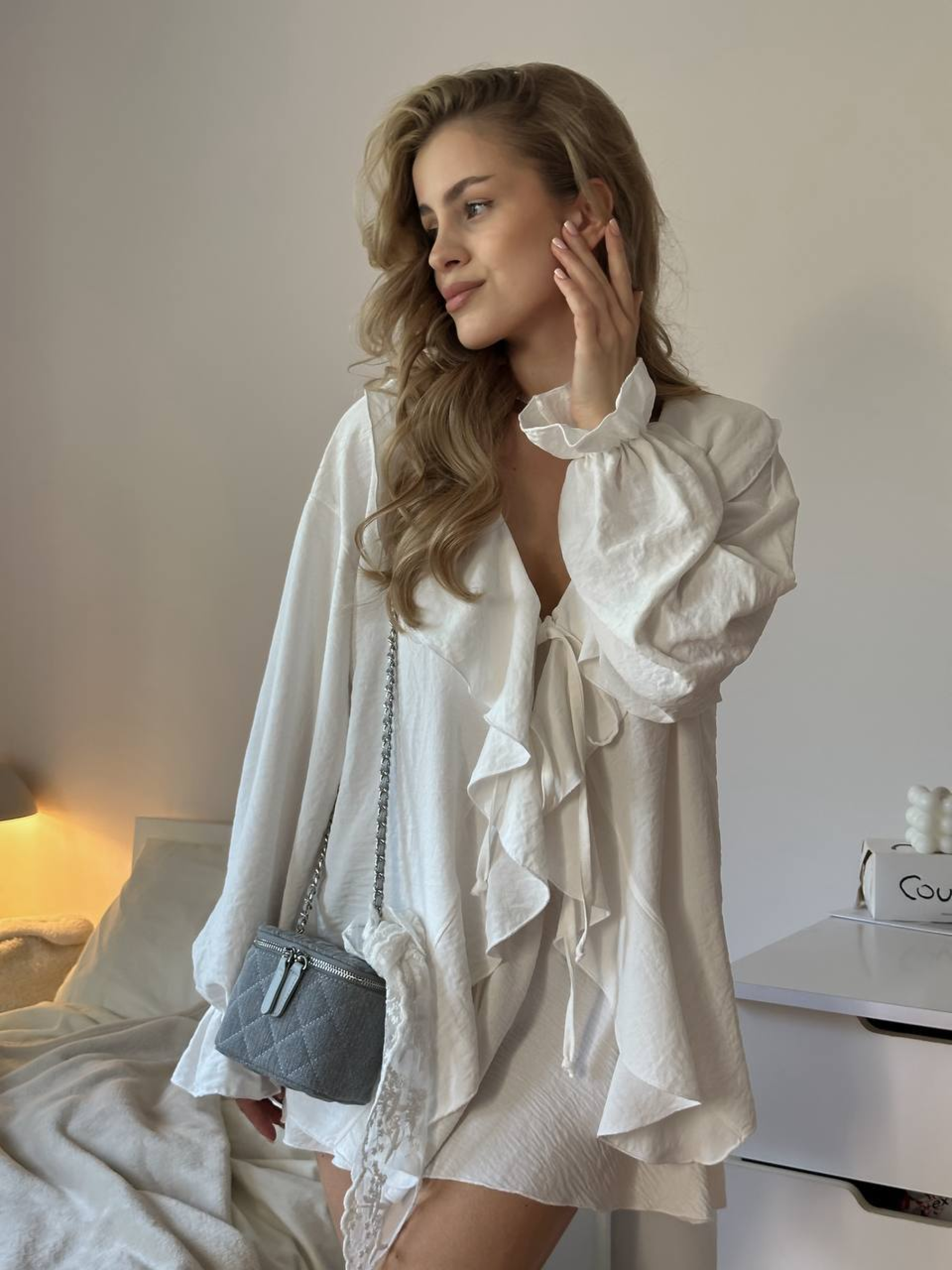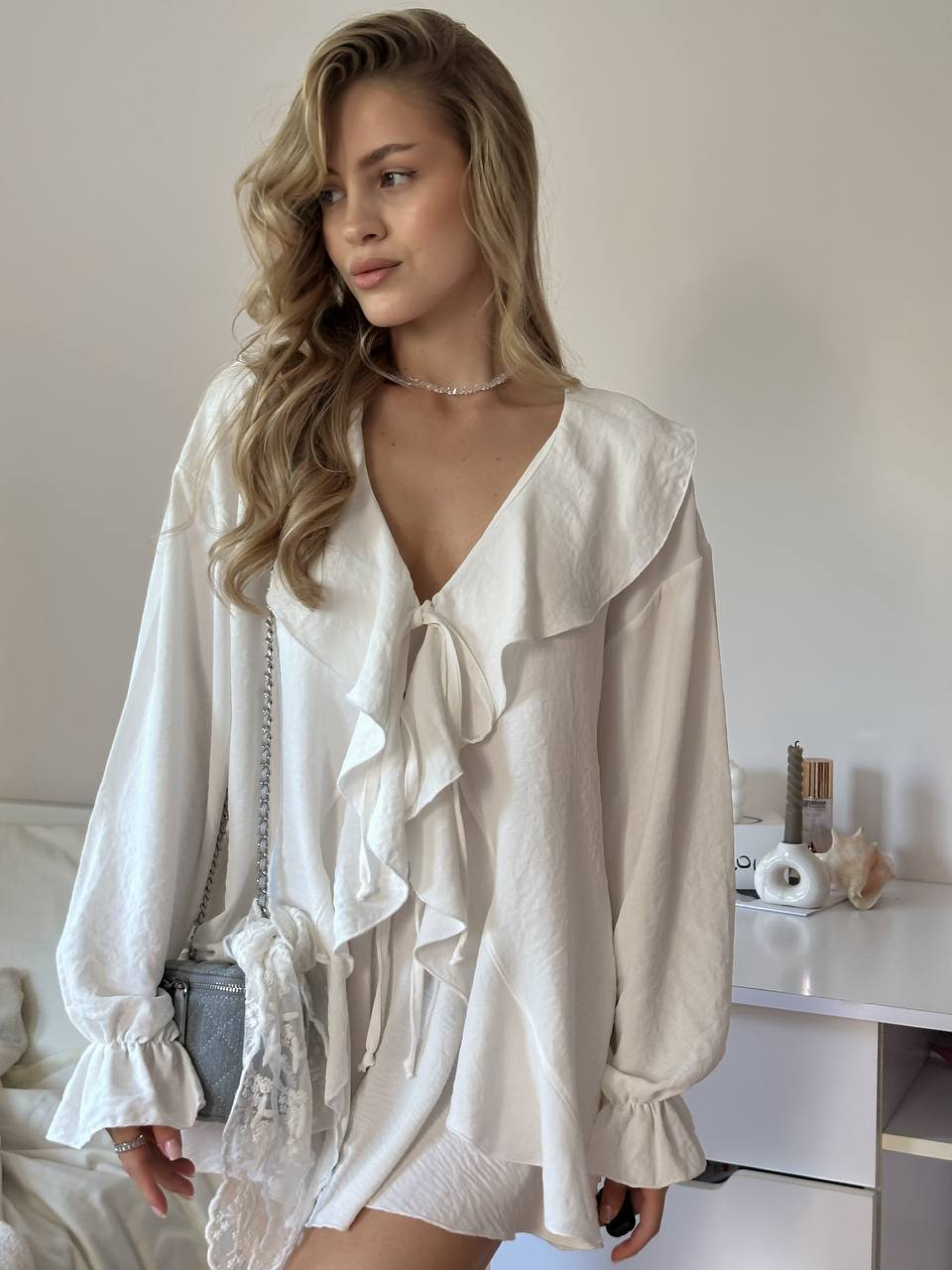 Жіночий літній легкий костюм із рюшами (сорочка+шорти), Молочний Uaclothes (like14523) модель like14523-molochnj