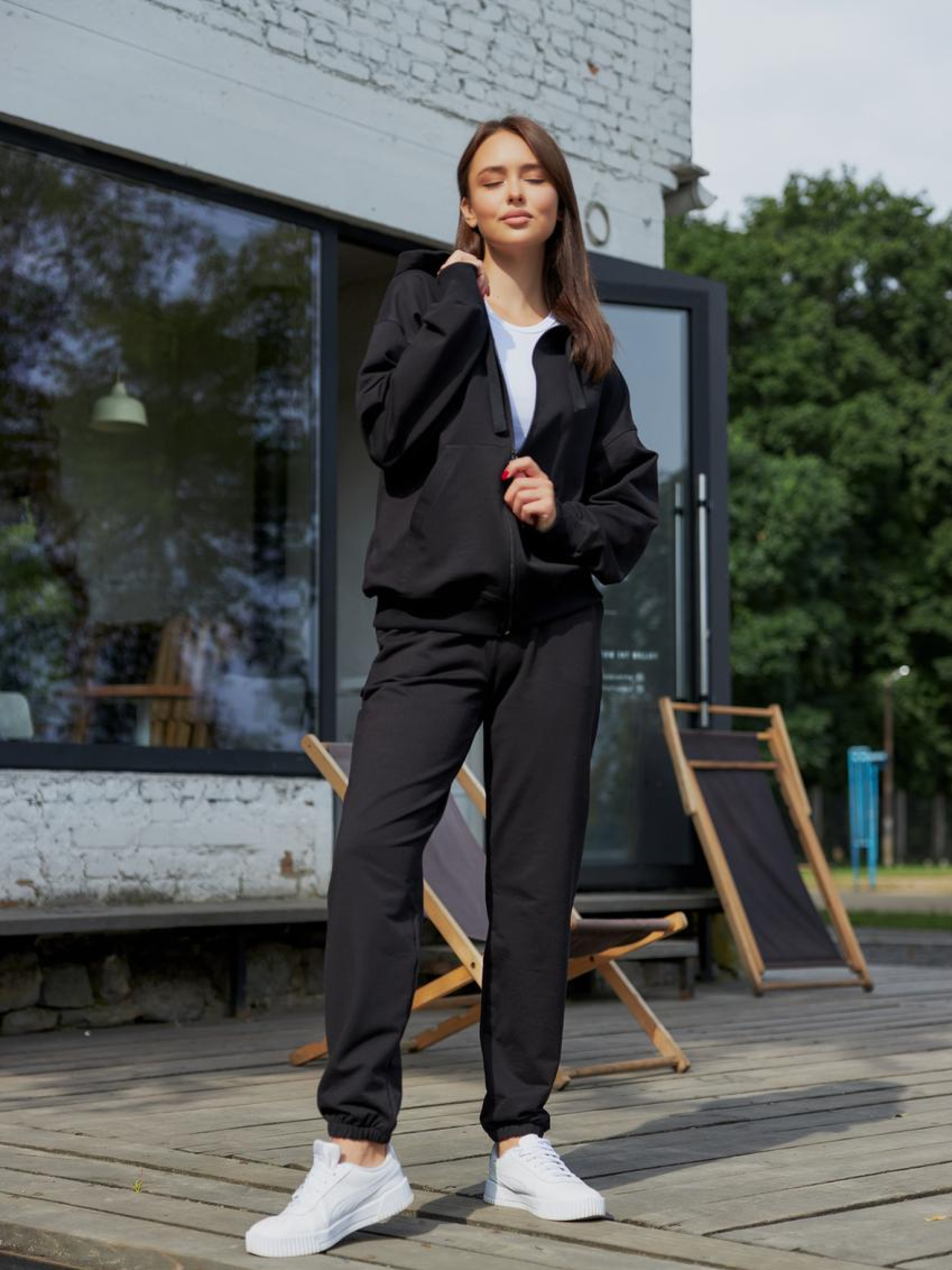 Жіночий спортивний костюм з худі та джогерами Цей стильний жіночий спортивний костюм ідеально поєднує комфорт і елегантність. Костюм складається з худі з капюшоном на замку та зручних джогерів, що забезпечують максимальну свободу рухів. Худі: М'яка тканина з приємним на дотик покриттям. Капюшон на шнурку дозволяє регулювати його розмір для більшого комфорту. Замість класичного застібки – зручний замок, який додає сучасного вигляду та дозволяє легко вдягати та знімати худі. Джогери: Талія на гумці з додатковим шнурком для регулювання, що гарантує ідеальну посадку. Легкі та дихаючі, ці джогери прекрасно підходять для тренувань або прогулянок. Матеріал: Високоякісна тканина, яка швидко вбирає вологу, забезпечуючи вам сухість під час активних занять. Цей костюм стане чудовим вибором для повсякденних образів або для занять спортом, поєднуючи стиль і комфорт у кожному русі.