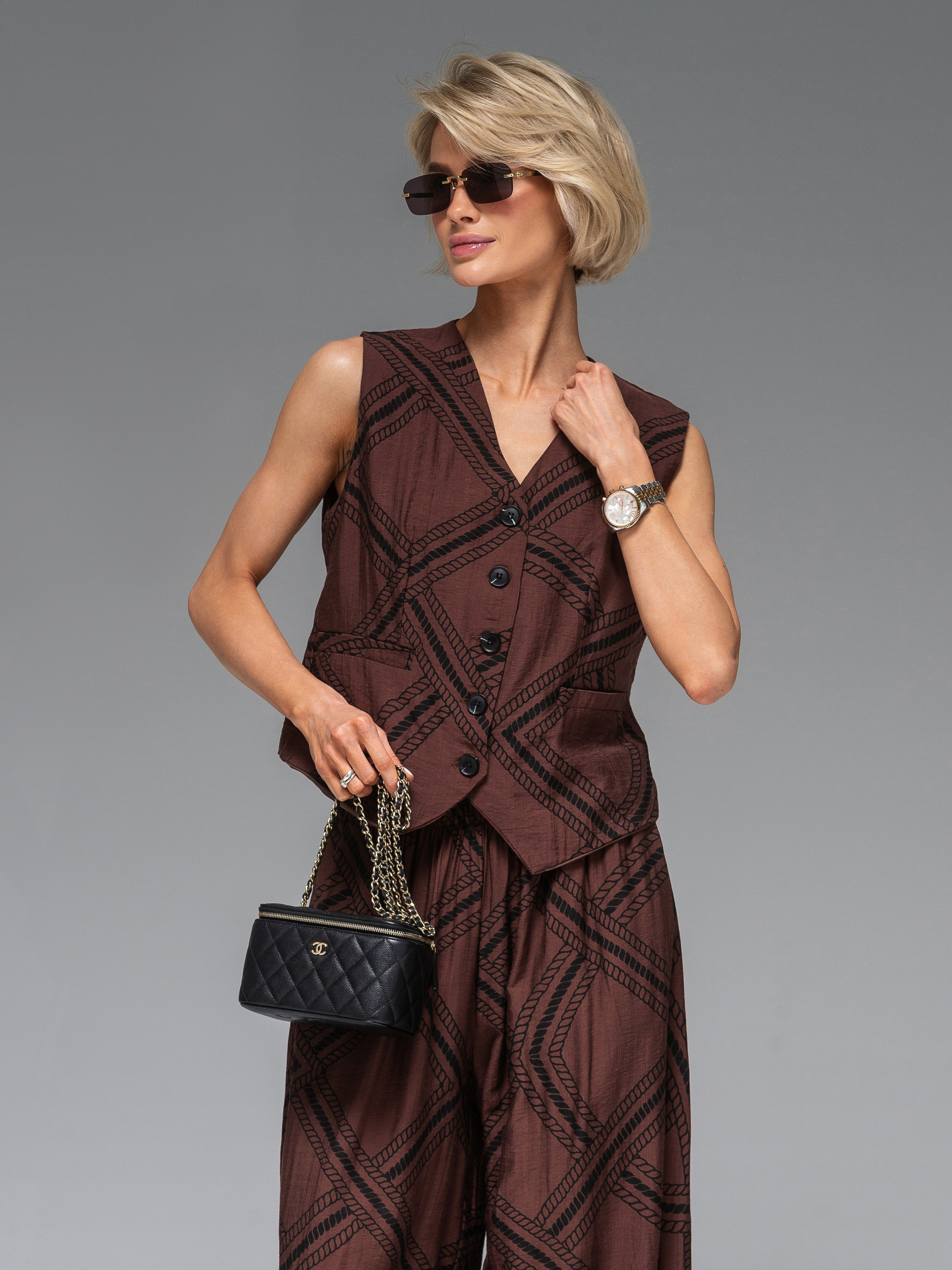 Повсякденний костюм VIVA WEAR модель 3808-jilet-choco