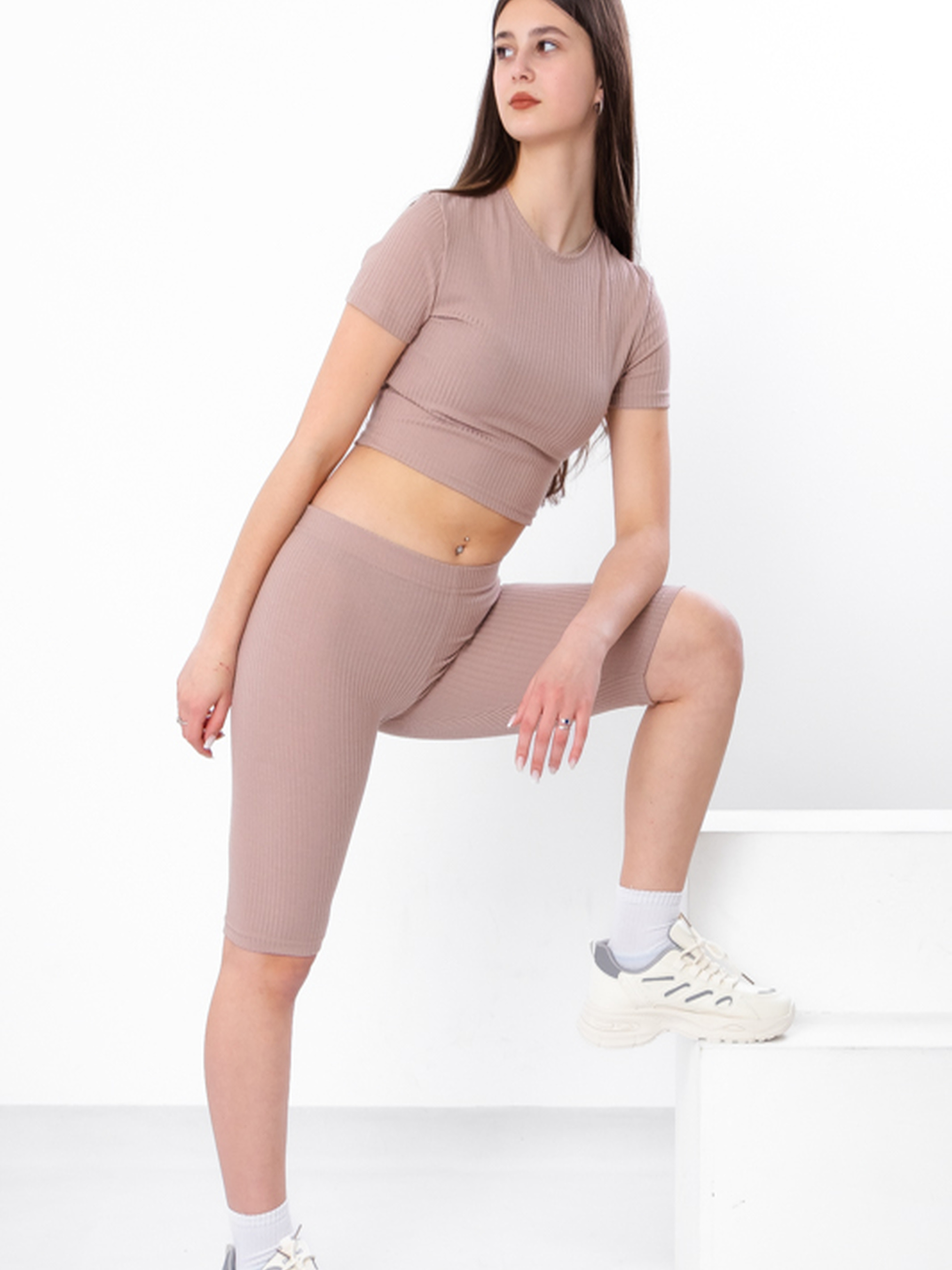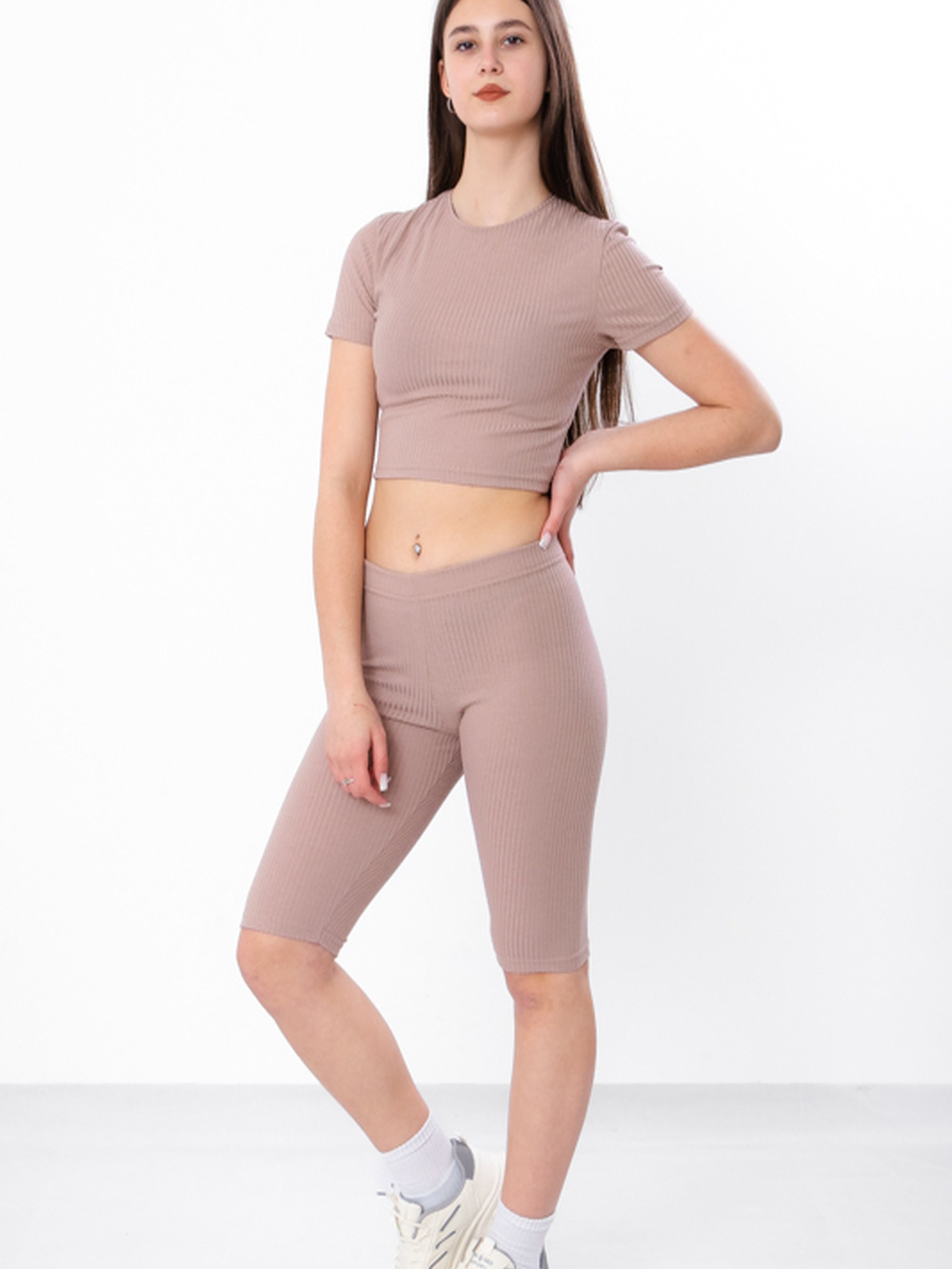 Полотно: рубчик-мустанг Склад полотна: 65% поліестер, 30% віскоза, 5% еластан Зріст: 140-170 Комплект для дівчинки - топ і велосипедки для активного і стильного літа! Цей модний комплект ідеально підходить для підлітків, які цінують комфорт і сучасний вигляд. Виготовлений з високоякісних матеріалів, він забезпечує приємне відчуття на шкірі та зручність під час руху. Легкий топ з короткими рукавами і зручні велосипедки створюють бездоганний образ для спортивних занять, прогулянок чи повсякденного носіння. Цей комплект стане незамінною річчю у гардеробі вашої дитини!