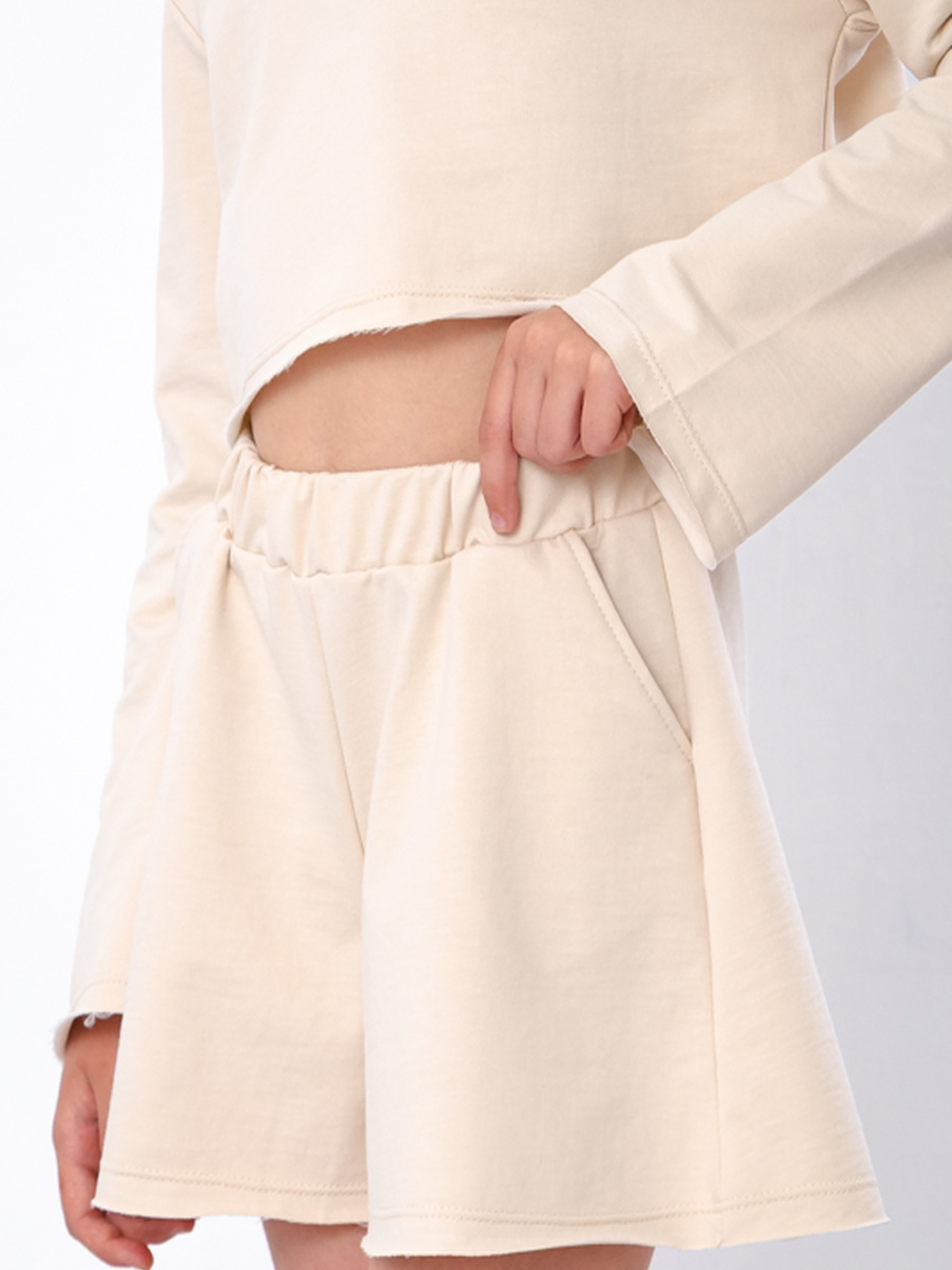 Полотно: двонитка однотонна Склад полотна: 80% бавовна, 20% поліестер Зріст: 140-170 Комплект для дівчинки-підлітка з трикотажної двонитки — ідеальний варіант для активного літа. Складається з укороченої кофти з рукавами та зручних шортів з кишенями. Однотонний, універсальний дизайн поєднує стиль і комфорт. Тканина м’яка, дихаюча, не викликає подразнень і добре зберігає форму після прання. Кофта захищає вітряної погоди, а шорти на еластичному поясі дарують свободу рухів. Підходить для щоденного носіння, прогулянок та активного відпочинку.