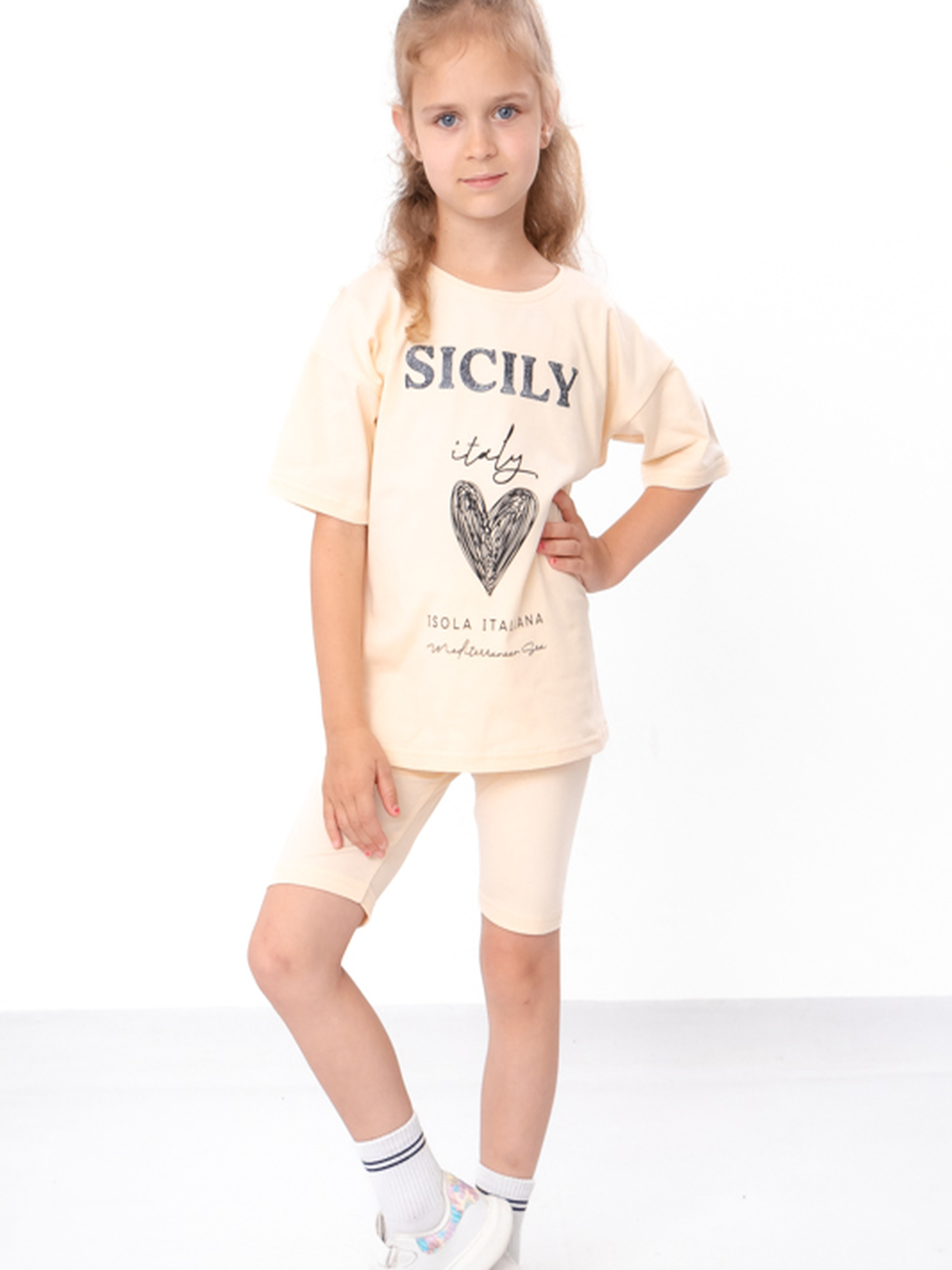 Полотно: фулікра однотонна Склад полотна: 95% бавовна, 5% лайкра Зріст: 110-134 Представляємо наш чарівний набір для дівчинки, що складається з модної футболки та шортів! Ідеально підходить для вашої маленької модниці, цей набір виготовлено з високоякісних матеріалів для міцності та комфорту. Незалежно від того, грає вона на свіжому повітрі чи відвідує звичайну вечірку, цей набір пропонує стиль і практичність. Завдяки різноманітності доступних розмірів і кольорів легко знайти ідеальний варіант для вашої дівчини. Покращіть її гардероб сьогодні за допомогою нашого комплекту для дівчинки!