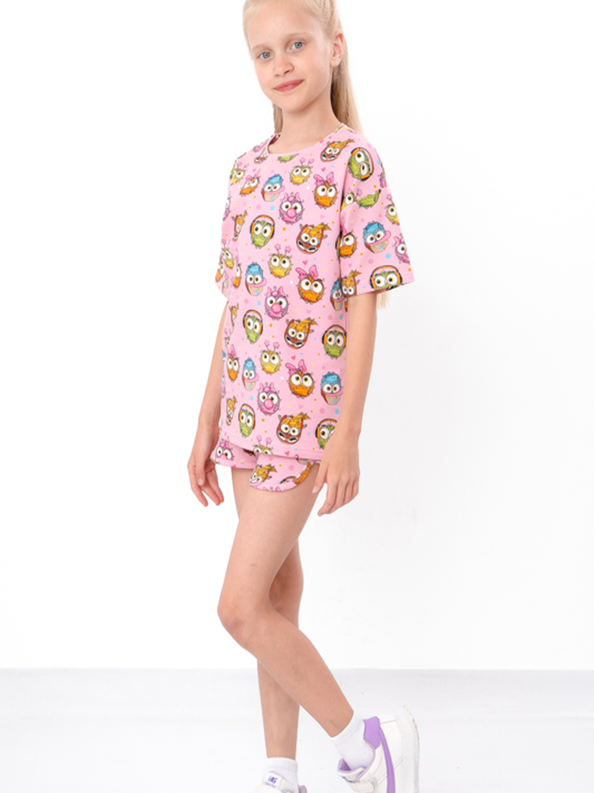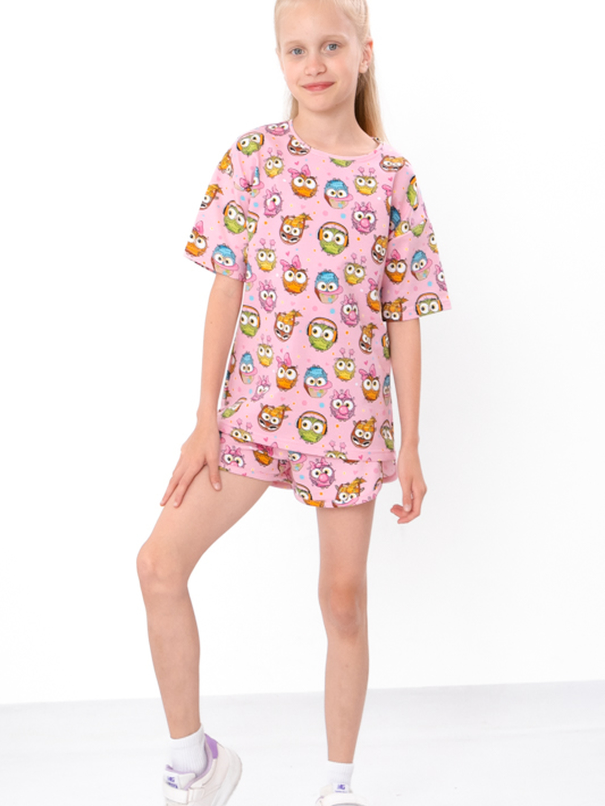 Полотно: двонитка принтована Склад полотна: 80% бавовна, 20% поліестер Зріст: 104–134 см Комплект для дівчинки (футболка + шорти) з принтованої двонитки — ідеальний вибір для літа. Зручний прямий крій футболки, м’яка горловина та яскравий принт дарують комфорт і гарний настрій. Шорти з м’якою резинкою не тиснуть і забезпечують свободу рухів. Матеріал дихає, зносостійкий, не втрачає форму після прання. Підходить для садка, прогулянок і щоденного носіння.