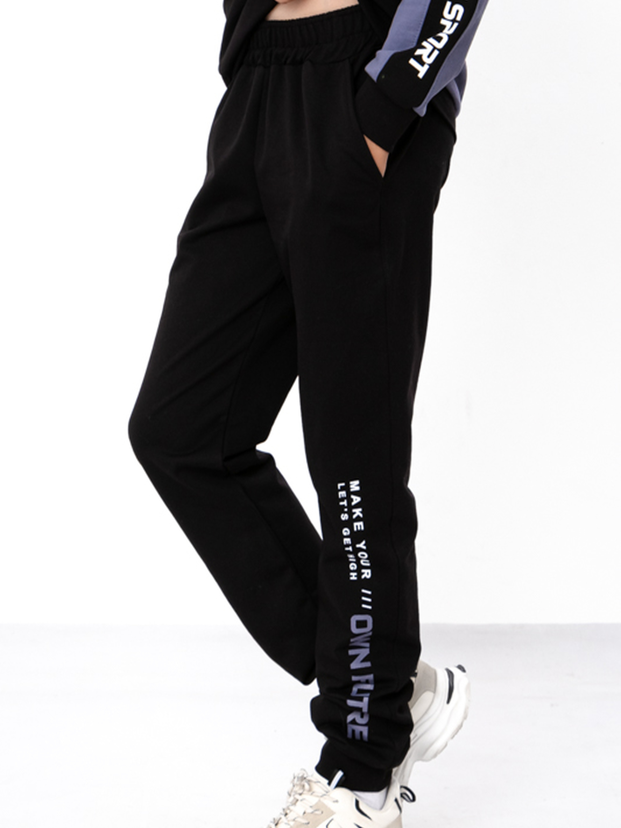 Полотно: двонитка однотонна Склад полотна: 80% бавовна, 20% поліестер Зріст: 140-170 Джемпер та штани з надписами для підлітків з двонитки однотонної тканини. Склад полотна: 80% бавовна, 20% поліестер, що гарантує комфорт та зручність протягом дня. Доступні в розмірах на зріст 140-170 см, що робить їх ідеальними для підлітків. Модний дизайн з виразними надписами додає стильного вигляду та підходить для повсякденного носіння.