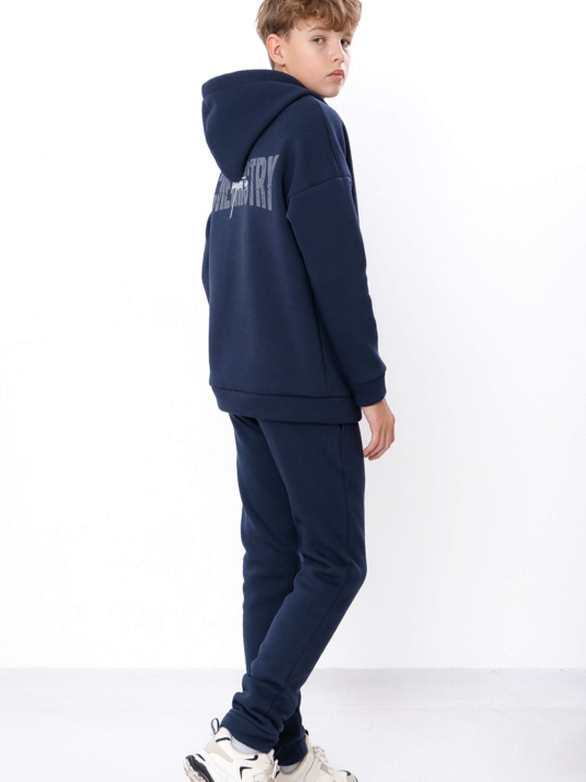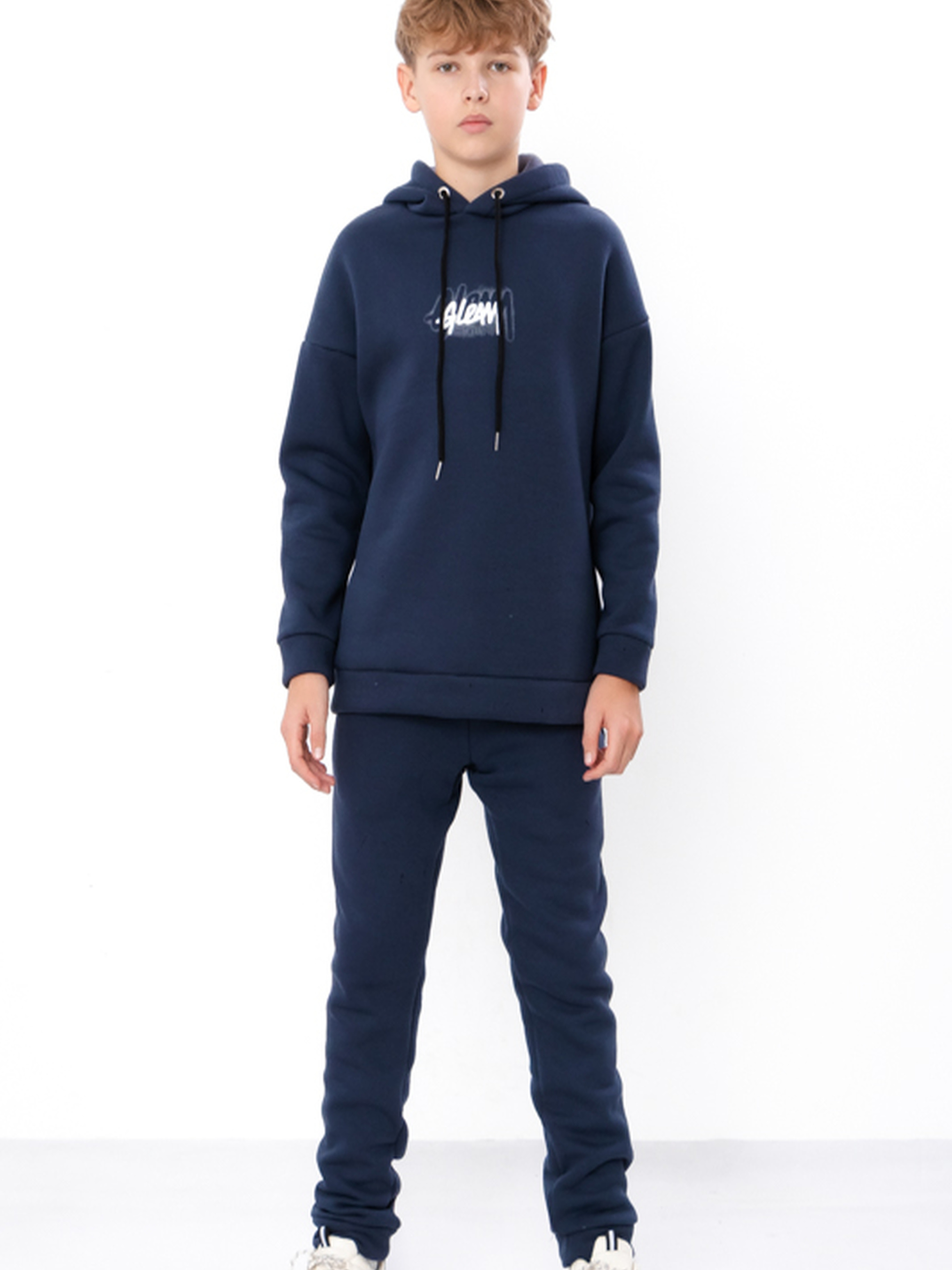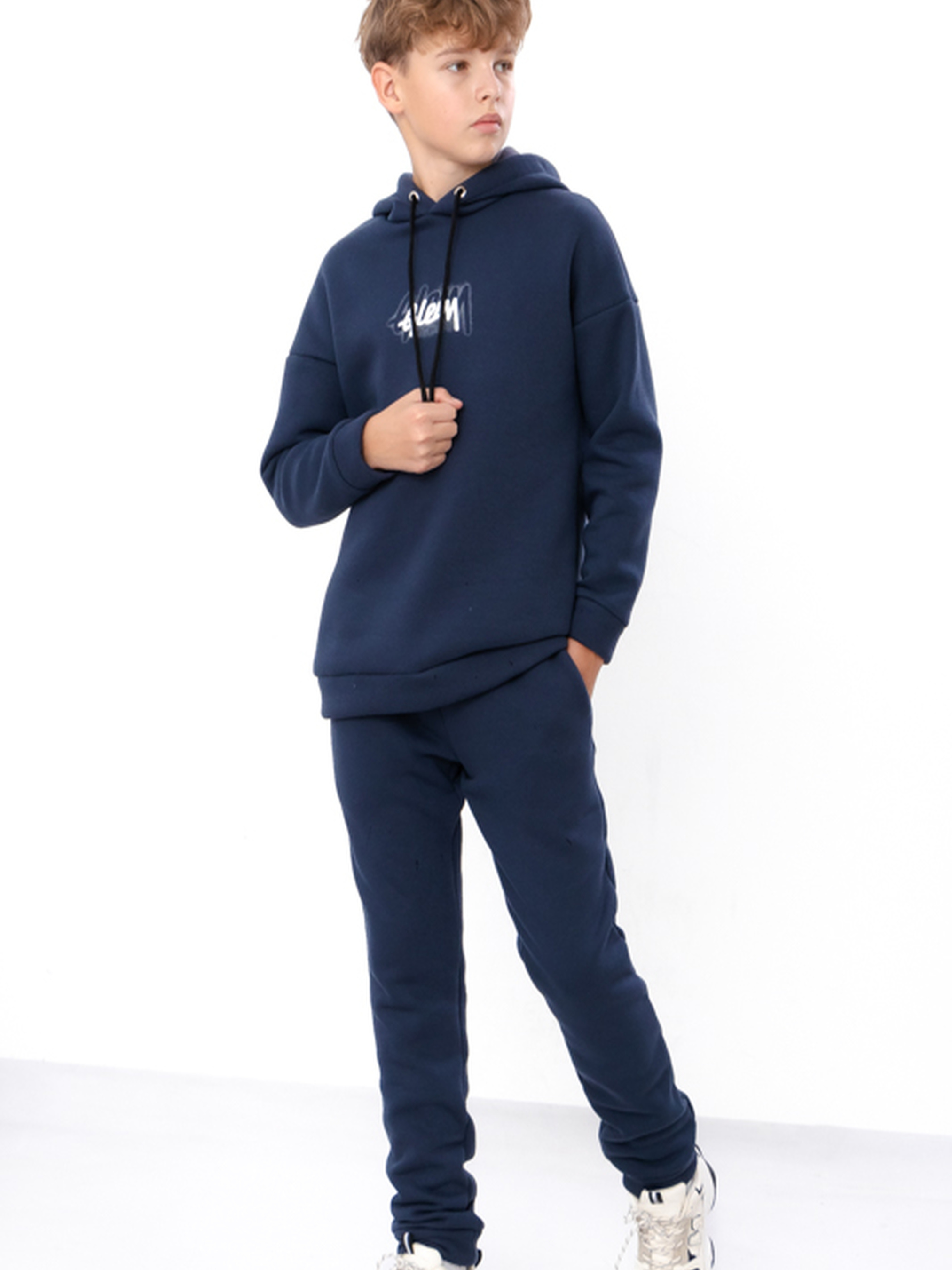 Полотно: трьохнитка однотонна Склад полотна: 80% бавовна, 20% поліестер Зріст: 134-170 Теплий костюм для хлопчика приталеного крою з трьохнитки це ідеальний вибір для щоденного носіння в осінньо-зимовий період. Полотно трьохнитка щільна м’яка та приємна до тіла чудово зберігає тепло. Склад полотна вісімдесят відсотків бавовна двадцять відсотків поліестер. Бавовна забезпечує повітропроникність а поліестер зносостійкість. Комплект складається з худі вільного крою з капюшоном та штанів-джогерів приталеного крою. Манжети на рукавах та по низу худі й штанів забезпечують зручну посадку та зберігають тепло. Костюм створює сучасний образ у стилі casual.