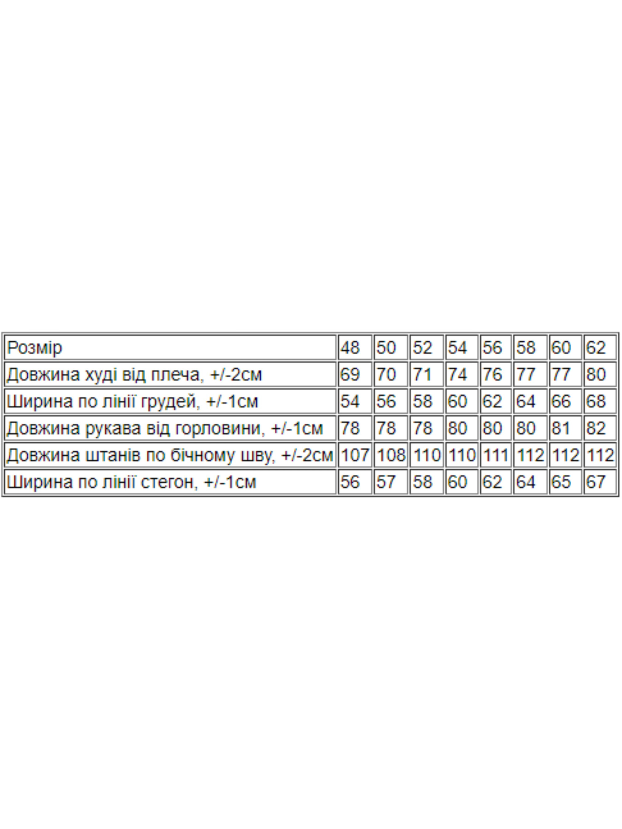 Полотно: трьохнитка однотонна Склад полотна: 80% бавовна 20% поліестер Розмір: 4856-62 Спортивний зимовий костюм для чоловіка від ТМ “Носи Своє” відмінно впишеться в гардероб любителів активного способу життя довгих прогулянок туризму для повсякденного носіння. Розмірний ряд широкий є великі розміри. Худі чоловіча має глибокий зручний капюшон по низу виробу та на рукавах манжети. Штани джоггери ідеально сідають на будь-яку фігуру і не сковують рухів для кращої фіксації всередині є шнурок. Кожну деталь гардеробу можна носити як окремо так і в поєднанні. Полотно з якого виконаний комплект (трьохнитка 80% бавовна 20% поліестер) складається з бавовни та невеликої кількості штучних ниток що дозволяє йому бути приємним до тіла теплим і міцним не витягуватися з часом і не втрачати своїх властивостей після безлічі прань. ДОГЛЯД: Тринитку рекомендується прати при низькій температурі - 30 або 40 градусів зазвичай виявляється цілком достатньо. Такий делікатний підхід допомагає знизити усадку до мінімуму. Також не слід сушити на опалювальних приладах або під сонячним промінням. Прасувати цей матеріал не обов'язково проте якщо ви все ж таки хочете випрасувати виріб використовуйте режим праски для бавовни.