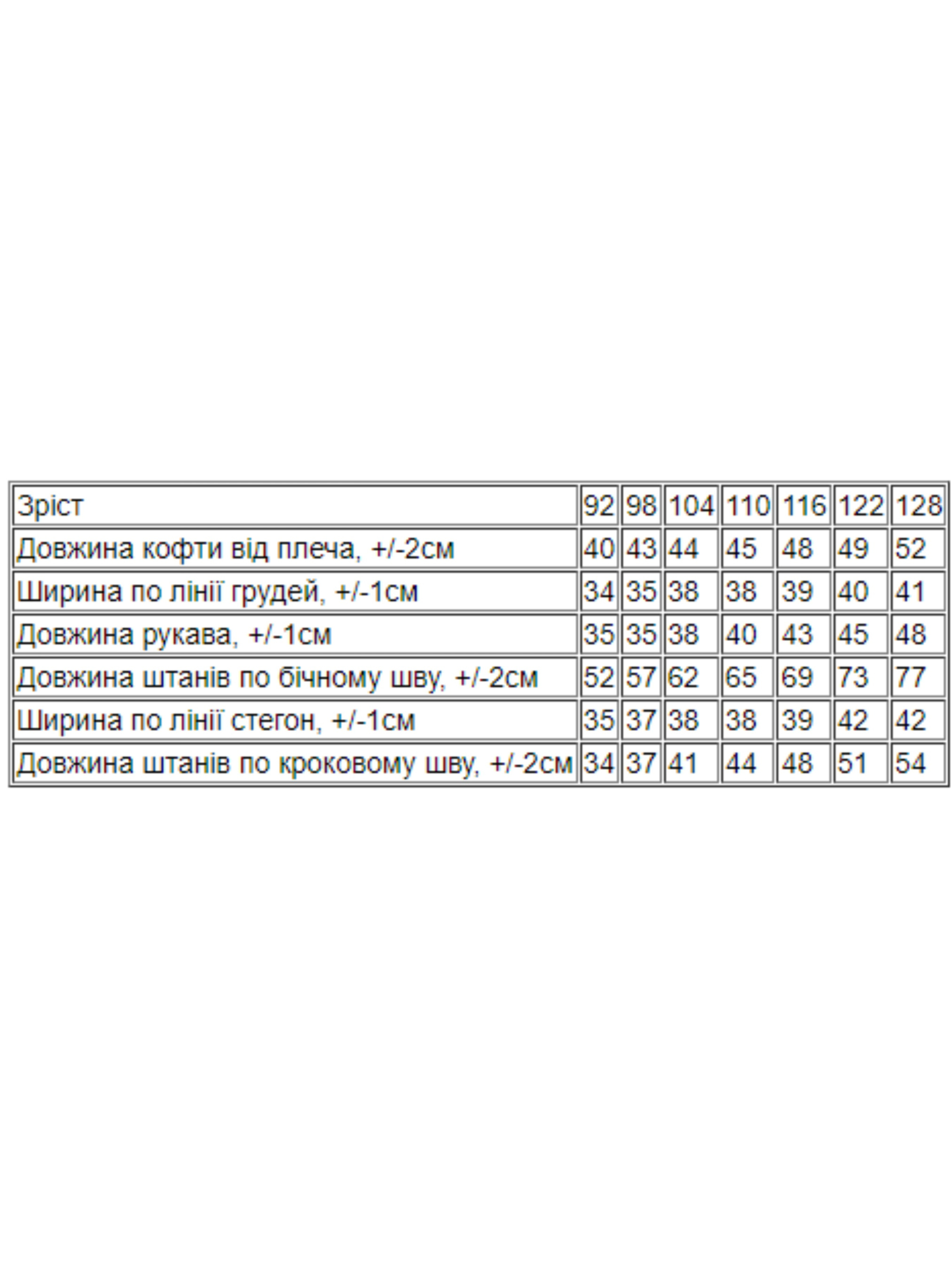 Полотно: фліс однотонний Склад полотна: 100% поліестер Зріст: 92-128 Костюм для хлопчика популярного українського бренду Носи Своє - вдале придбання для гардеробу вашої модної та енергійної дитини. Це сучасний ансамбль в якому можна гуляти парком займатися фізкультурою йти на прогулянку з друзями. Комплект складається із двох виробів; куртка на блискавці з двома бічними кишенями - листочками глибокий каптур по низу та на рукавах гумка штани звужені мають дві бічні кишені пояс та манжети на гумці. На передній поличці виробу та штанині – дизайнерська вишивка. Для пошиття комплекту використано високоякісне трикотажне полотно фліс Фліс – полотно синтетичного походження на основі найтонших поліестерових та інших штучних волокон. М'який та приємний тілу матеріал добре пропускає повітря. Він захищає від холоду але не перегріває. У ньому зручно як відпочивати так і насолоджуватися активними іграми. Догляд: прання за температури 30 градусів без попереднього замочування. Виріб перед пранням необхідно вивернути на виворітний бік барабанна сушка заборонена; прасувати при t не більше 110С з вивороту; при пранні не змішувати з іншими типами тканин. Ми цінуємо наших клієнтів та цінуємо репутацію тому пропонуємо лише найкращі перевірені часом та на особистому досвіді товари. Приємних покупок дорогі покупці!