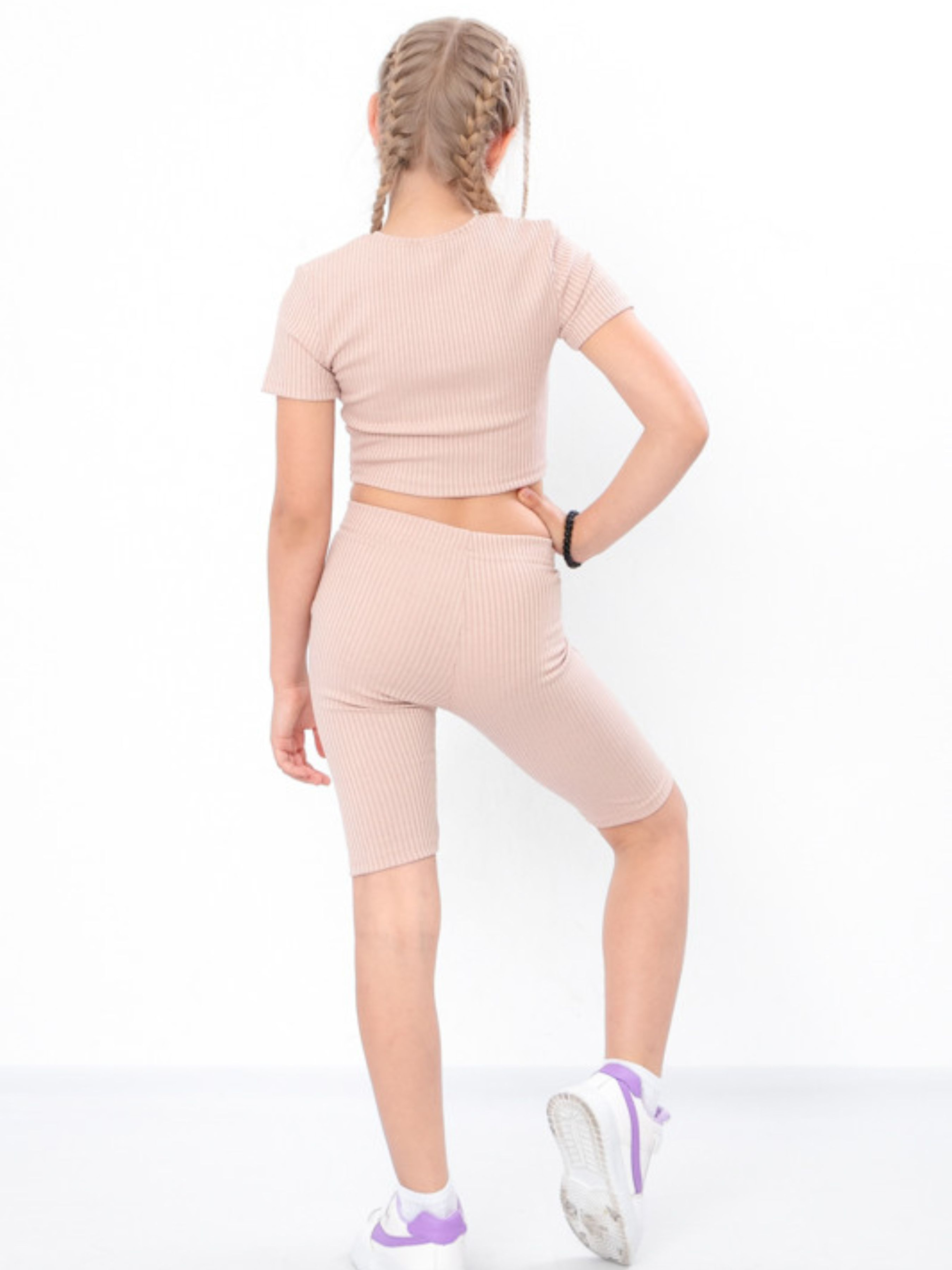 Комплект для дівчинки підлітковий (топ+велосипедки Полотно: рубчик-мустанг Склад полотна: 65% поліестер, 30% віскоза, 5% еластан Зріст: 140-170 Комплект для дівчинки - топ і велосипедки для активного і стильного літа! Цей модний комплект ідеально підходить для підлітків, які цінують комфорт і сучасний вигляд. Виготовлений з високоякісних матеріалів, він забезпечує приємне відчуття на шкірі та зручність під час руху. Легкий топ з короткими рукавами і зручні велосипедки створюють бездоганний образ для спортивних занять, прогулянок чи повсякденного носіння. Цей комплект стане незамінною річчю у гардеробі вашої дитини!