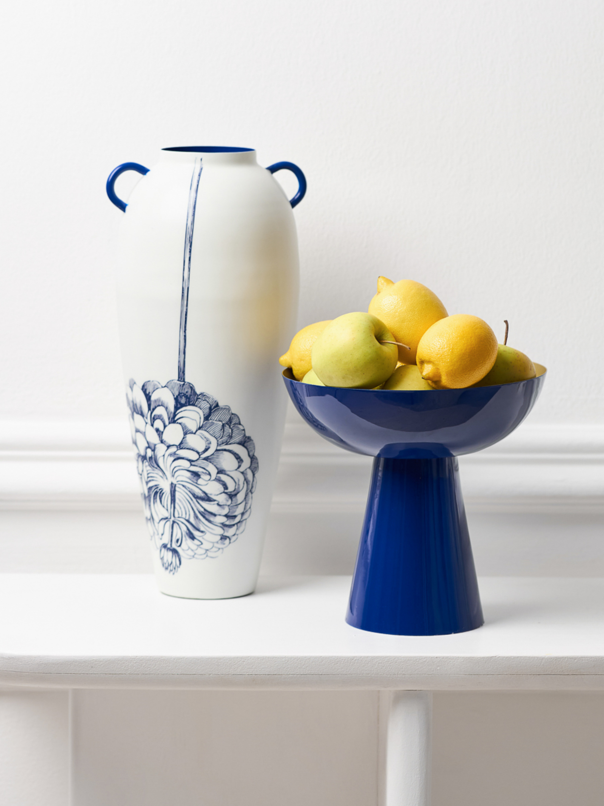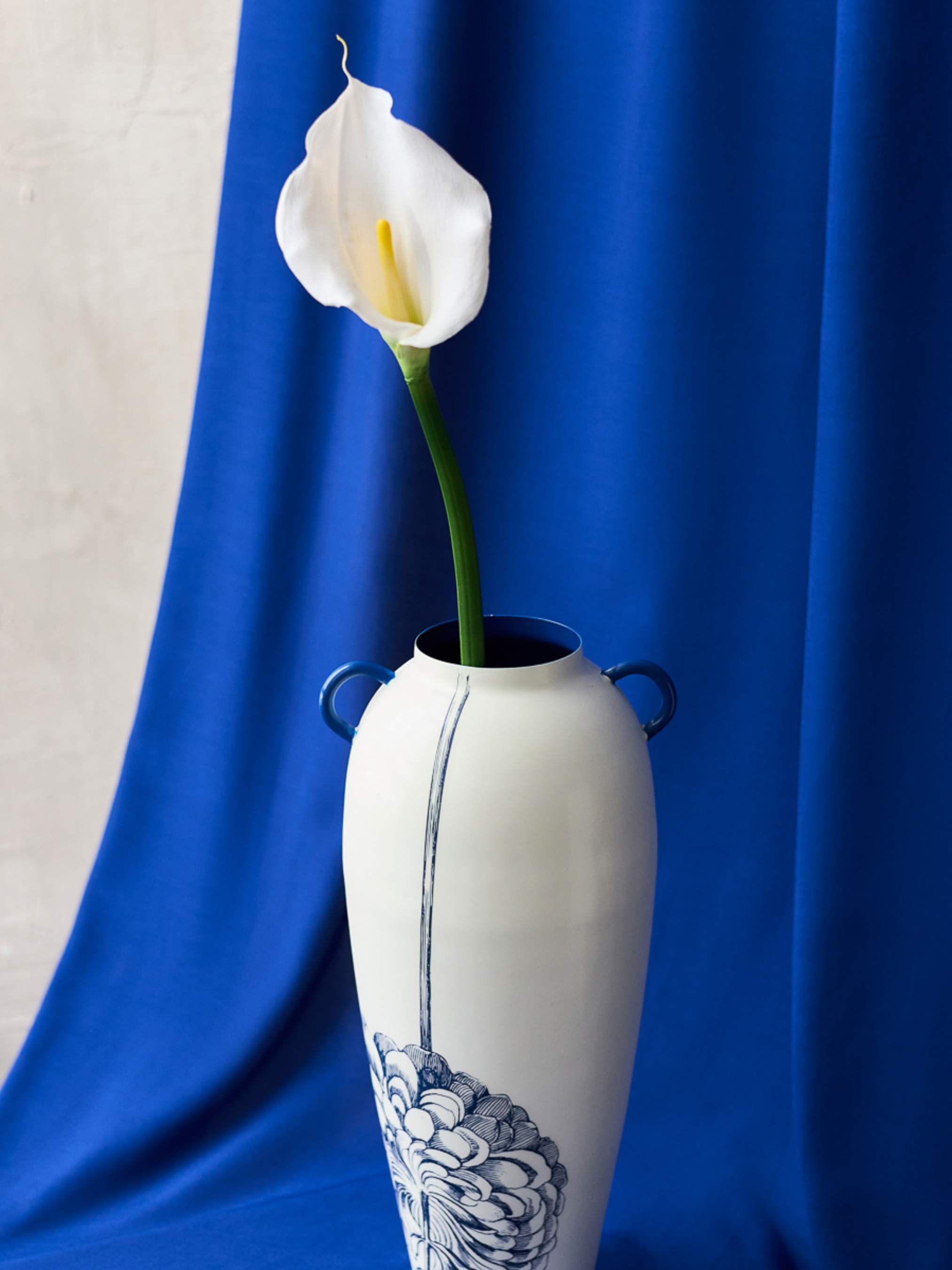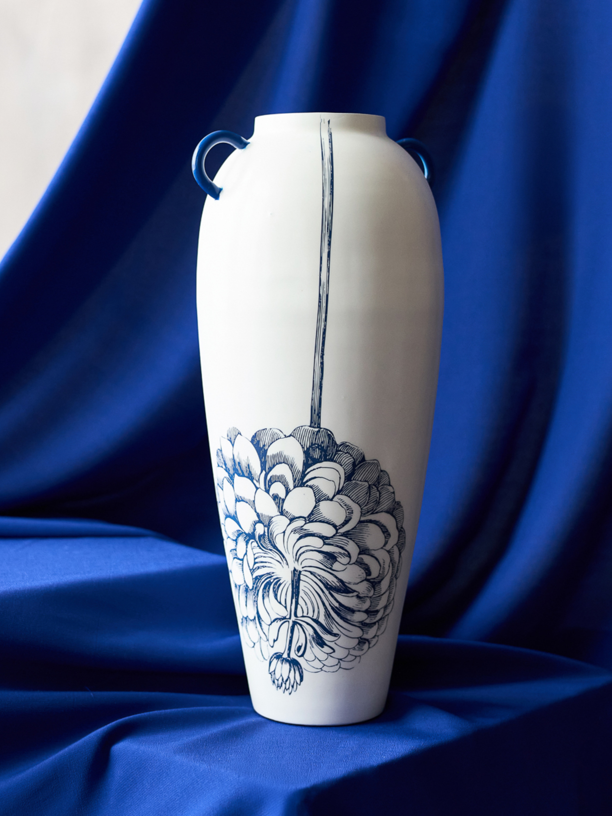 Ваза "Елізіум" залізна біло-синя з принтом MBM HOME модель VB-03 PRINT/DEEP BLUE