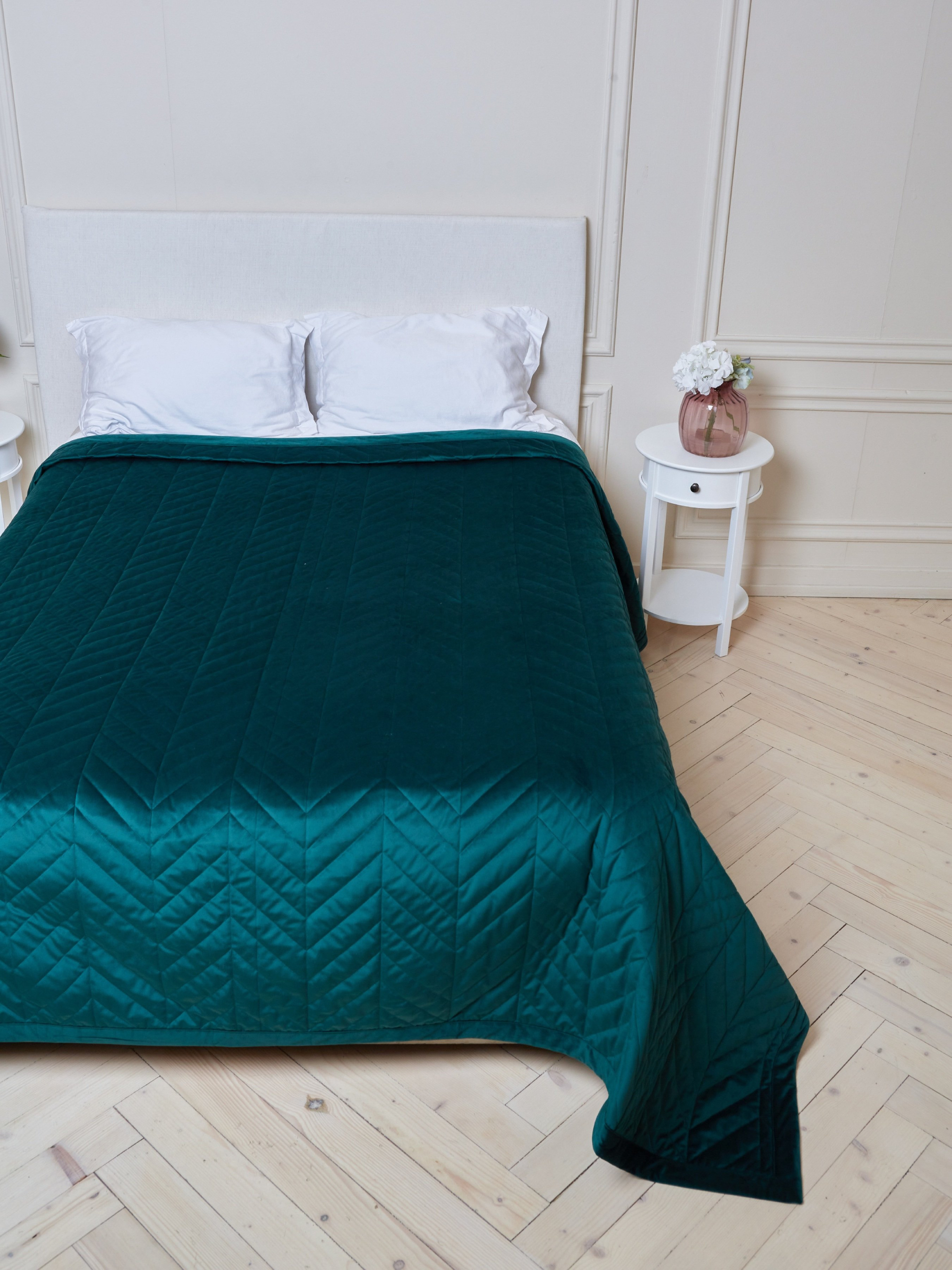 Покривало двостороннє стьобане на ліжко зелений МАЕСТРО модель 104214