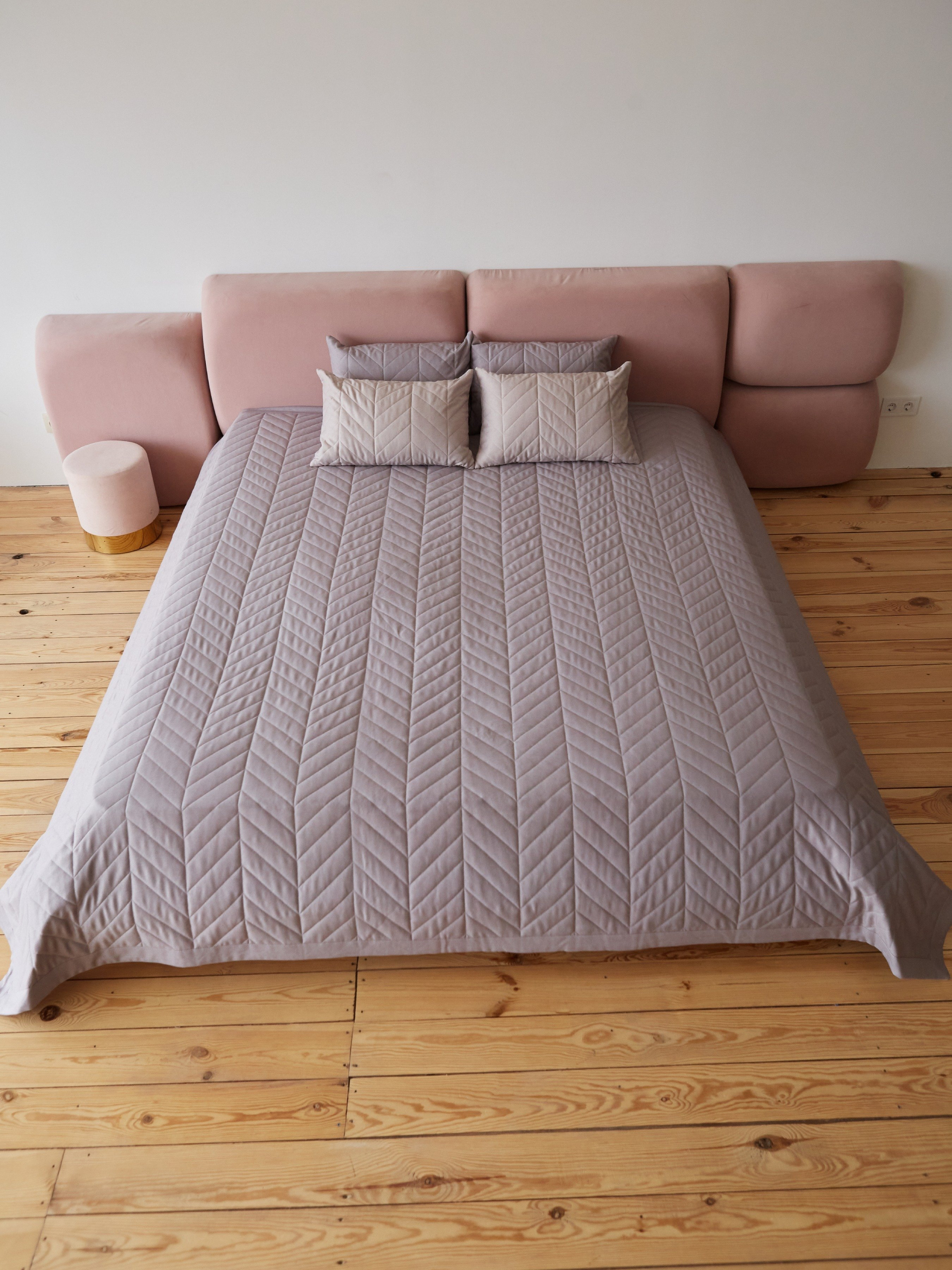 Покривало двостороннє стьобане на ліжко сірий МАЕСТРО модель 102357