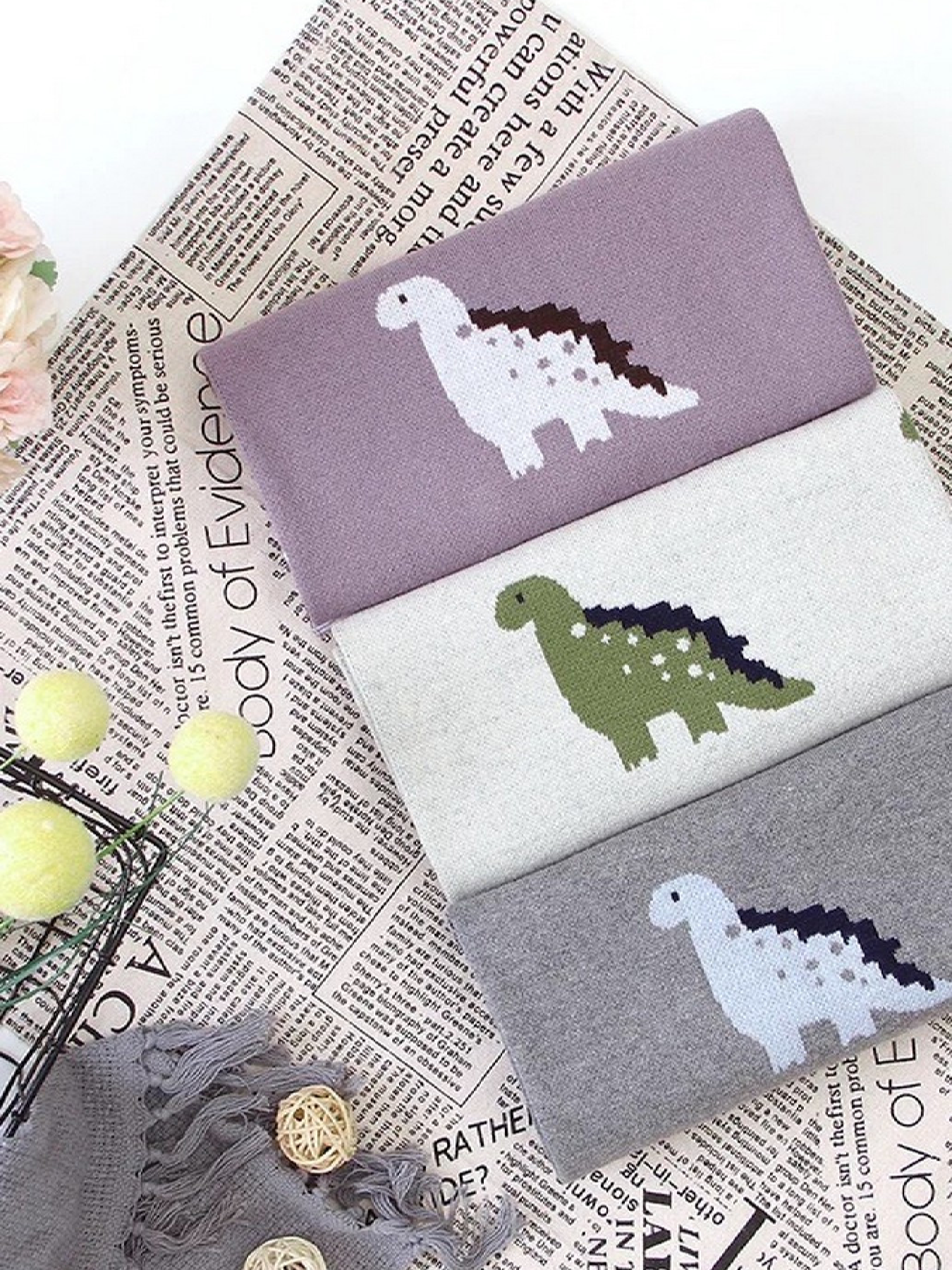 Lovely Svi Плед Дитячий Бавовна В'язаний Сірий Динозаврики