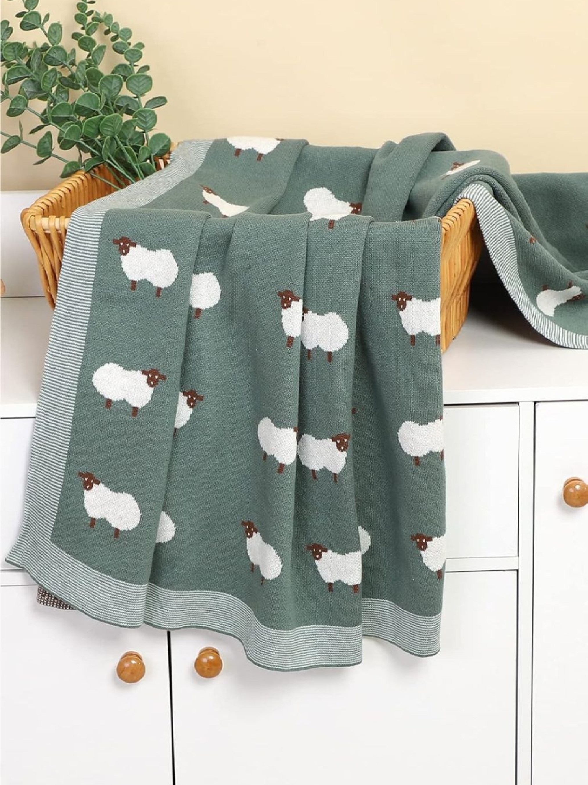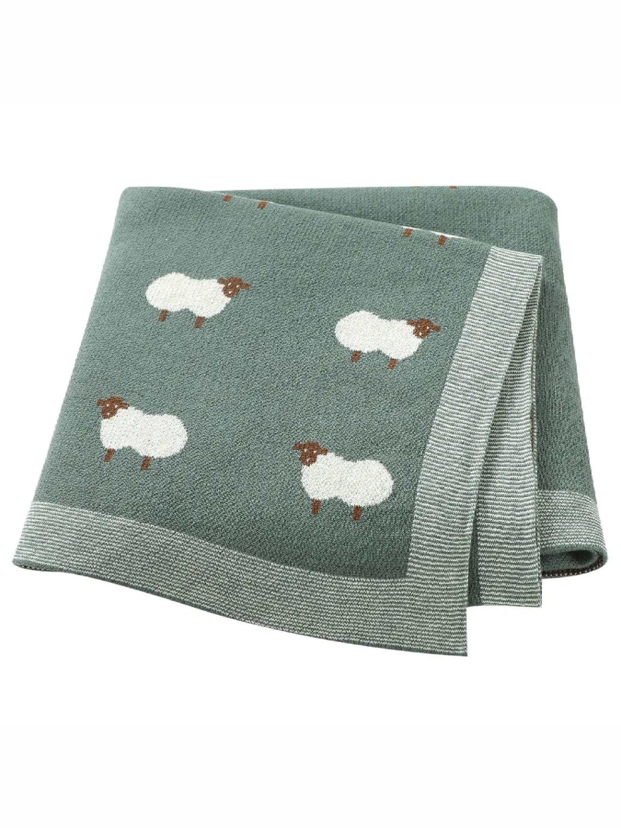 Lovely Svi Плед Дитячий Бавовна В'язаний Зелений Вівці