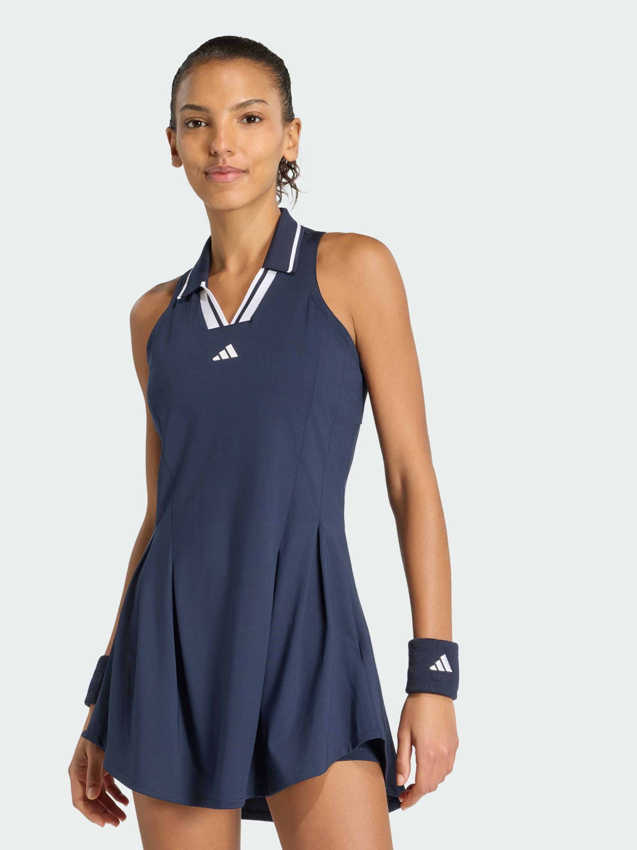 Характеристики Комір Інтерлок Облягаючий крій Основний матеріал: 79% перероблений поліестер, 21% еластан; Внутрішні шорти: 85% перероблений поліестер, 15% еластан; Рифлений комір: 100% перероблений поліестер Технологія CLIMACOOL Опис Сукня Tennis Climacool Pro поєднує спорт і стиль. Натхненна тенісом та вуличною модою Парижа, вона поєднує елегантність і функціональність. Технологія Climacool відводить вологу, забезпечуючи відчуття свіжості та комфорту під час гри. Облягаючий крій підкреслює фігуру, а контурні лінії створюють стильний силует. Еластичний матеріал дозволяє вільно рухатися, а укорочений бічний шов забезпечує легкий доступ до м'яча. Внутрішні трусики та комір додають охайного вигляду. З брендингом adidas ця сукня уособлює тенісну спадщину та допомагає почуватися впевнено на корті.