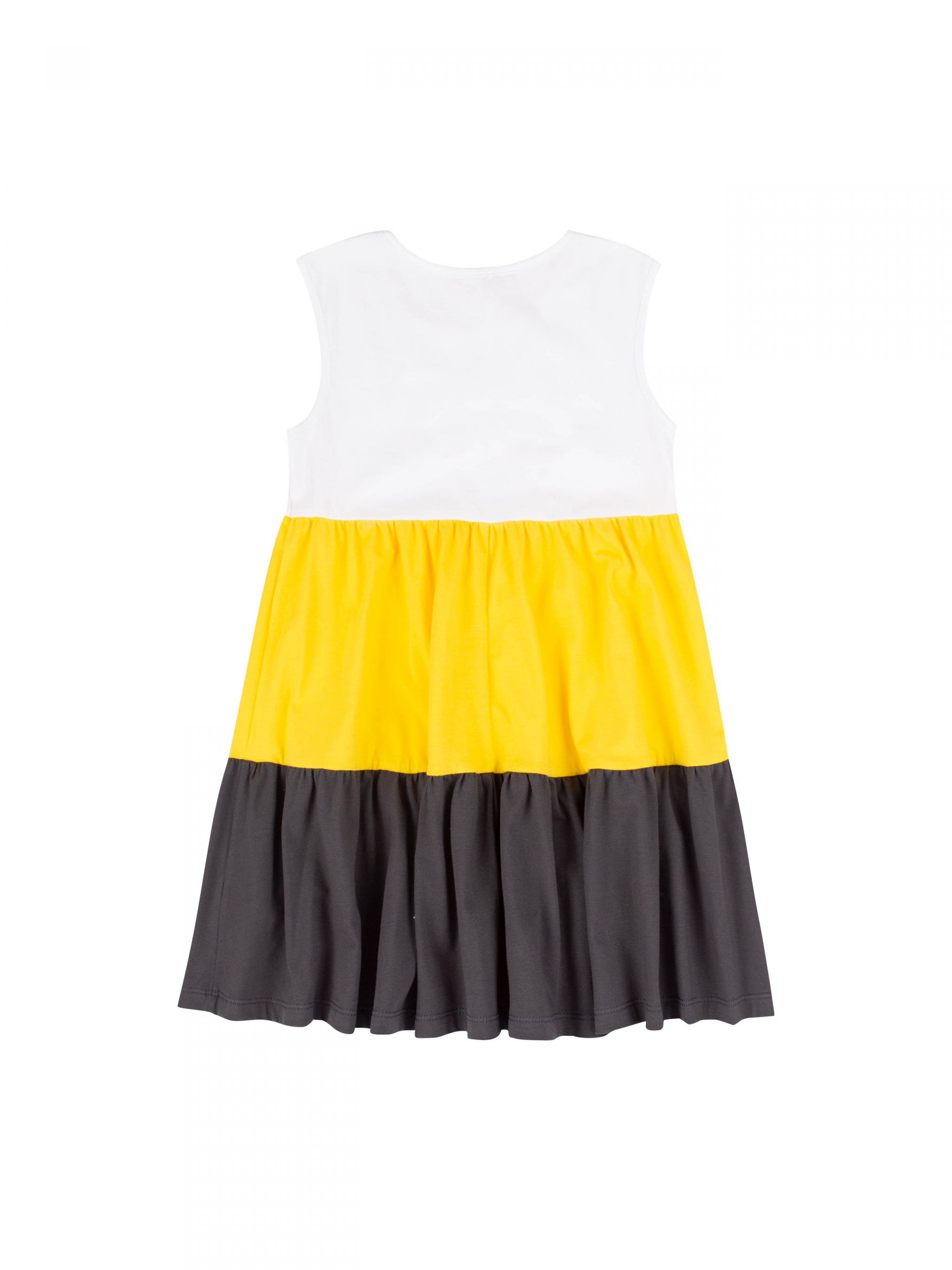 Сукня без рукава для дівчинки. Модель трапецевидна з ефектним поєднанням кольорів. Тканина еластична, однотонна.