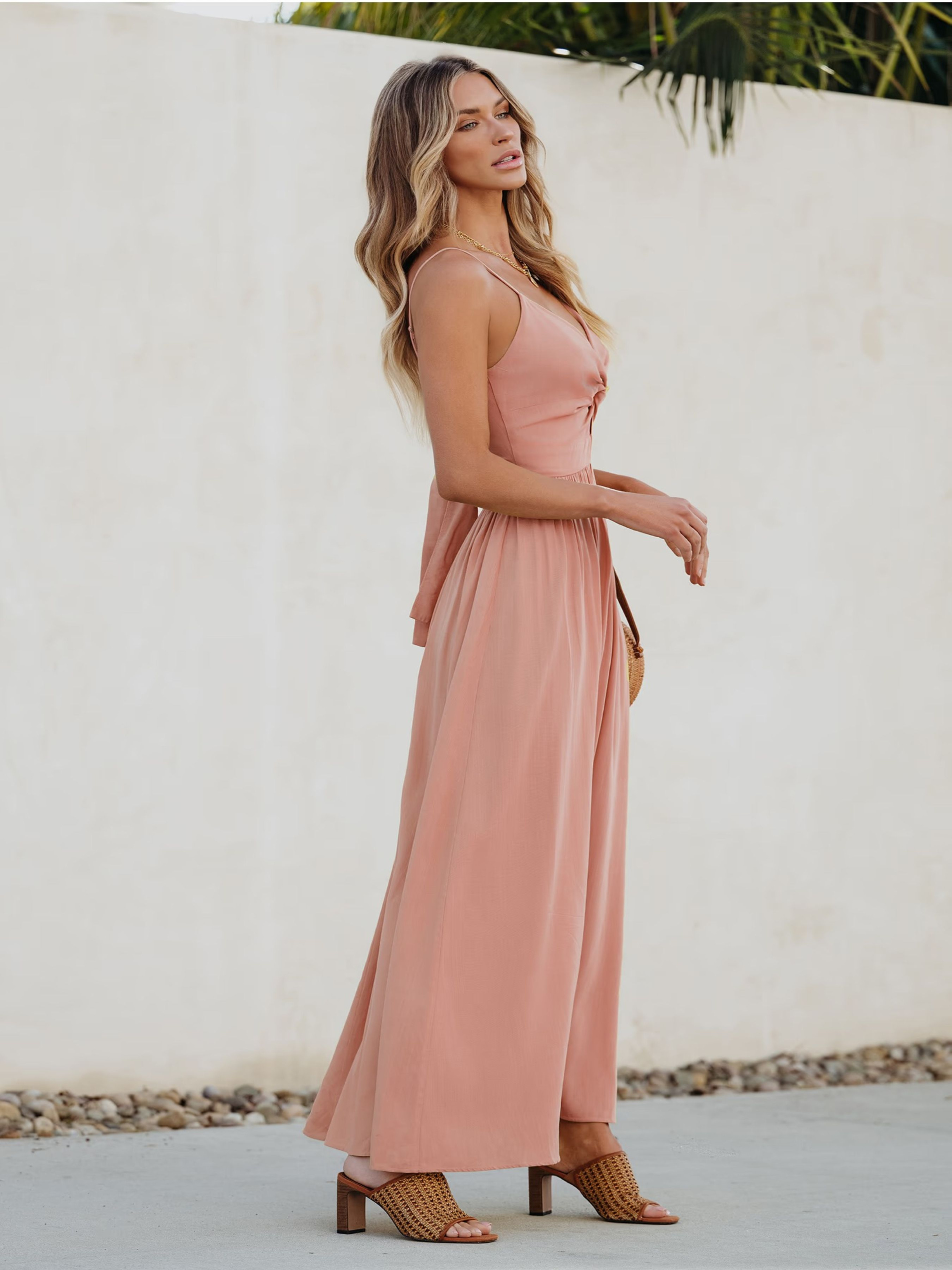 Пориньте в літню елегантність з нашим максі-платтям! Переднє перекручування та свердловина додають нотку вишуканості цьому максі-сукні. Незалежно від того, чи йдете ви на вечірку в саду або насолоджуєтеся вечерею на пляжі, ця сукня – ваш вибір. Тканина V-подібний виріз Без рукавів Передній перекручування Передній розріз Максі А-подібний силует ***Розмір - M Напівобхват пояса - 37,00 см Довжина виробу - 134,00 см Об'єм грудей - 90,00 см Напівобхват стегон - 68,00 см Склад: 100% віскоза