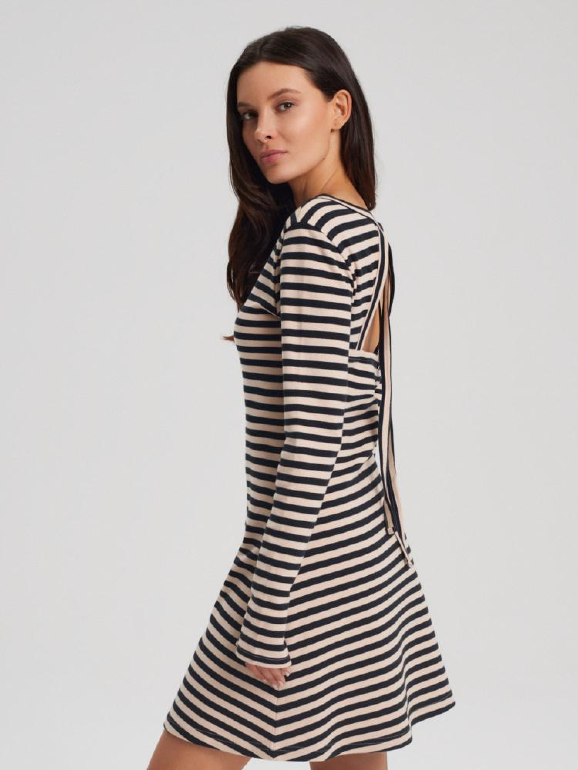 Сукня COLFINA 10044042 Бавовняна сукня з розкльошеним низом і довгими рукавами: - вільного крою, - з бавовняного трикотажу, - з декоративним вирізом на спині, - з довгими рукавами, - з розкльошеним низом, - в наявності різнокольорова. Склад: 100% бавовна. Сезон: Весна/Літо 2024 Догляд - прання при максимум 30 °c - делікатні речі - не відбілювати - не сушити в сушильній машині - прасувати максимум при темп. 110 °c - не проводити хімчистку Розмір на моделі - S Зріст моделі - 175 см