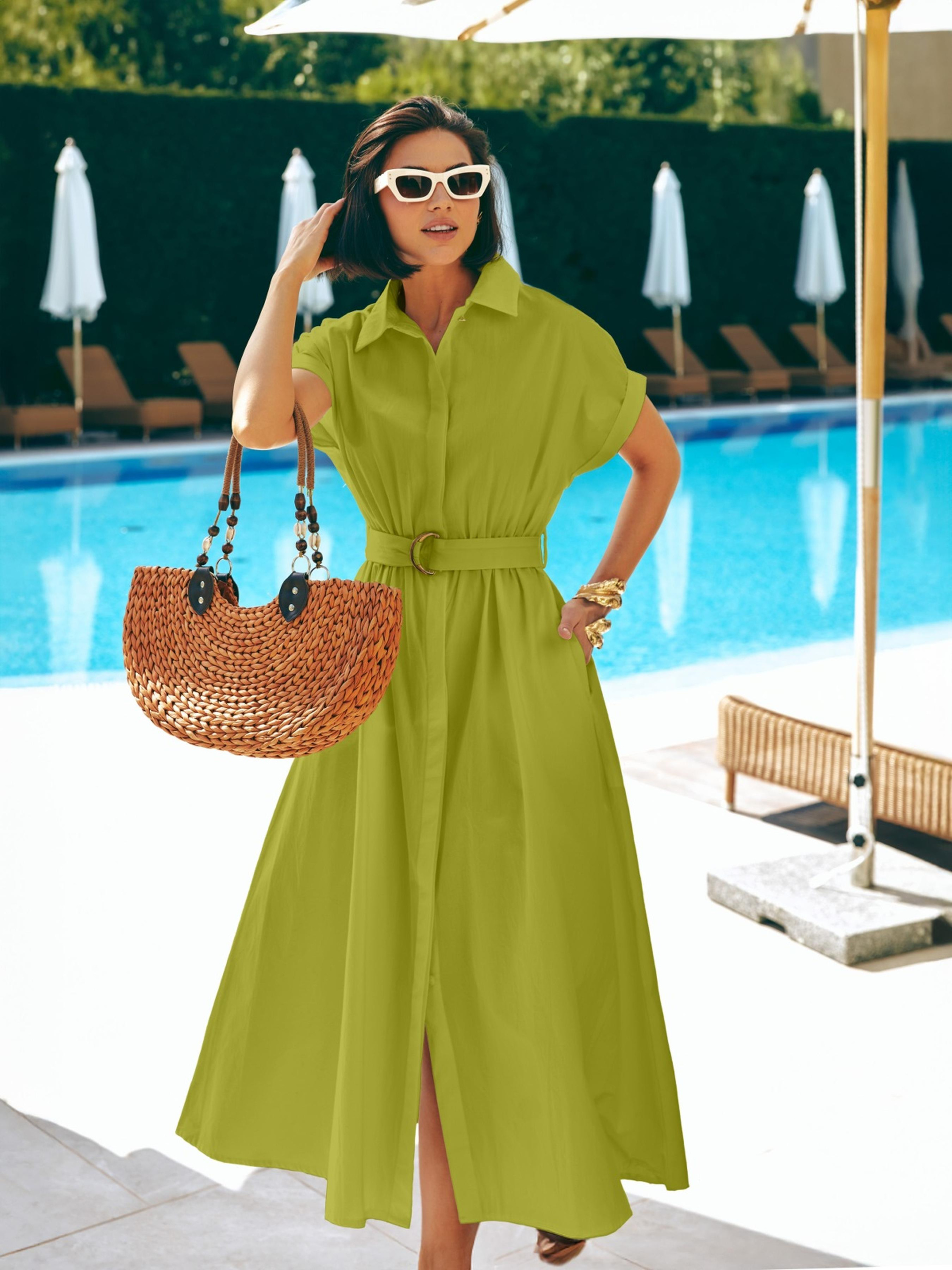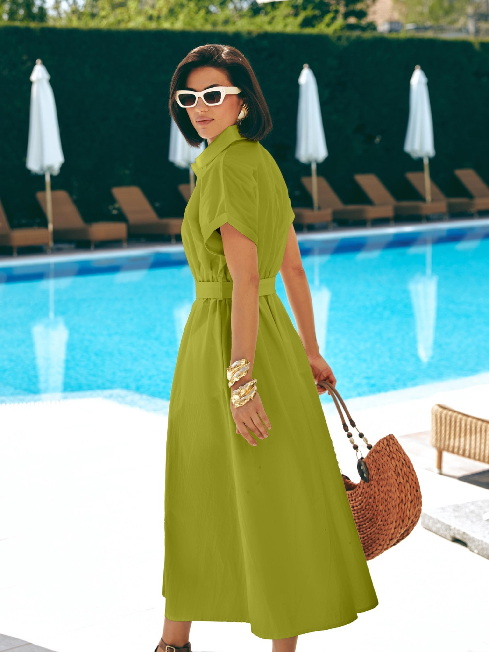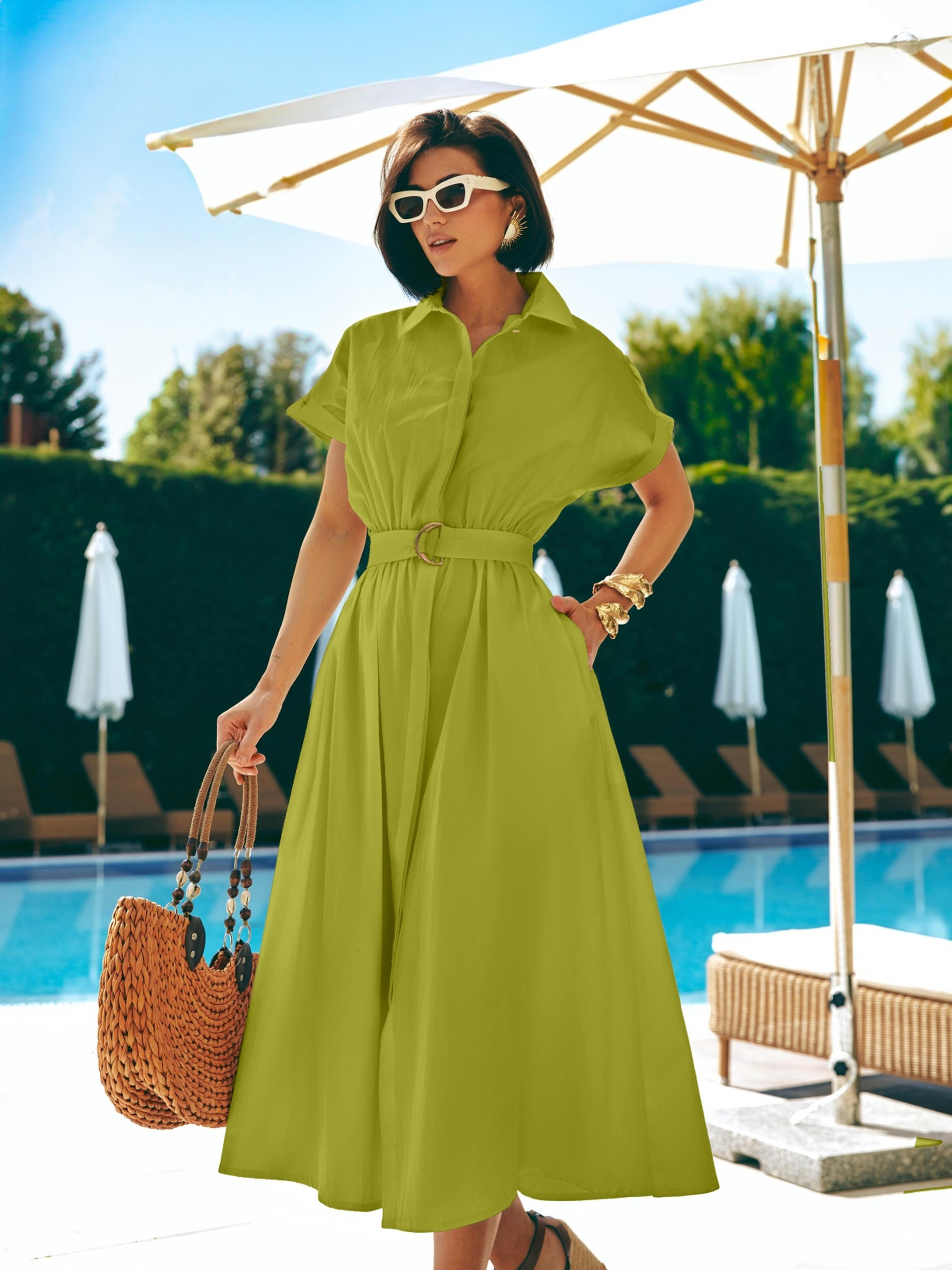 Сукня із високоякісної турецької бавовни. Модель з відкладним коміром і спущеним цільнокроєним рукавом. Талія зібрана на гумку, яка підлаштовується під фігуру без додаткової фіксації. У бокових швах — прорізні кишені. Застібка на ґудзики прихована під супатною планкою, що створює чисту вертикальну лінію.