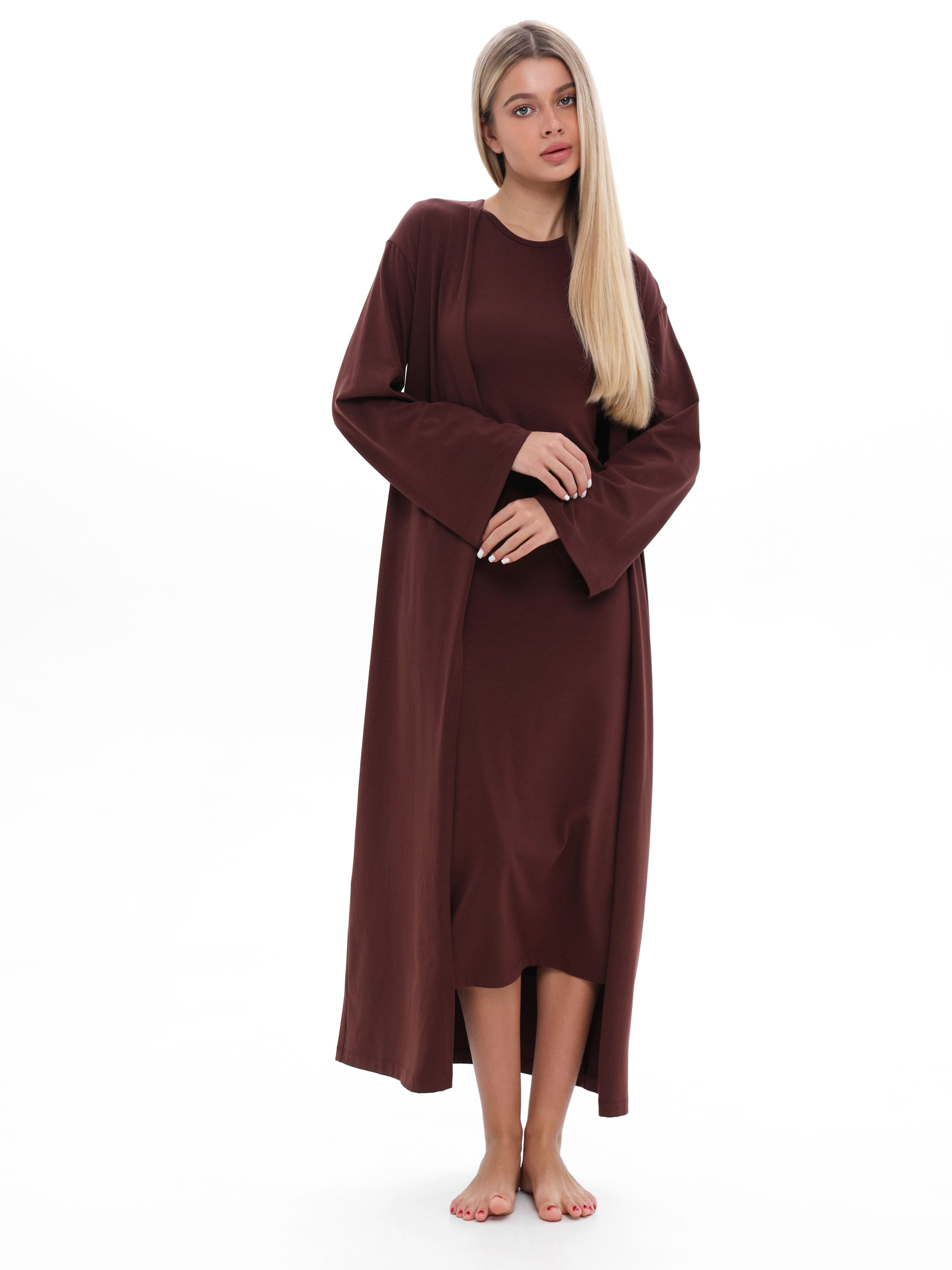 Лаконічна сукня у благородному шоколадному відтінку – це поєднання мінімалізму та комфорту. Вільний силует і приємна до тіла тканина роблять її ідеальним вибором як для повсякденного носіння, так і для більш вишуканих образів. Носіть із кардиганом для створення ефекту затишного шарування. Кожен елемент колекції «Шоколад» поєднує функціональність і стиль, створюючи гармонійні образи