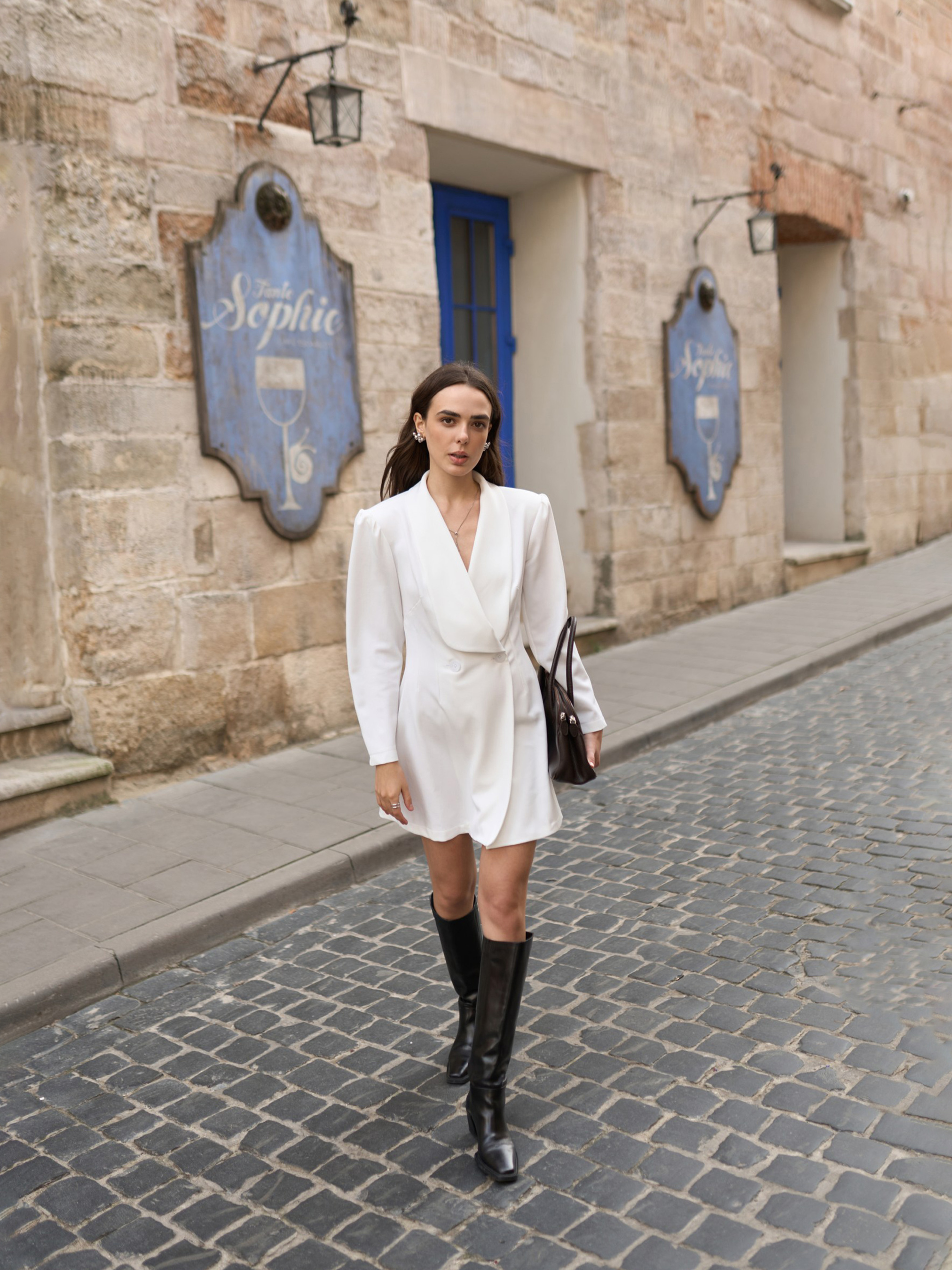 Міні-сукня у стилі блейзера з двобортною застібкою, яка ідеально підкреслює талію, надаючи вишуканого та елегантного вигляду. Виразний білий лацкан створює ідеальний баланс між класикою та сучасним стилем. Для зручності, ми зробили знімний комір, який кріпиться до сукні за допомоги кнопок. Матеріал: костюмна стрейч тканина (щільність 300 гр/м2), що гарантує комфорт і чудову посадку на фігурі. Ідеально підходить для офіційних заходів, ділових зустрічей або вечірніх виходів, підкреслюючи стиль та витонченість власниці.