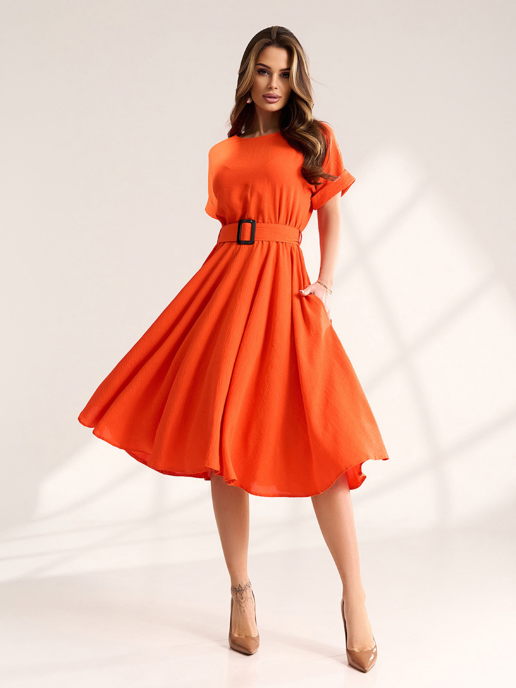 Сукня міді ISSA Plus модель 15568_оранжевый