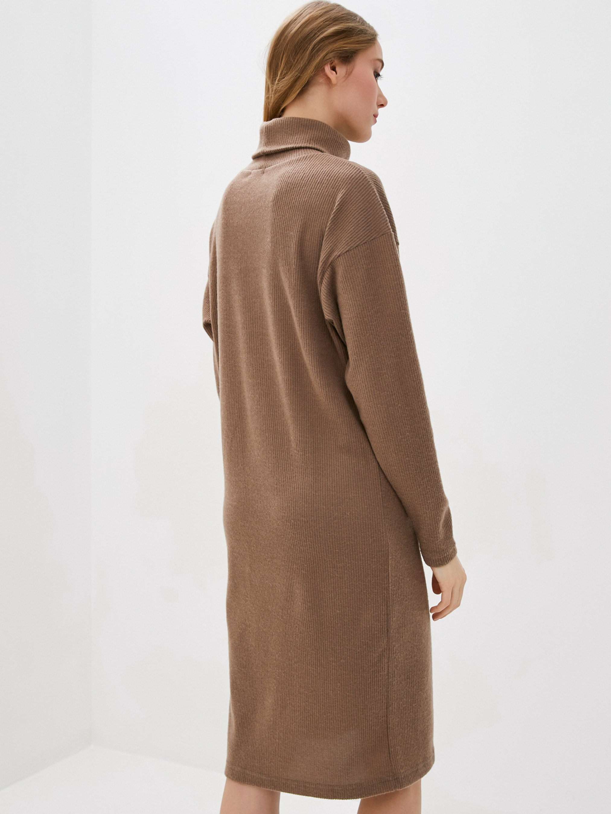 Фактурна сукня виконана з трикотажної ангори. Модель прямого вільного крою з довгими рукавами та міді завдовжки. Виріб із бічним розрізом оснащений коміром-гольфом із відворотом. Склад: 85% віскоза, 15% еластан. Напівобхват: Груди: S (52), M (54), L (56), XL (58), Талія: S (52), M (54), L (56), XL (58), Стегна: S ( 52), M (54), L (56), XL (58), Довжина виробу – 104, Рукав – 53.
