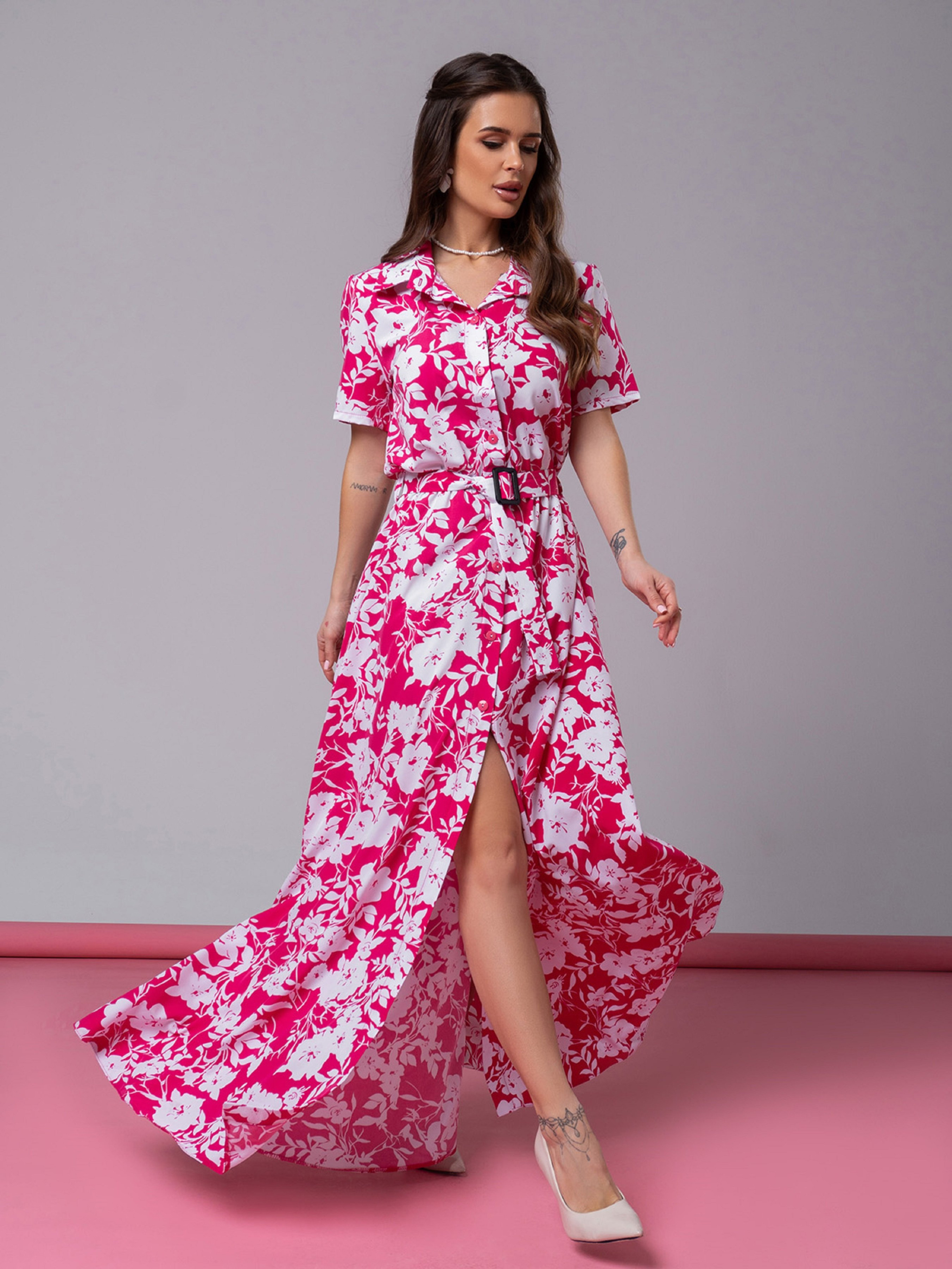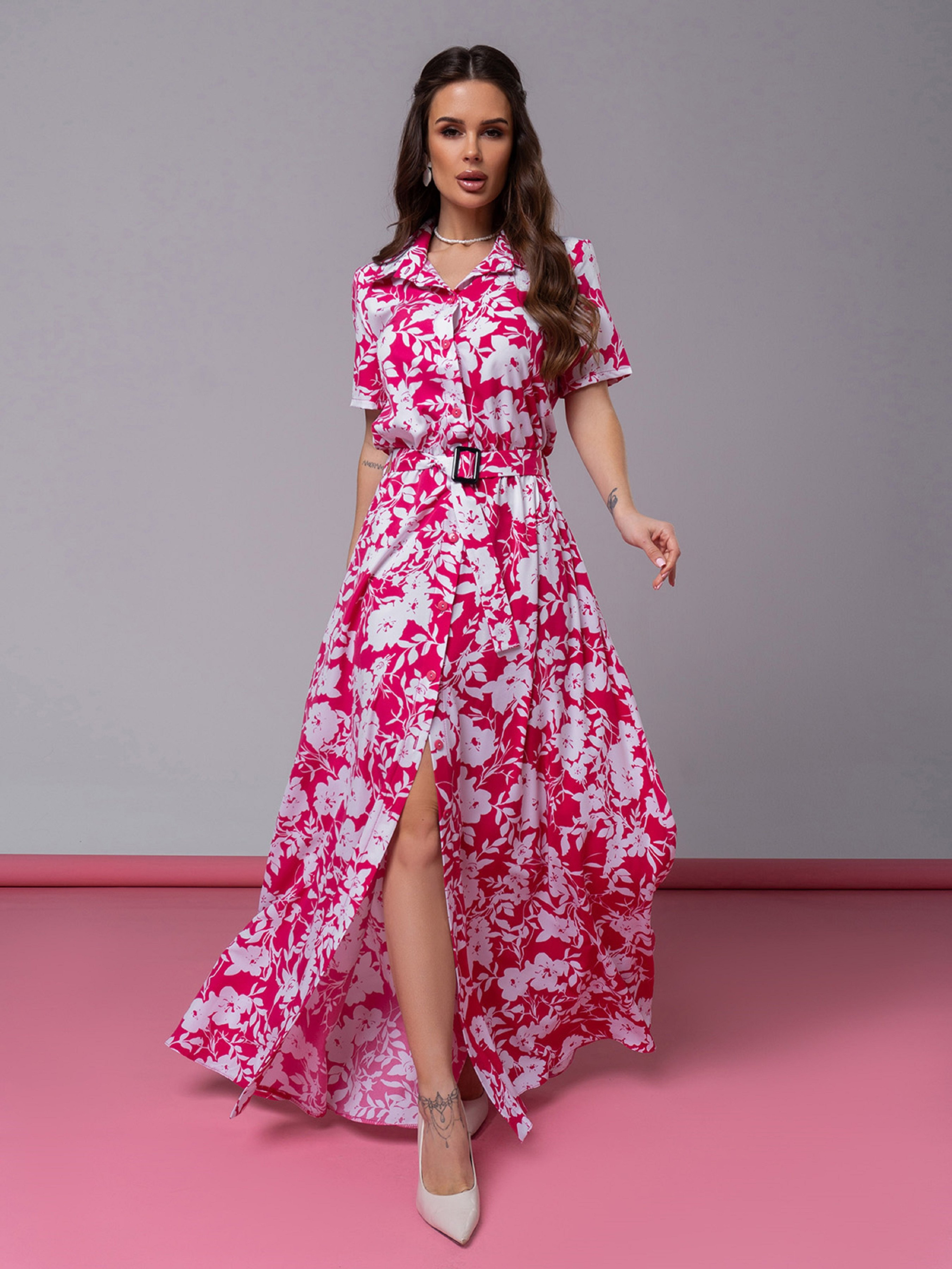 Сукня максі ISSA Plus модель 14596_белый_малиновый