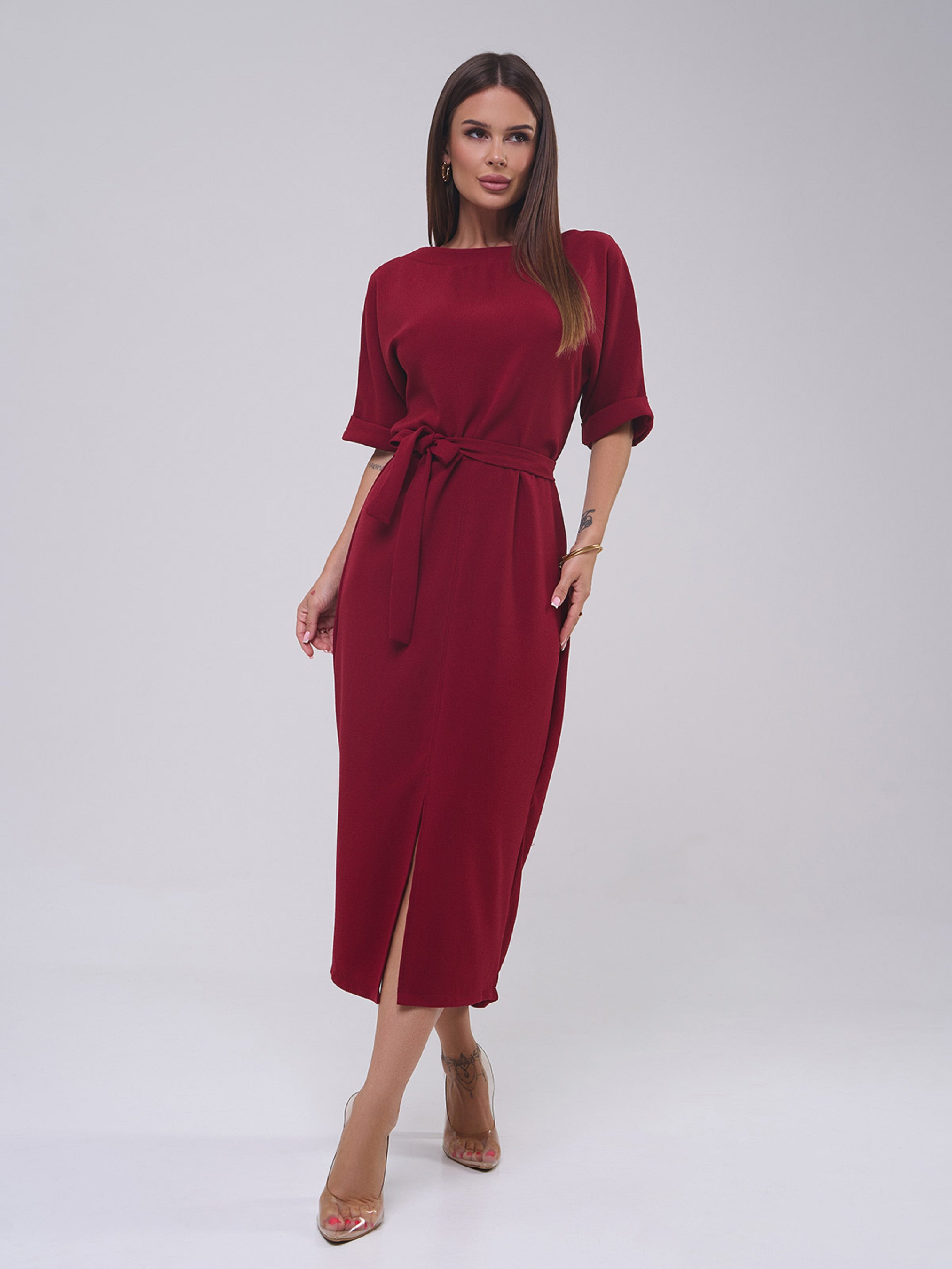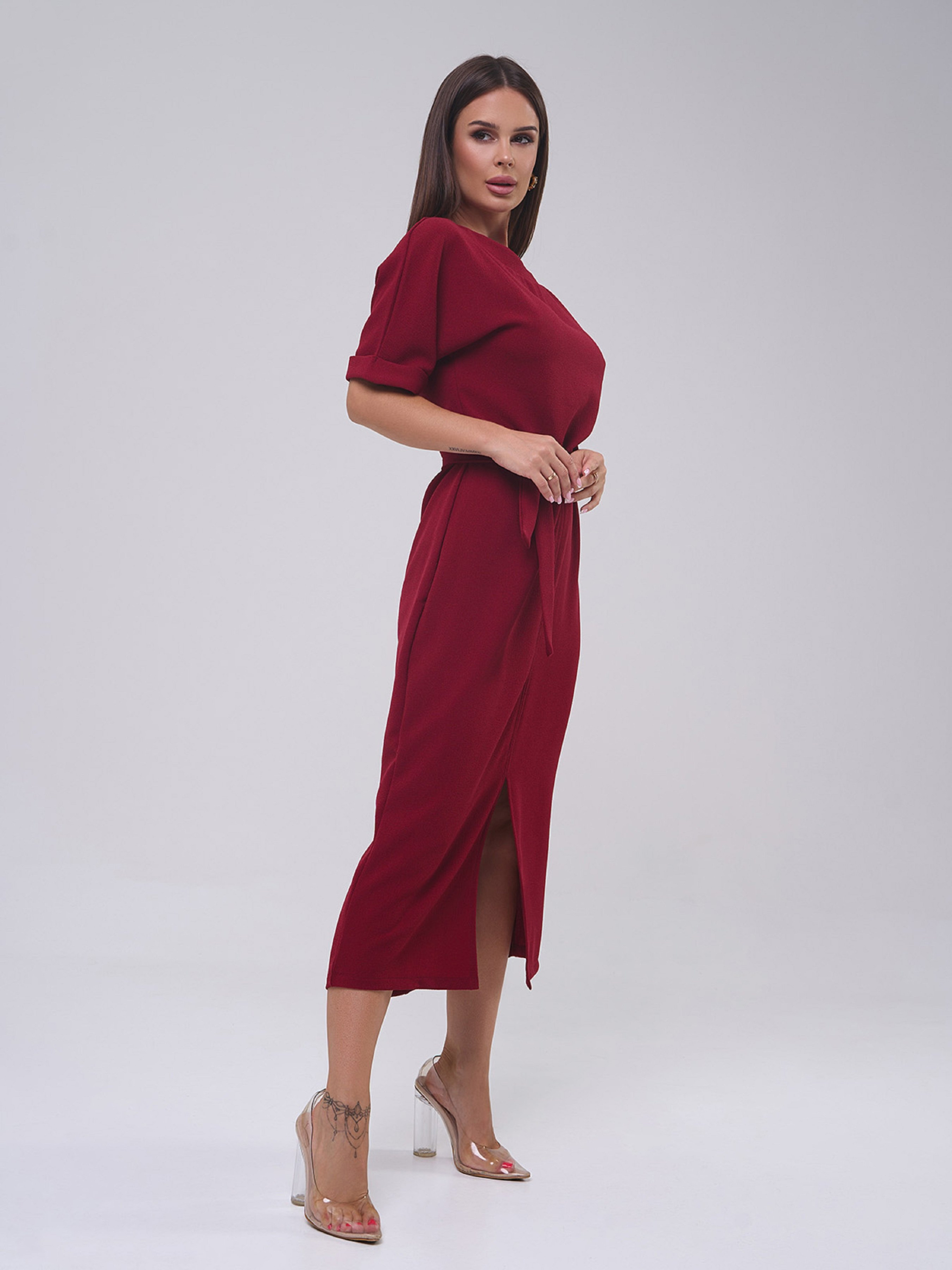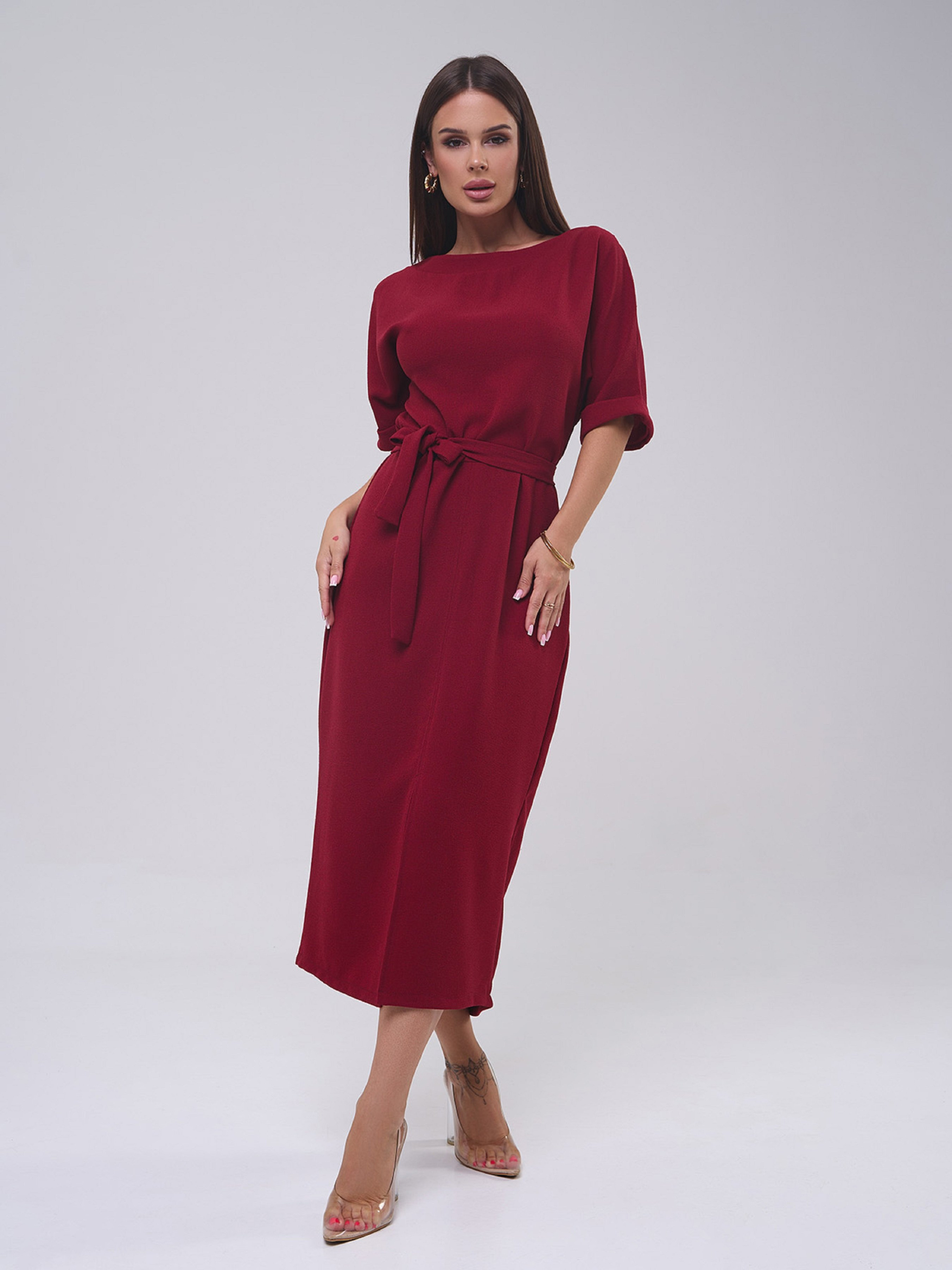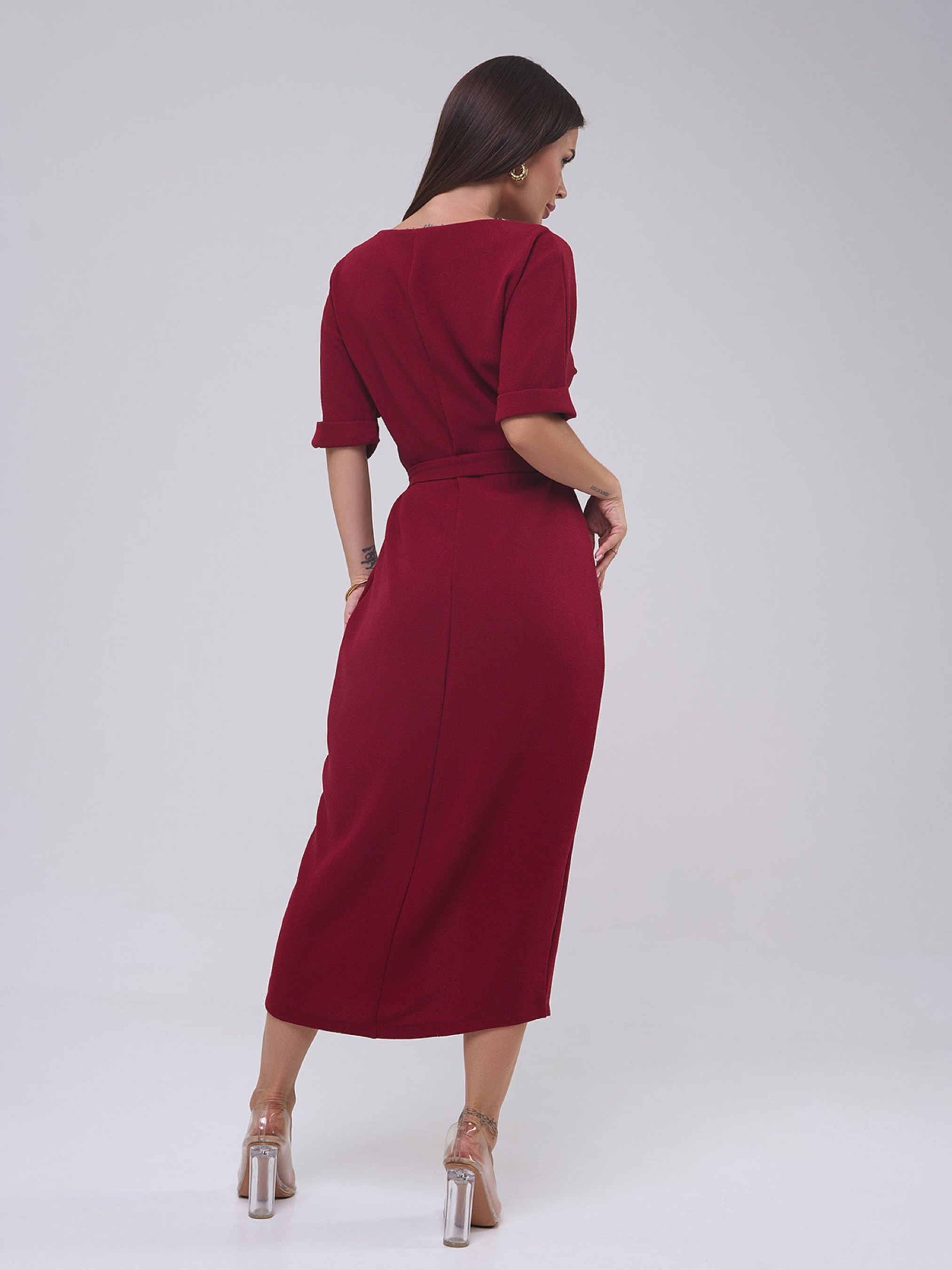 Сукня міді ISSA Plus модель 14809_бордовый