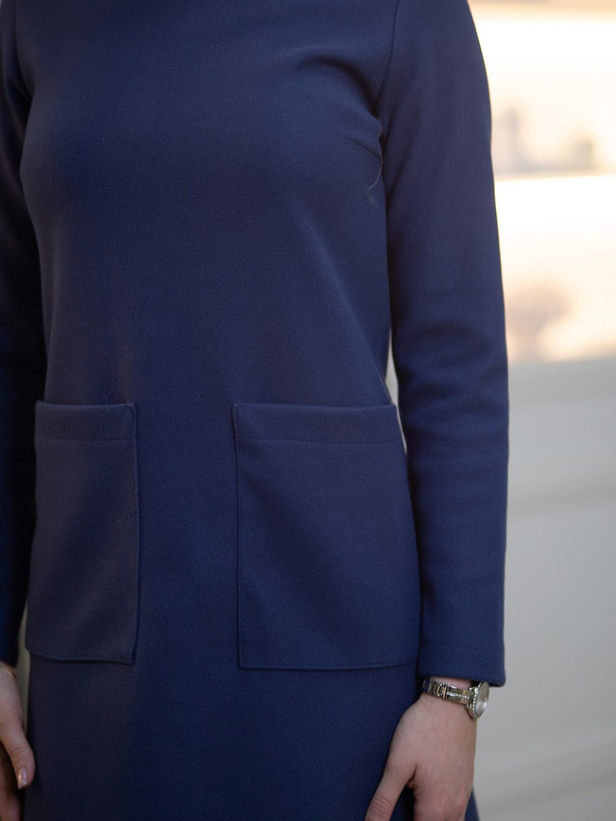 Сукня синя тепла вовняна — це чудовий варіант для осінньо-зимового сезону, що поєднує тепло, стиль і комфорт. Основні характеристики: Колір і матеріал: Синій колір додає глибини та елегантності. Вовняний матеріал відмінно утримує тепло, роблячи сукню ідеальною для холодної погоди. Дизайн: Прямий або вузький крій забезпечує різні варіанти підкреслення фігури, від класичного силуету до більш приталеного. Деталі: Кишені: Практичні кишені додають зручності та функціональності, зберігаючи стиль. Застібка: Черех голову або на молнії — зручна застібка дозволяє швидко одягти сукню, при цьому додаючи вишуканості в образ. Рукав: Довгий рукав, що додатково зігріває в холодну погоду, робить сукню ідеальною для осені та зими. Стилізація: Повсякденний стиль (casual): Легко поєднується з черевиками або чоботами для комфортного і стильного образу на кожен день. Офісний стиль: Ідеально підходить для офісу, якщо поєднувати з елегантними туфлями або чоботами на підборах. Нарядний стиль: Додайте стильні аксесуари і ви отримаєте елегантний образ для вечірнього виходу. Сукня синя тепла вовняна — це чудова сукня для осінньо-зимового сезону, яка поєднує стиль, практичність та комфорт.