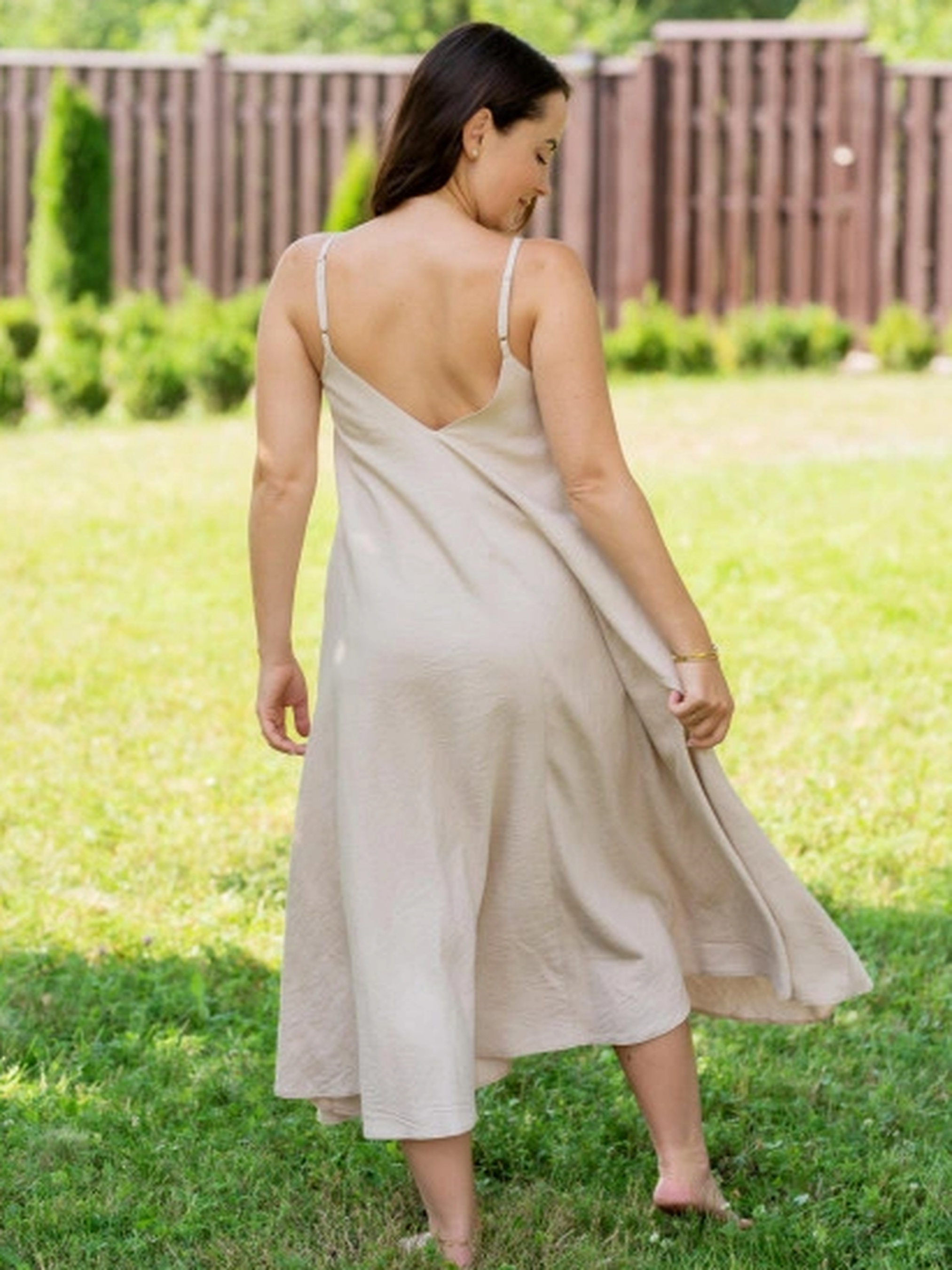Літній сарафан з натурального льону - це відмінний варіант для літньої вбиральні бази. Натуральний льон - легкий та дихаючий матеріал, який дозволяє шкірі дихати та захищає від перегріву у спеку. Тонкі бретелі надають сарафану жіночності та легкості. Такий сарафан можна носити на прогулянці, пляжі, на вечірці або на повсякденній прогулянці.