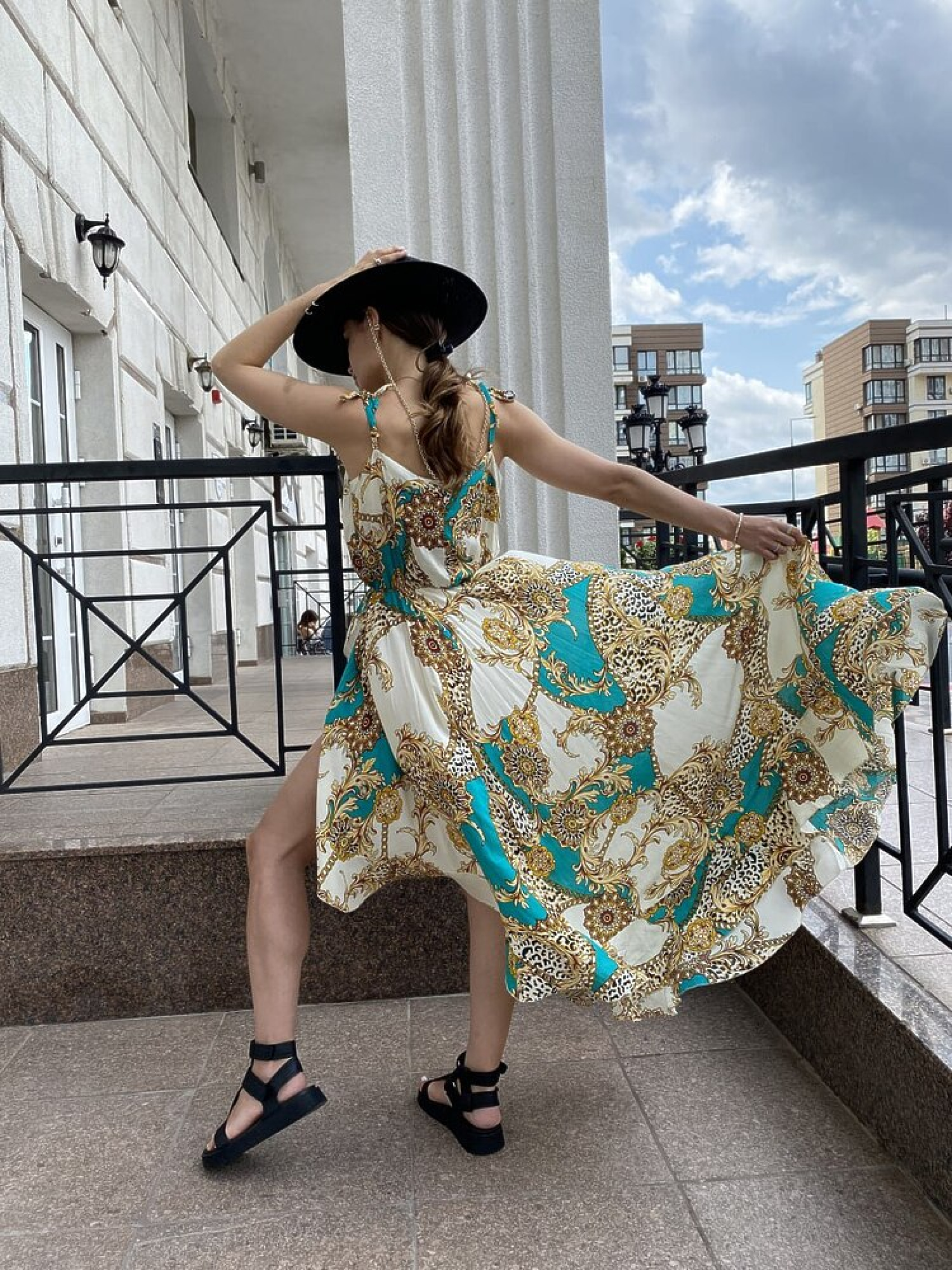 Літній сарафан EMILY — легкий та жіночний варіант для спекотних днів, який поєднує комфорт та стиль. Асиметричний крій і рюші додають образу грайливості та елегантності. Опис Сарафан має маєчний верх та бретелі на зав’язках, які регулюються під зріст. Талія на гумці, а тканинний пояс у комплекті дозволяє підкреслити фігуру. Спідниця асиметричного крою з рюшами створює легкий та динамічний силует. Характеристики Тканина: легка літня тканина (софт) Розмір: one size (42-46) Кольори: доступні варіанти уточнювати за наявністю (S/L) Переваги моделі асиметричний крій додає динаміки образу рюші по спідниці створюють романтичний ефект регульовані бретелі та пояс дозволяють ідеально підкреслити талію легкий та повітряний матеріал забезпечує комфорт у спеку Як носити Поєднуй з сандалями або еспадрільями для літніх прогулянок. Для вечірніх образів підійдуть легкі босоніжки на каблуку та стильні аксесуари.