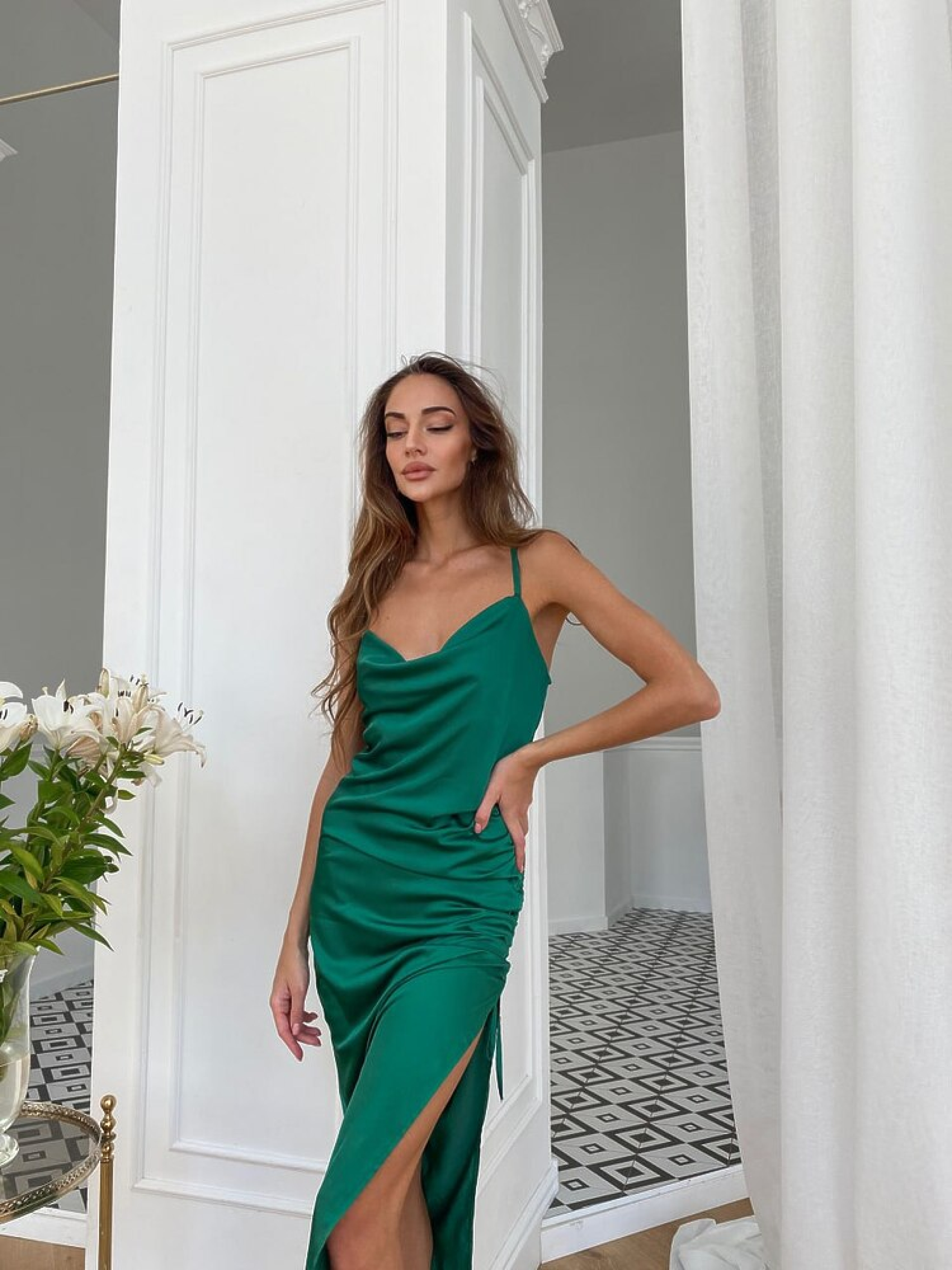 Брендова сукня PARADISE в стилі slip dress виготовлена з м’якого та приємного до тіла шовку. Відкрита спинка та регульовані бретелі додають жіночності, а зав’язка збоку дозволяє регулювати висоту розрізу, створюючи ефектний і витончений образ. Основні характеристики Тип: сукня slip dress Бретелі: регульовані Деталі: відкрита спинка, бічна зав’язка для регулювання розрізу Матеріал: шовк — легкий, ніжний та комфортний Розмір: M, L Кольори: білий, зелений (трава) Сезон: літо Як носити Сукня PARADISE ідеально поєднується з елегантними босоніжками або тонкими сандалями. Додайте мінімалістичні аксесуари та маленьку сумку для завершеного святкового або вечірнього образу.