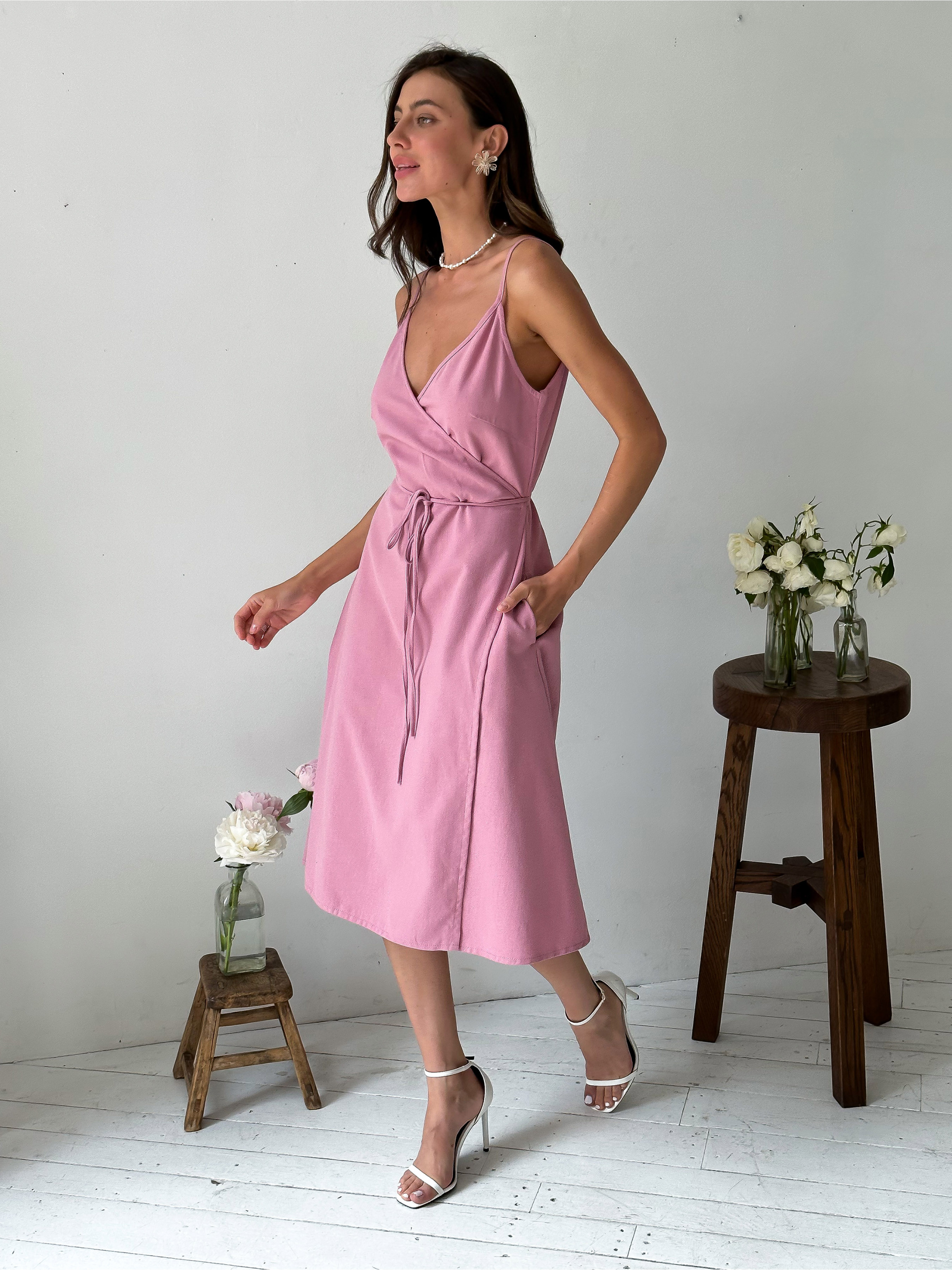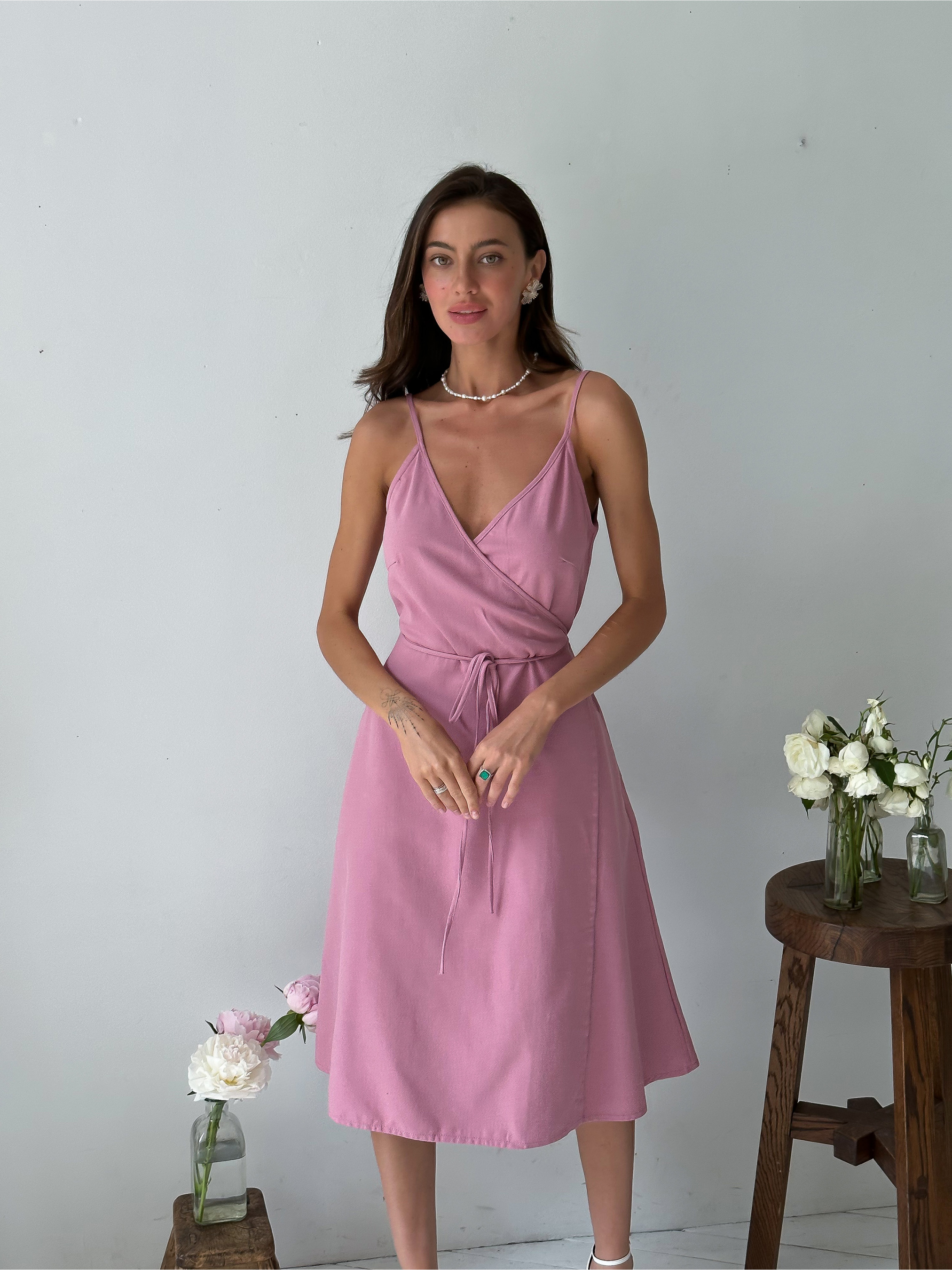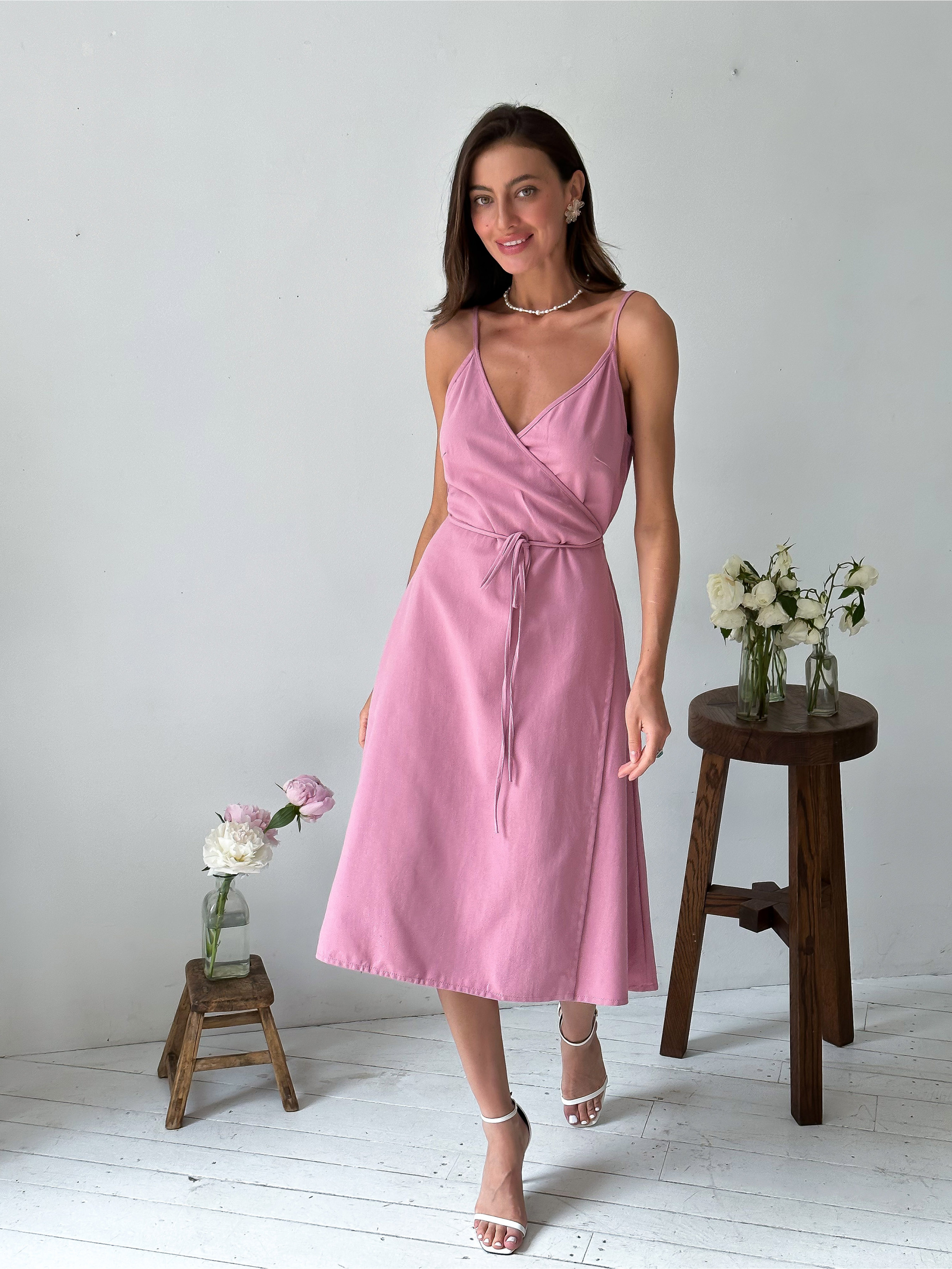 Жіноче літнє плаття з натуральної тканини на запах. Тканина дихаюча, гіпоалергенна, не електризується. Склад тканини: 88% бавовна, 12% льон. Виробник: Украiна. Даний фасон літнього плаття зручний і не обмежує рухів, добре виглядає на будь-якій фігурі.