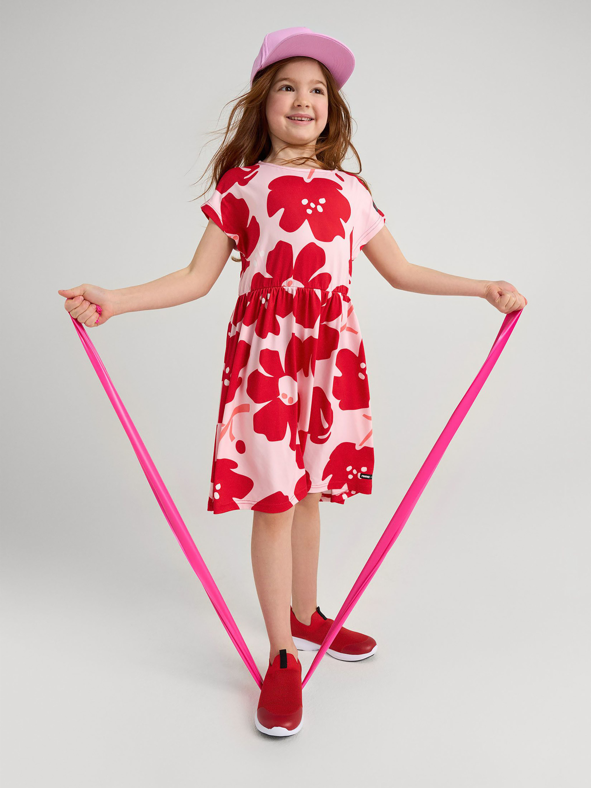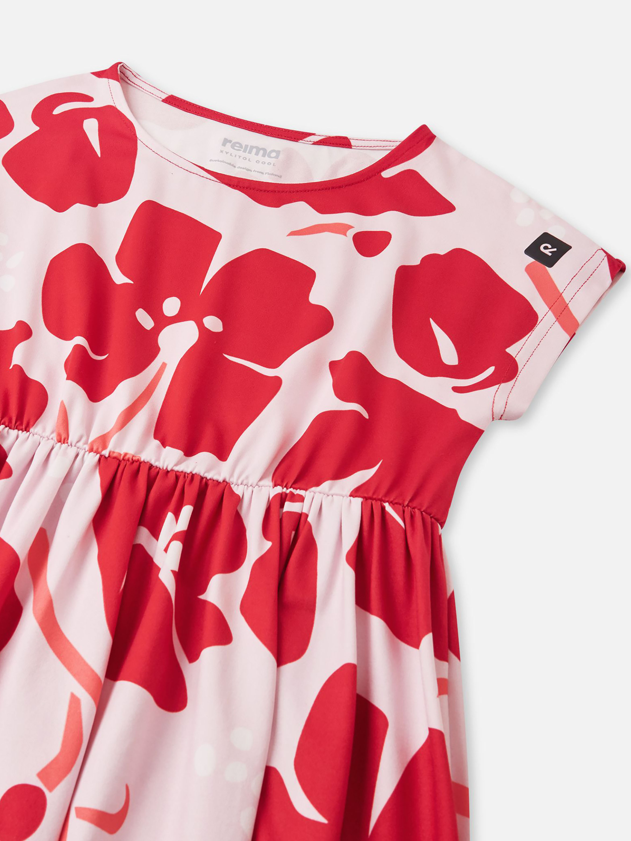 Склад: 91% поліестер, 9% еластан Матеріал: Xylitol Cool rec УФ захист 40+ Еластичний матеріал Технологія прохолоди Xylitol Cool Перероблений матеріал Зручний матеріал, що тягнеться в усі сторони|Просочення Reima Xylitol Cool на основі ксилітолу забезпечує охолоджуючий ефект під час фізичної активності|Містить перероблені волокна із сертифікатом якості|Довжина до коліна|Фактор захисту від ультрафіолету 40+ забезпечує більше часу для гри на сонці|Еластичний пояс|Принт по всій поверхні Догляд: Прати з білизною однакового кольору, вивернувши навиворіт. Прати миючим засобом, що не містить відбілюючих речовин. Полоскати без спеціального засобу. Сушити при низькій температурі. У цій зручній сукні довжиною до коліна активним дітям буде прохолодно під час ігор на вулиці. Еластичний матеріал, що тягнеться, забезпечує захист від ультрафіолету, а спеціальне просочення Xylitol Cool від Reima на основі ксиліту та еритриту (харчових підсолоджувачів) має відчутний охолоджуючий ефект. Еластичний пояс надає моделі стиль та комфорт у русі. Щоб забезпечити додатковий захист від ультрафіолету, нанесіть сонцезахисний лосьйон на відкриті ділянки шкіри та переконайтеся, що діти надягають легку кепку або панаму та сонцезахисні окуляри, коли грають на сонці.