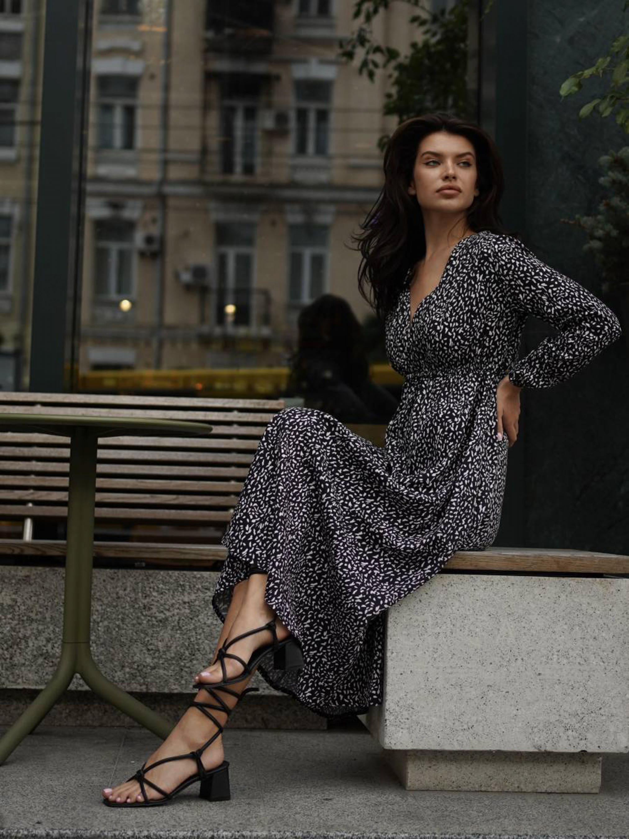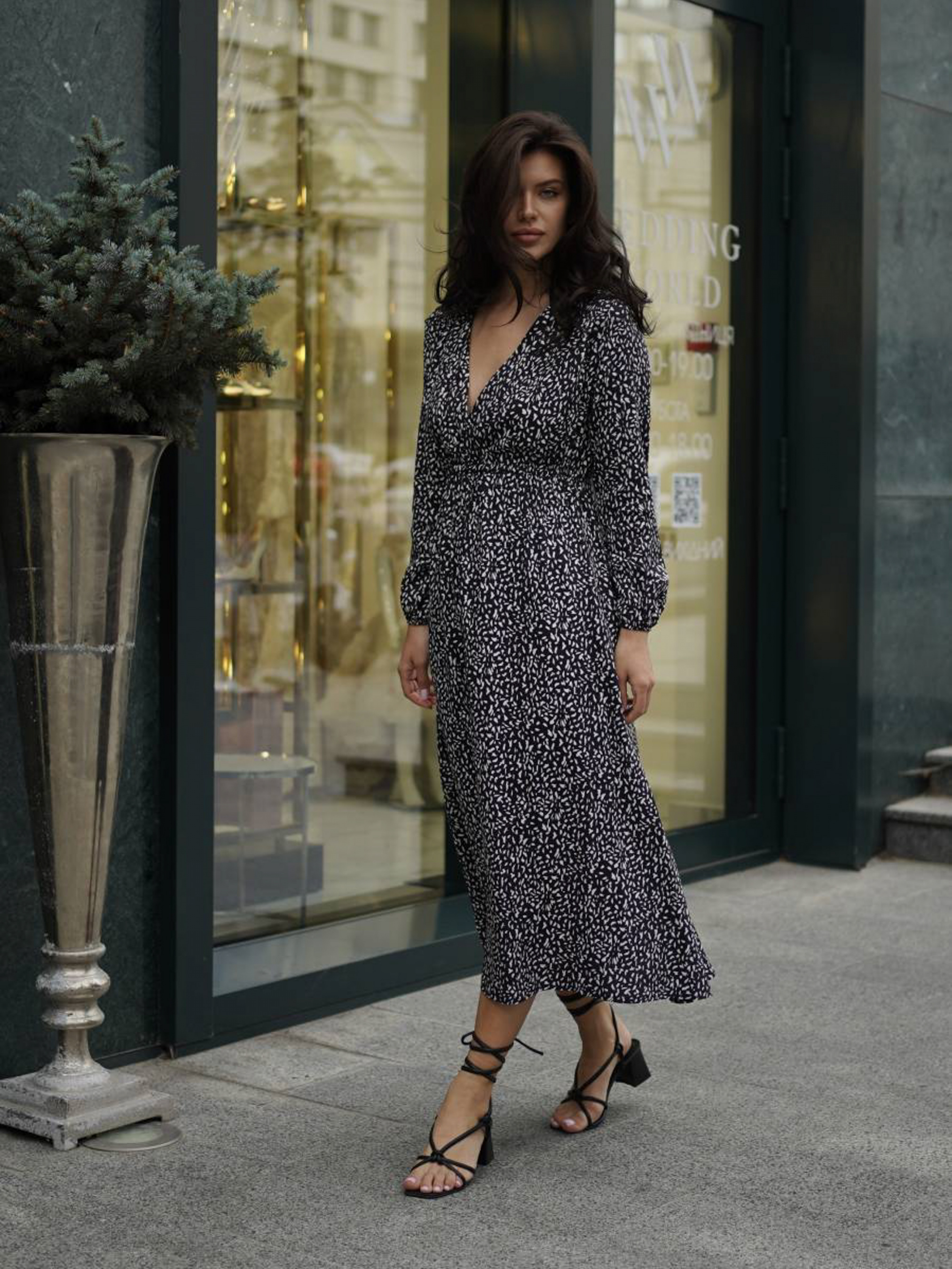 Повсякденна сукня для незабутніх прогулянок. У моделі завищена талія, V-образний виріз. Рукава фіксуються на зап'ястках резинками. Комбінувати можна з різним взуттям та сумкам. Радимо віддати перевагу босоніжкам. XS-S : Довжина по спині : 118 см Довжина рукава : 57 см Напівобхват грудей : 40 + см Плечі : 36 см Напівобхват талії : 31 см S-M : Довжина по спині : 120 см Довжина рукава : 59 см Напівобхват грудей : 44-50 см Плечі : 38-39 см Напівобхват талії : 34+ см M-L : Довжина по спині : 120 см Довжина рукава : 59 см Напівобхват грудей : 50-56 см Плечі : 39 см Напівобхват талії : 36+ см