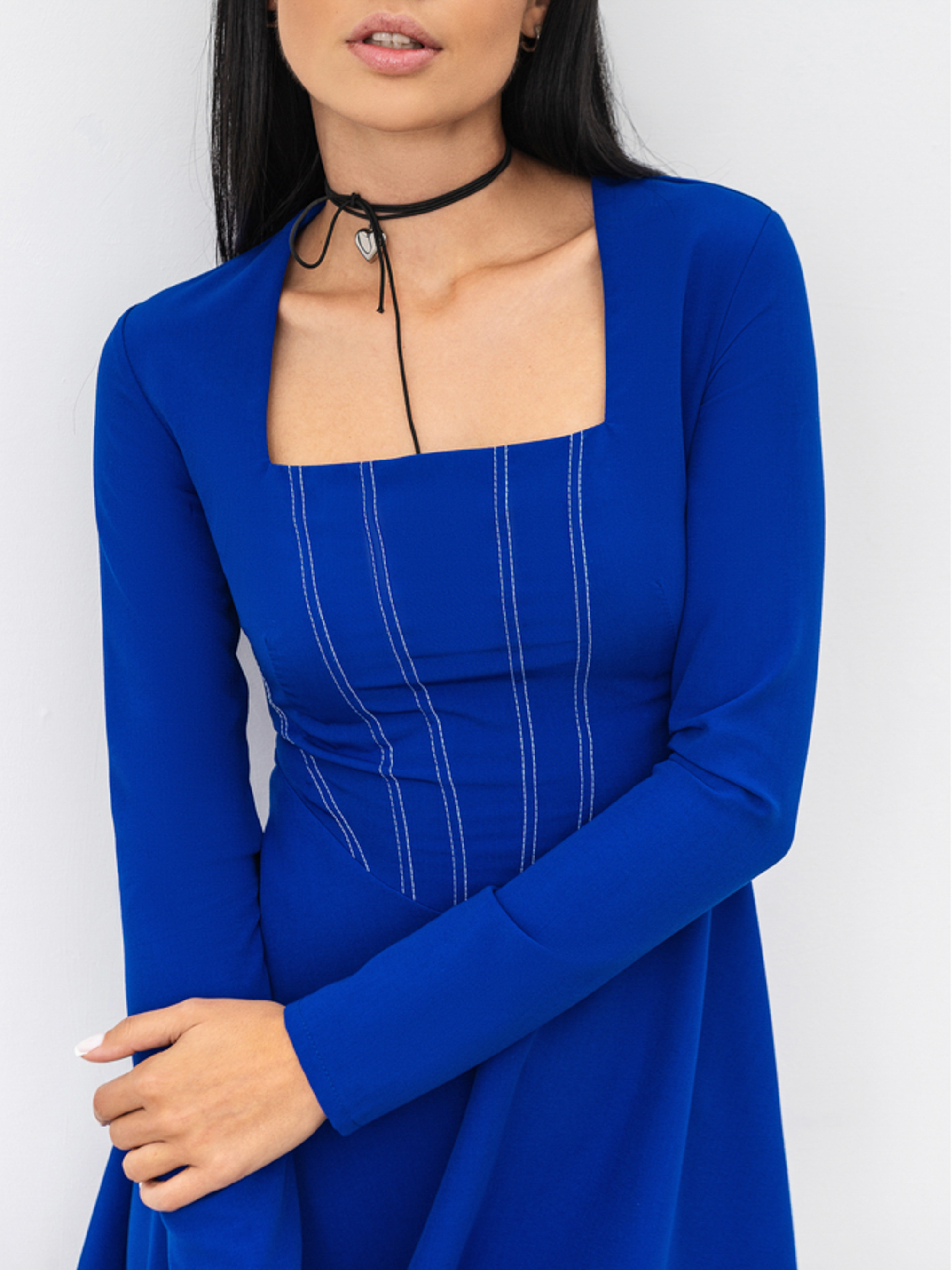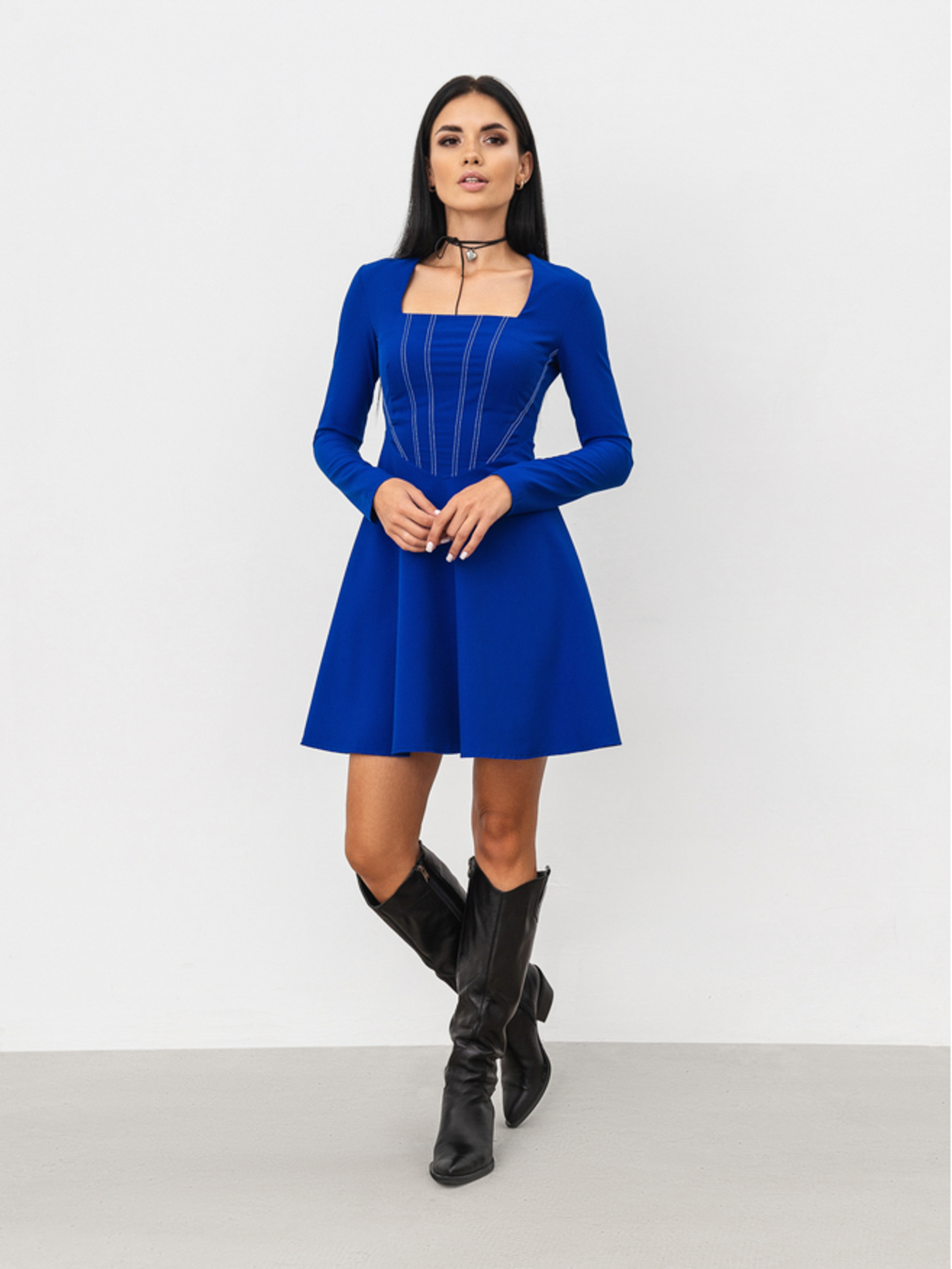Сукня довжини міні з імітацією корсету. Низ виконаний у фасоні "сонечко". Застібається ззаду на приховану блискавку. Імітація корсета з білими вставками з ниток чудово підкреслить талію та зробить її головним акцентом. Доповнити образ можна за допомогою срібних аксесуарів на шию та сумки з ланцюжком. XS-S : Довжина по спині : 83 см Довжина рукава : 57,5 см Напівобхват грудей : 39,5 см Плечі : 36,5 см Напівобхват талії : 31,5 см S-M : Довжина по спині : 83 см Довжина рукава : 57,5 см Напівобхват грудей : 41 см Плечі : 37 см Напівобхват талії : 34 см M-L : Довжина по спині : 83 см Довжина рукава : 59 см Напівобхват грудей : 44 см Плечі : 38 см Напівобхват талії : 36 см