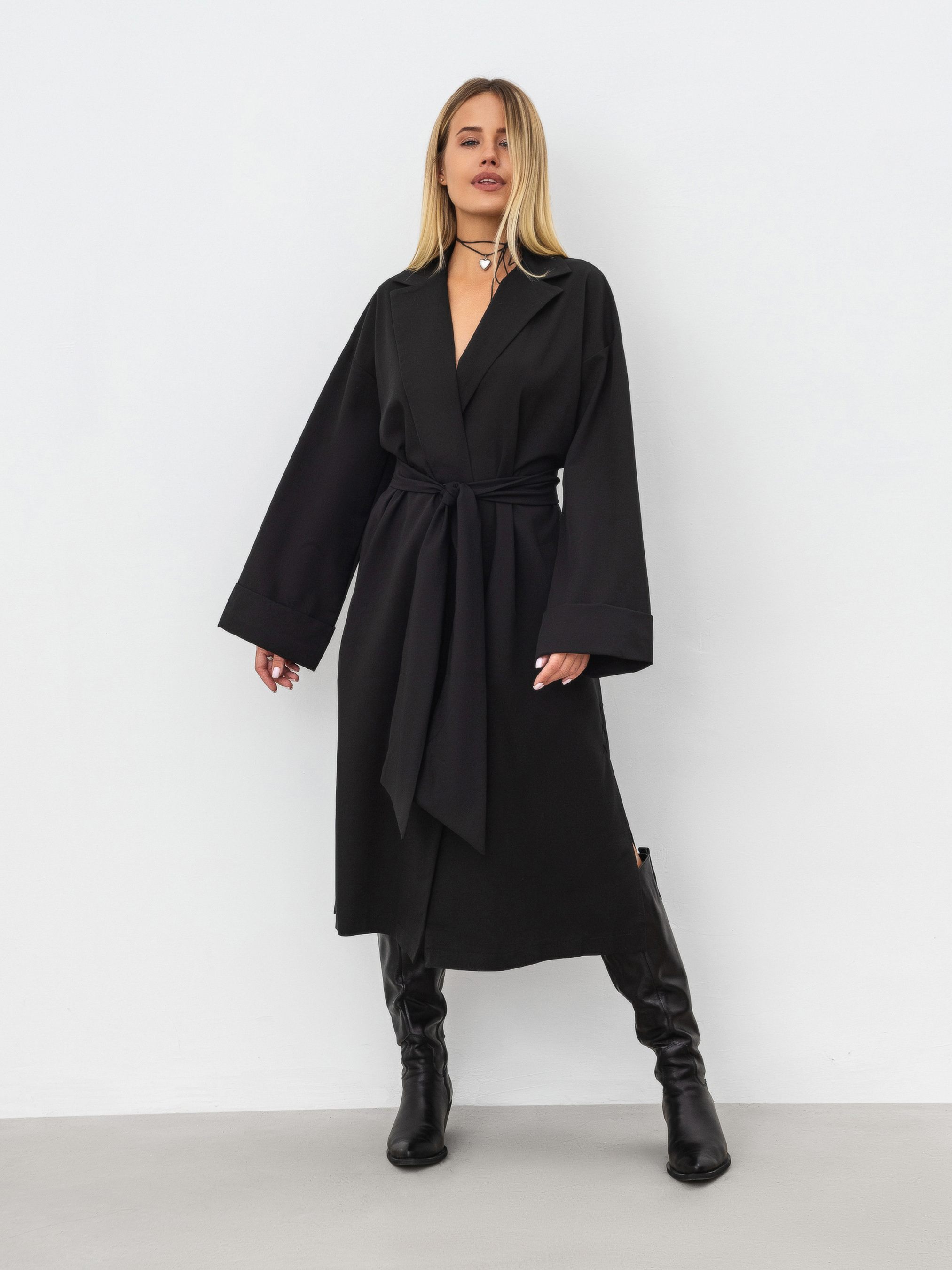 Сукня довжини міді на запах. Зручно регулювати посадку на талії поясом, тому підійде під різні типи фігур. Є кишеньки. З боків невеликі розрізи. Жіночий та легкий варіант, який особливо розкішно виглядатиме з прикрасами. Доповнити можна невеликою сумкою з ланцюжком, яка витончено доповнить образ. XS-S Довжина по спині : 114 см Довжина рукава : 46 см Напівобхват грудей : 53,5 см Плечі : 53 см S-M Довжина по спині : 114 см Довжина рукава : 50 см Напівобхват грудей : 53,5 см Плечі : 55 см M-L Довжина по спині : 114 см Довжина рукава : 49 см Напівобхват грудей : 57,5 см Плечі : 57,5 см
